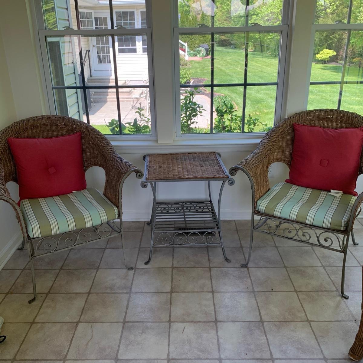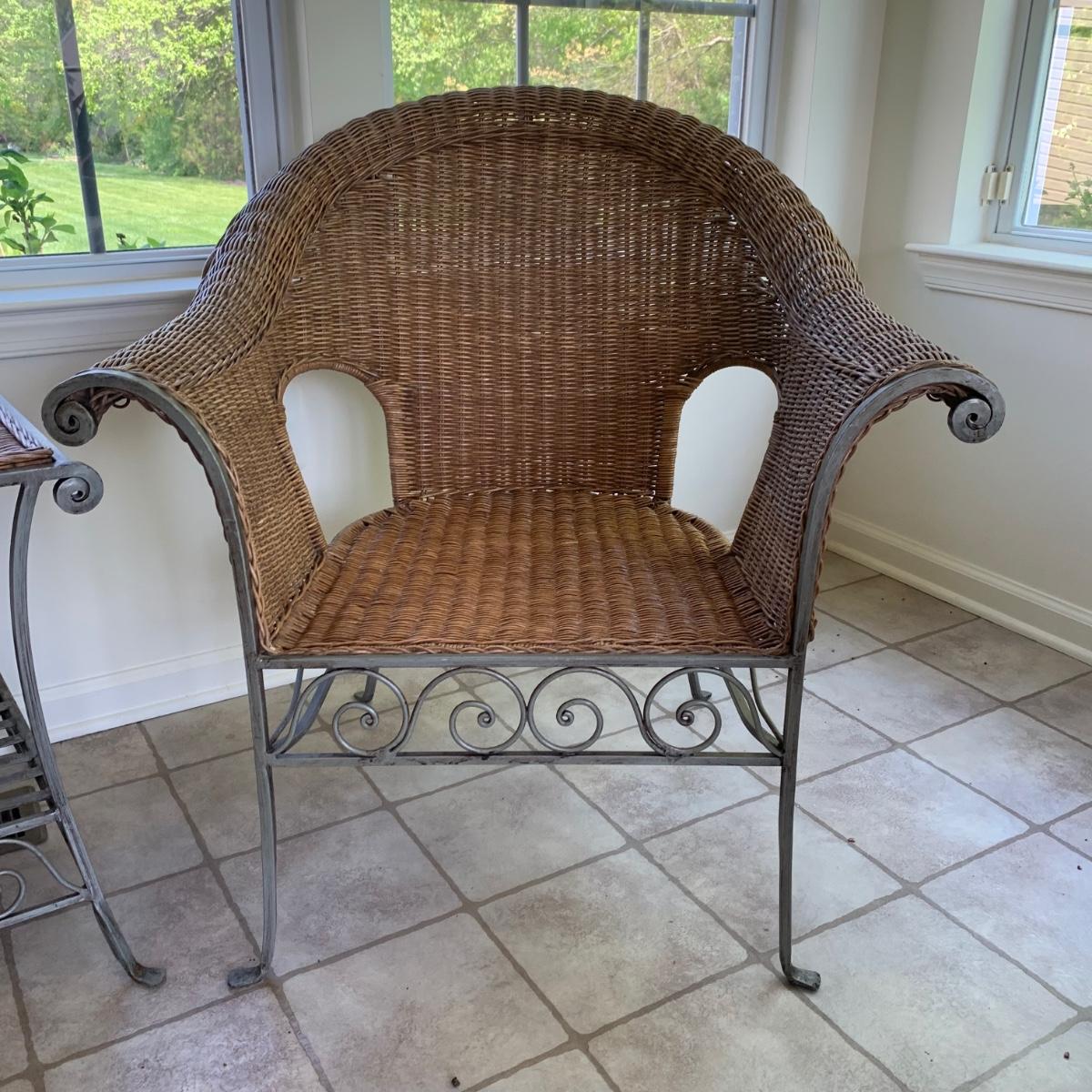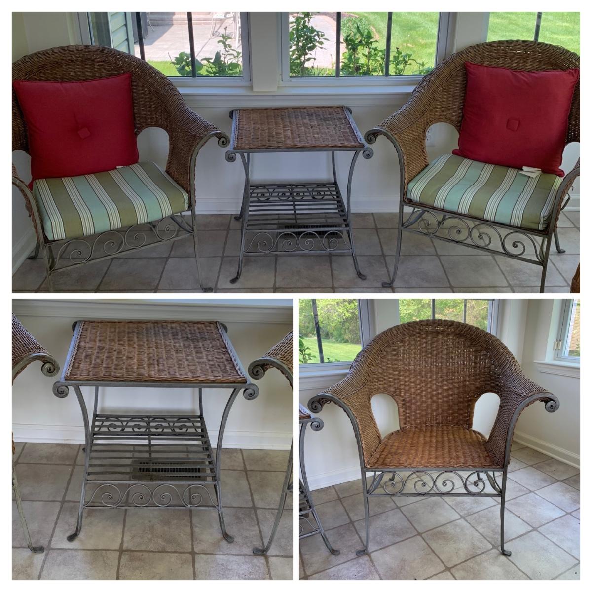 LOT 167: Wicker & Metal Chairs & End Table Set