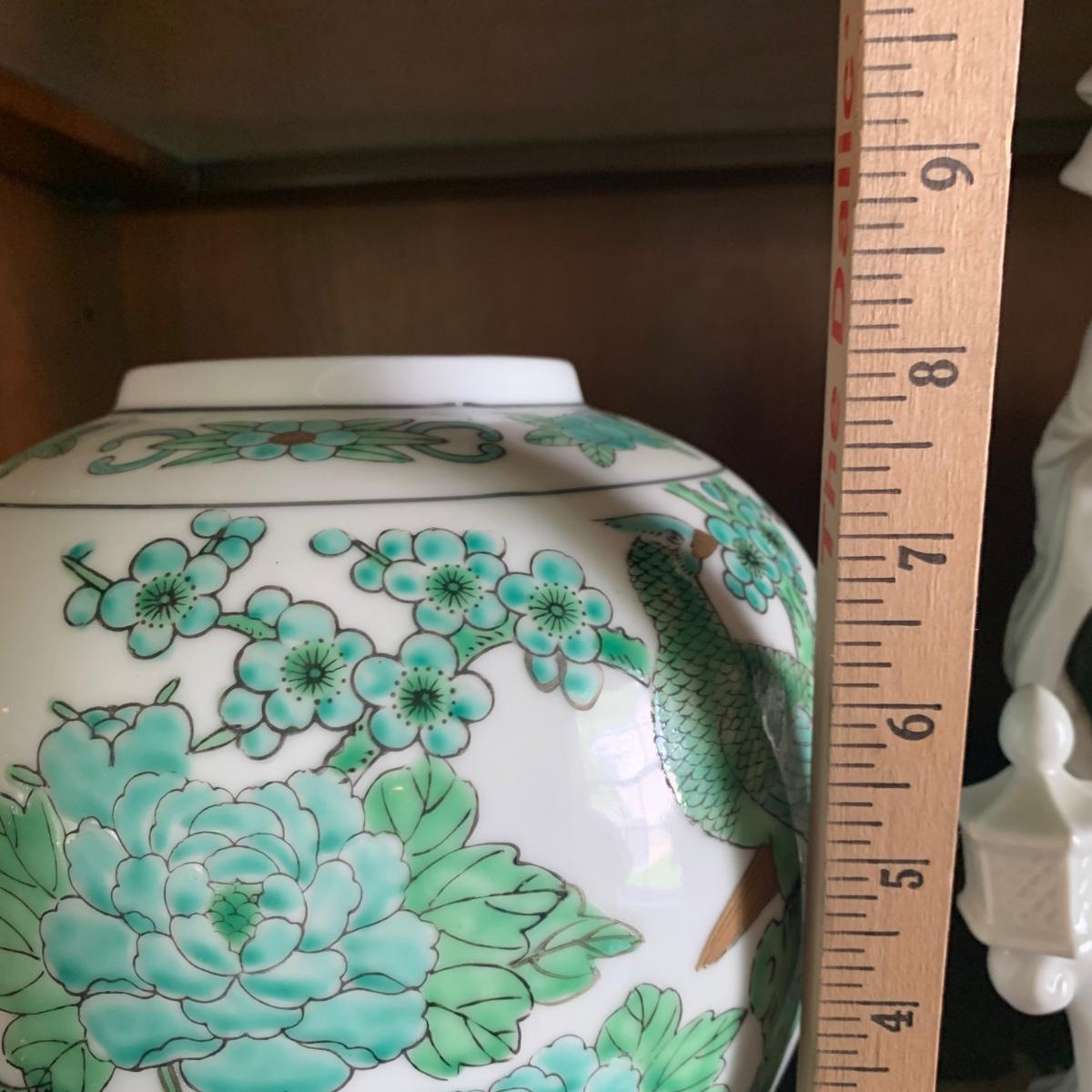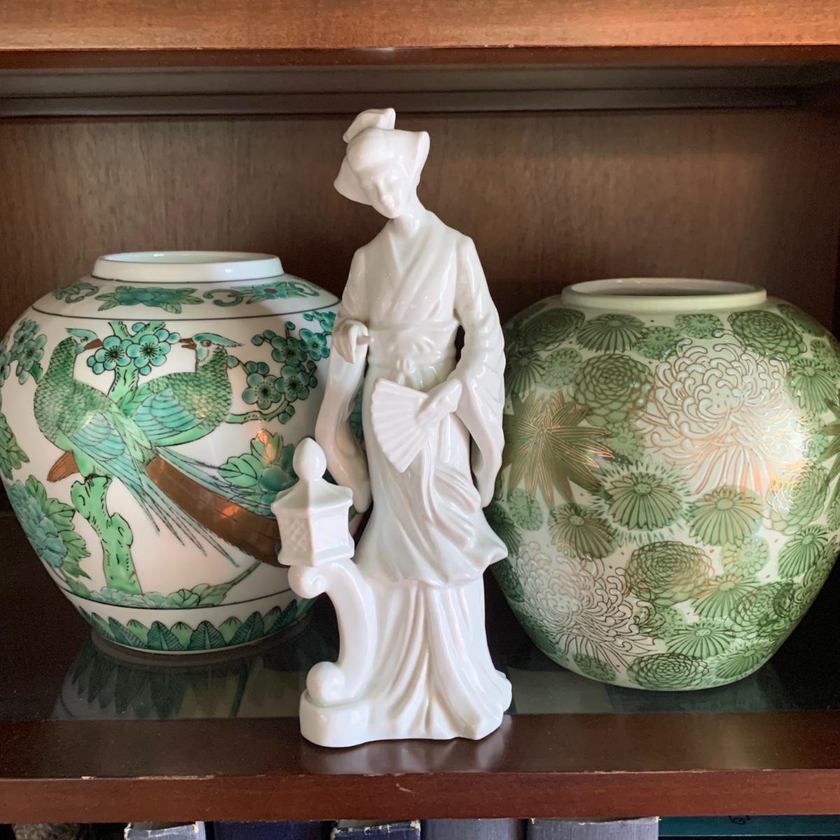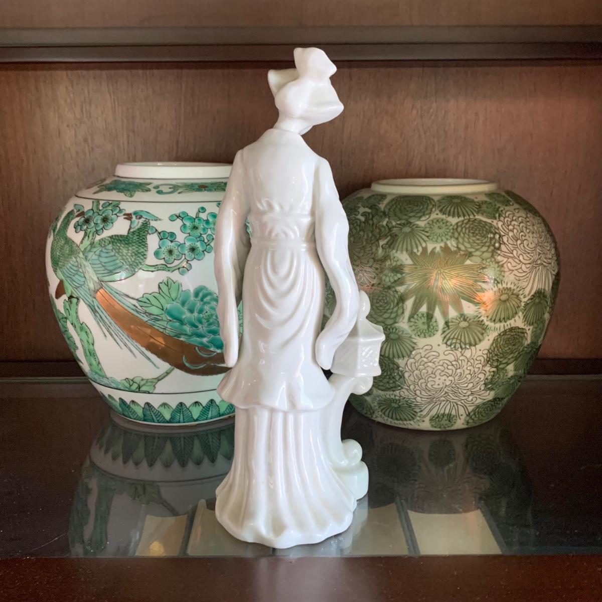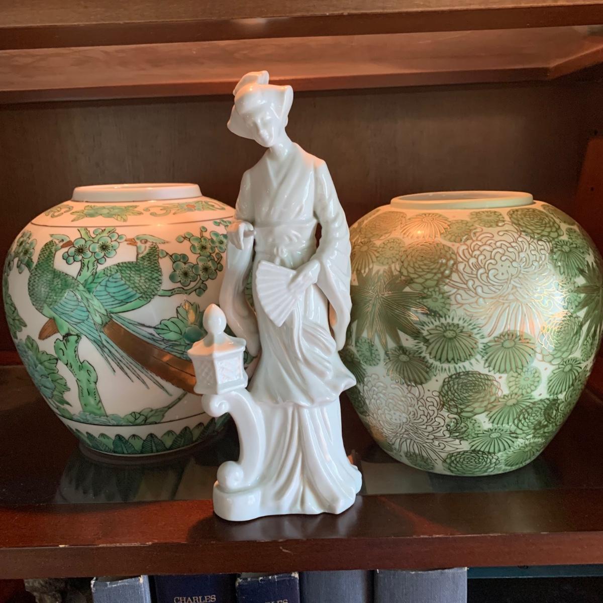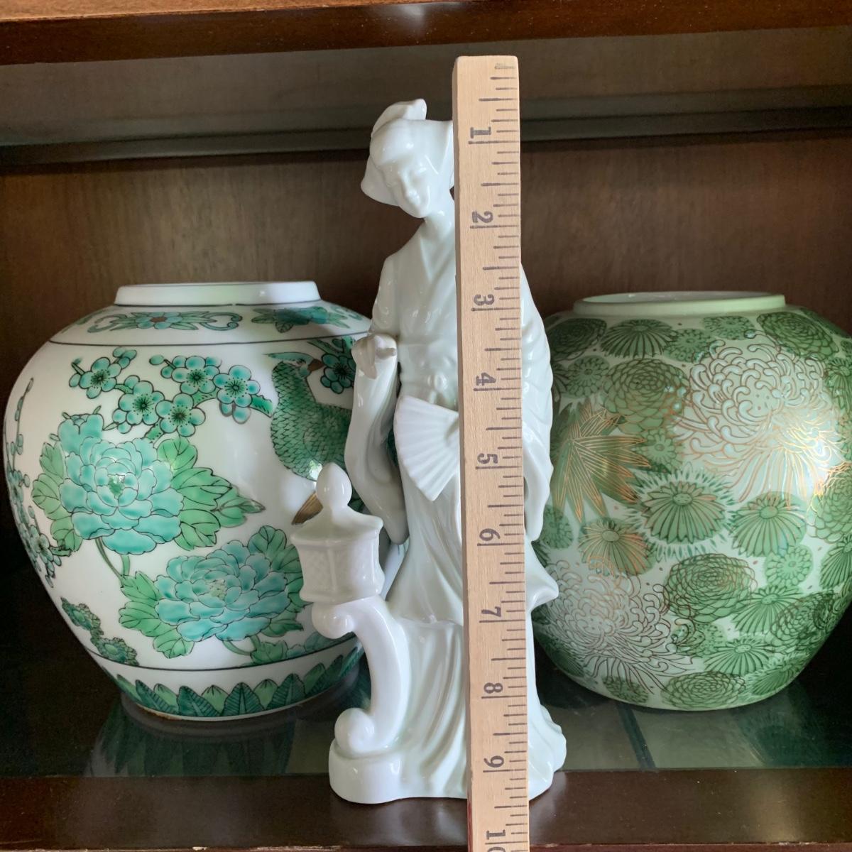 LOT 171: White Porcelain Geisha Figurine, Vintage Porcelain Ginger Jar w/Pheasant Bird & Vintage Chrysanthemum Porcelain Jar