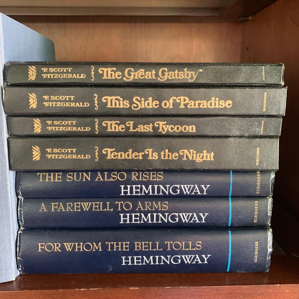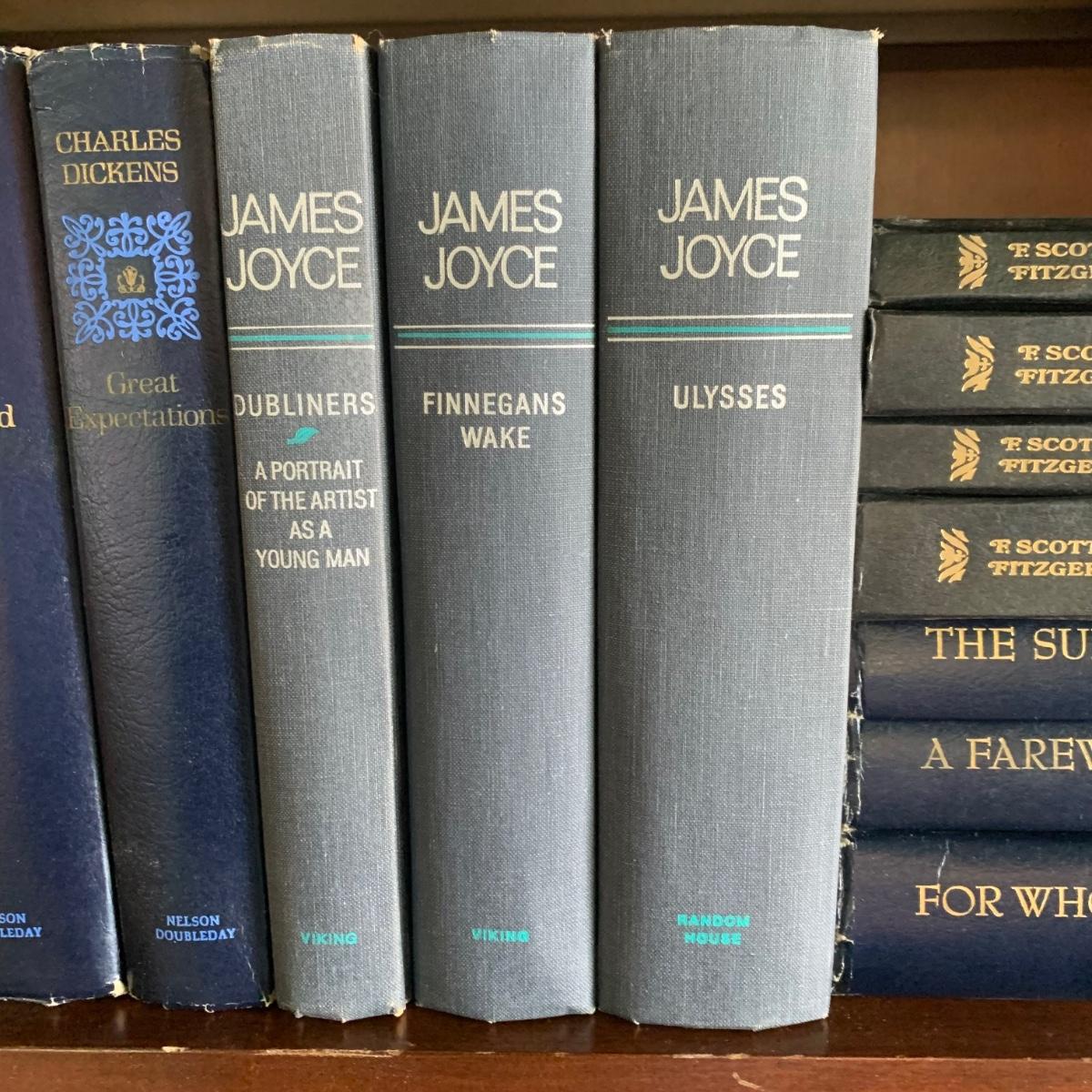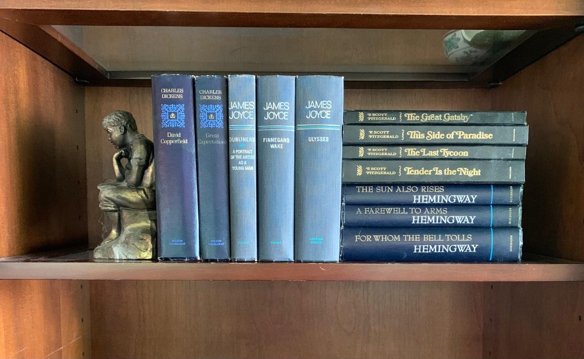 LOT 172: Bronze Thinking Boy Figure & Classic Novels by James Joyce, Charles Dickens, Hemingway & F. Scott Fitzgerald