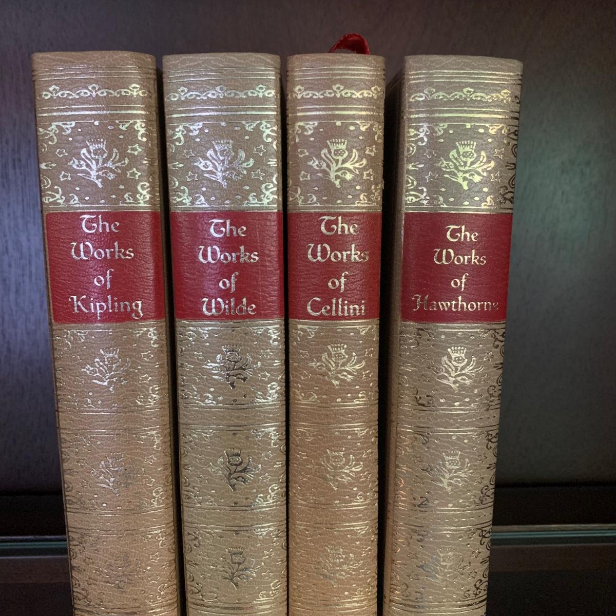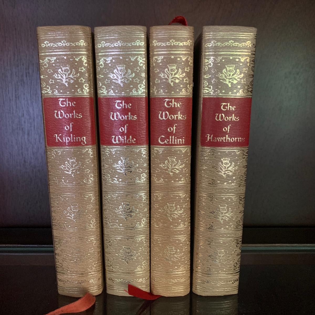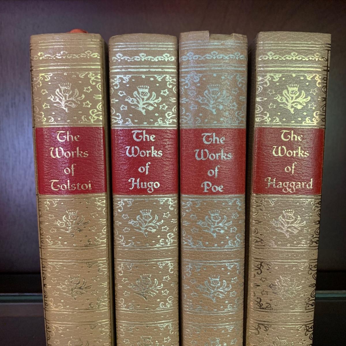 LOT 173: Vintage Collection "The Works of" by Tolstoi, Hugo, Poe, Chekhov, Haggard, Shakespeare, Emerson, Kipling. Wilde, Cellini, Hawthorne, Stevenson, Maupassant, Doyle & Ibsen