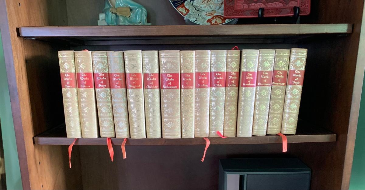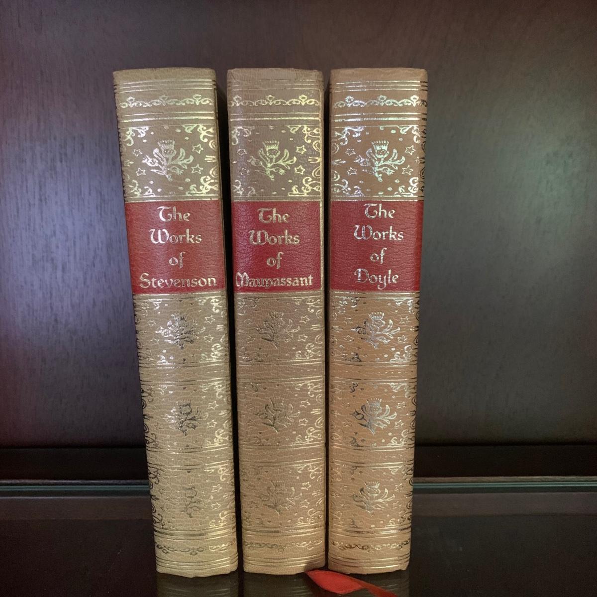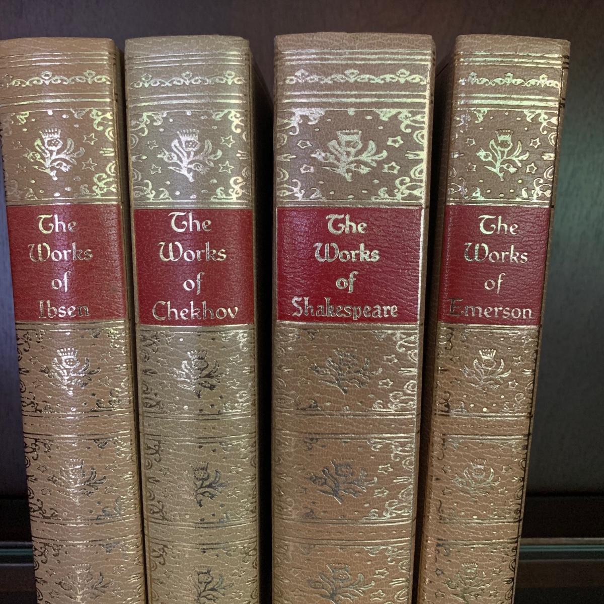 LOT 173: Vintage Collection "The Works of" by Tolstoi, Hugo, Poe, Chekhov, Haggard, Shakespeare, Emerson, Kipling. Wilde, Cellini, Hawthorne, Stevenson, Maupassant, Doyle & Ibsen