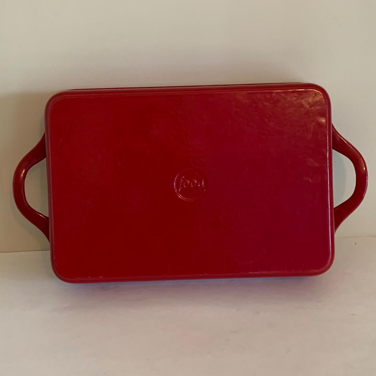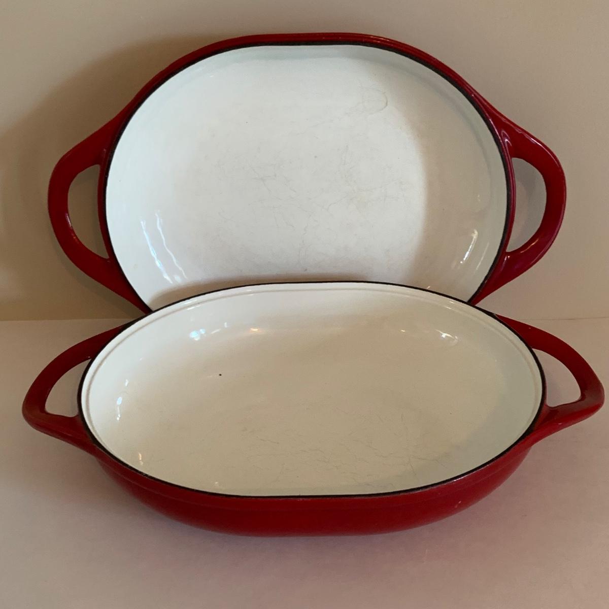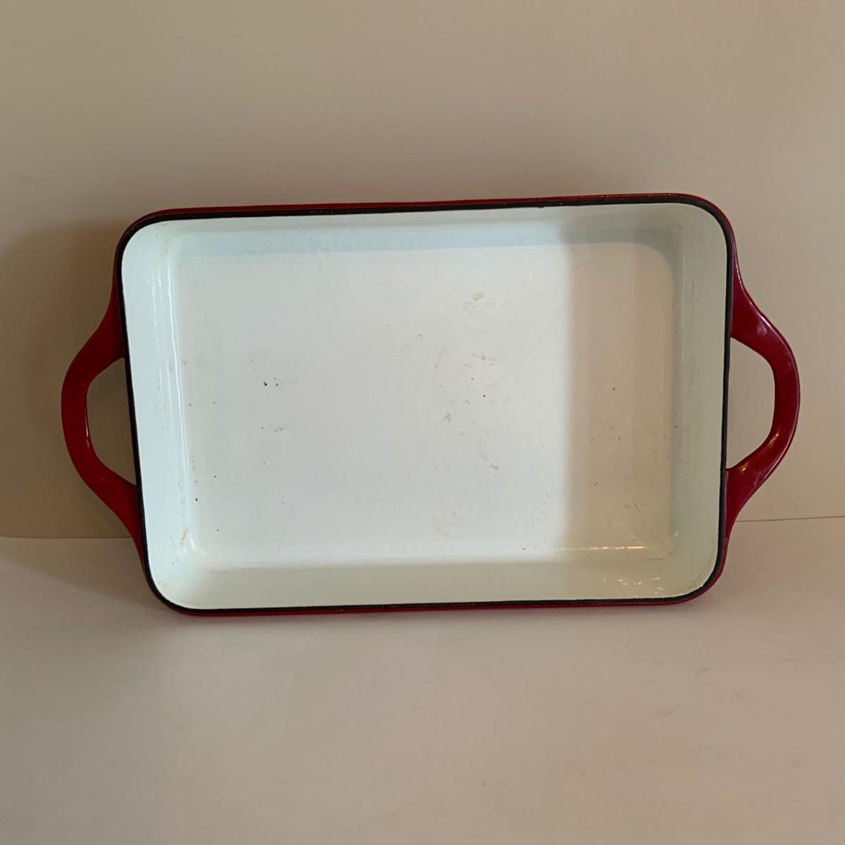 LOT 179: Red Enamel Cast Iron Cookware & Red Metal Colander