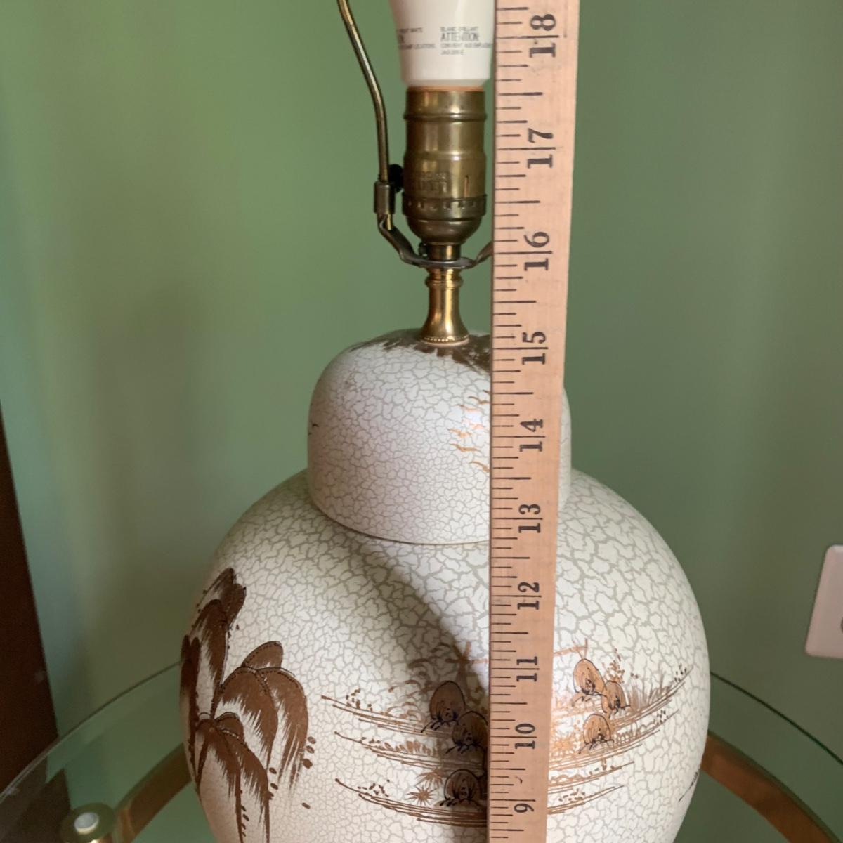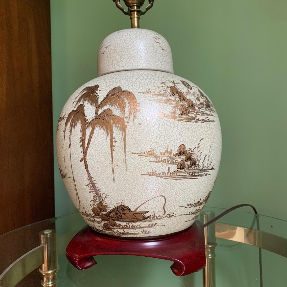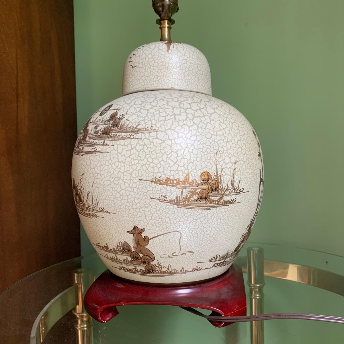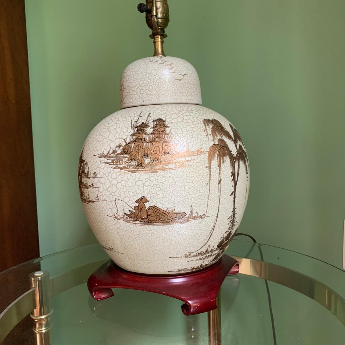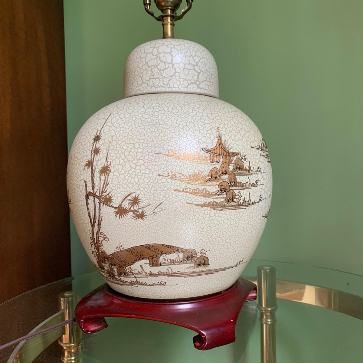 LOT 190: Crackle Glaze & w/Gold Asian Inspired Scenery Table Lamp
