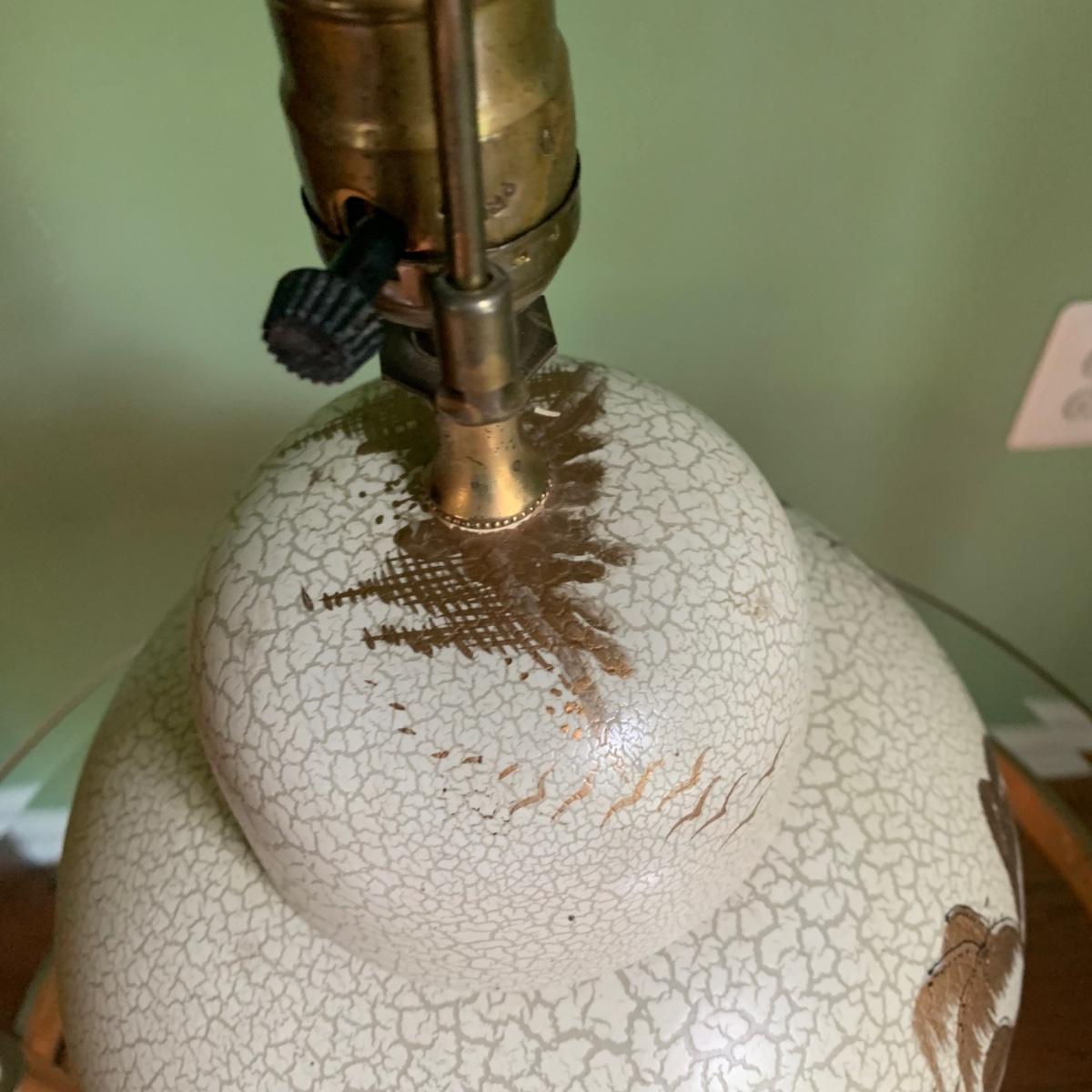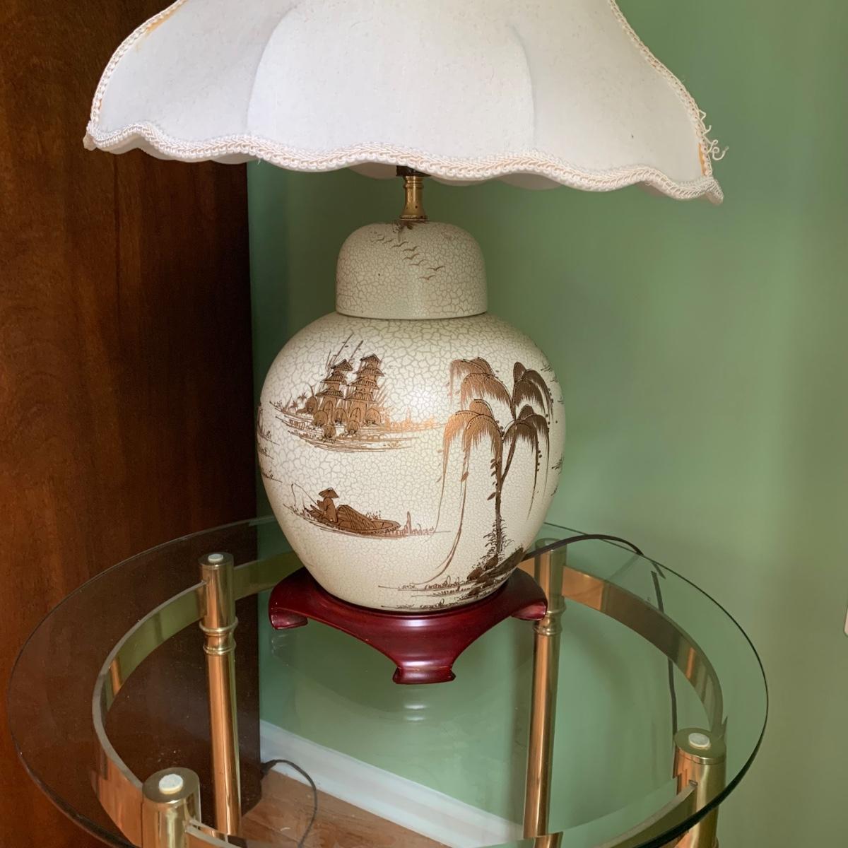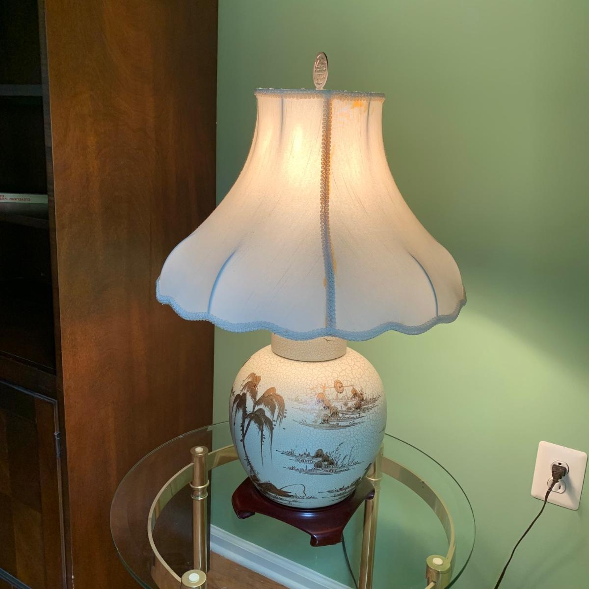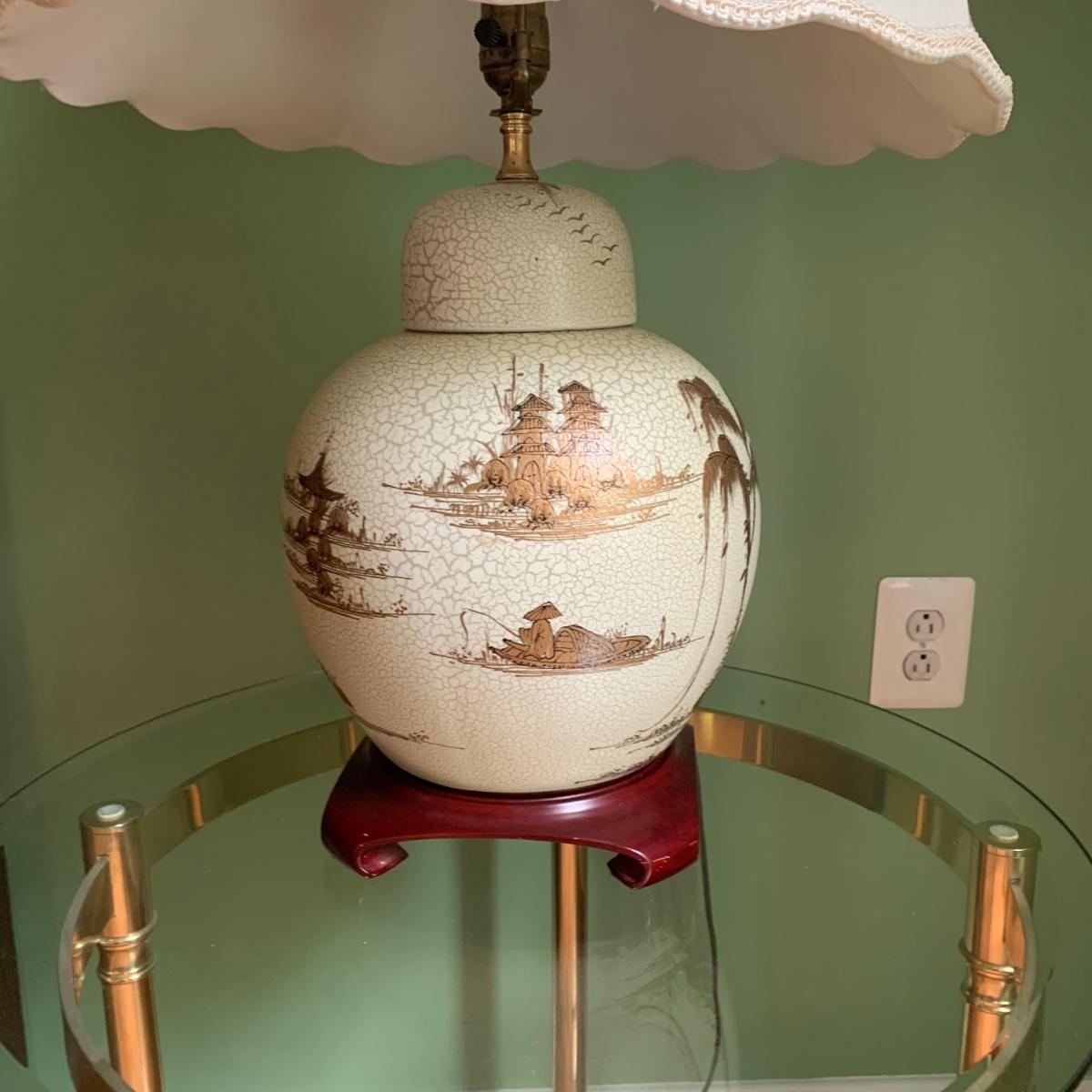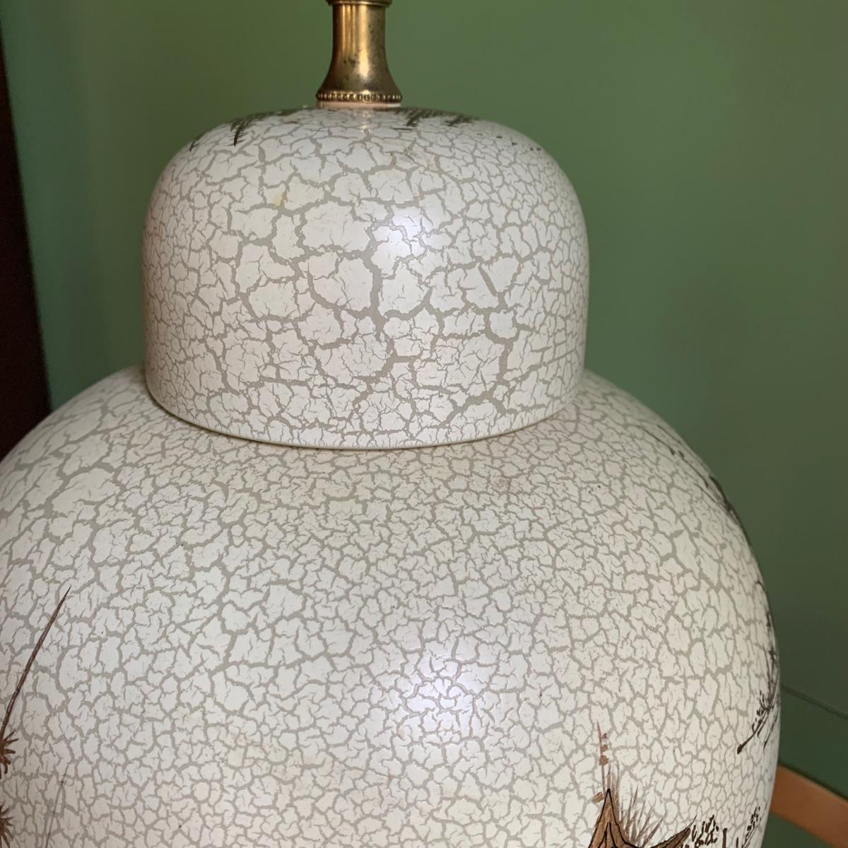 LOT 190: Crackle Glaze & w/Gold Asian Inspired Scenery Table Lamp