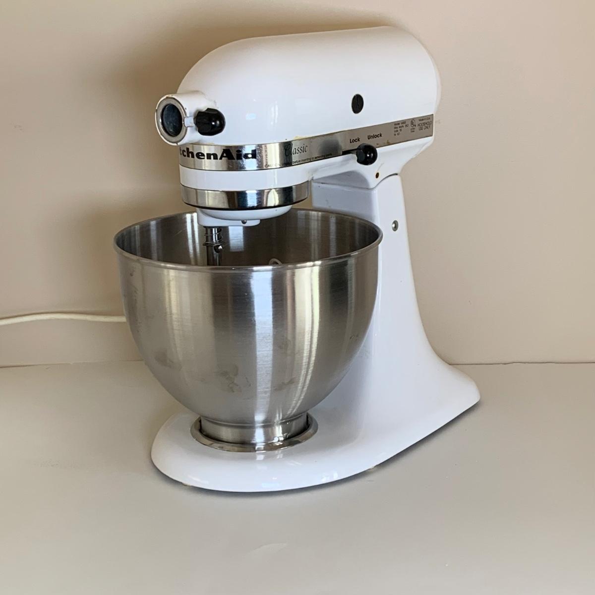 LOT 201: White Classic Kitchen Aid Stand Up Mixer #K45SS