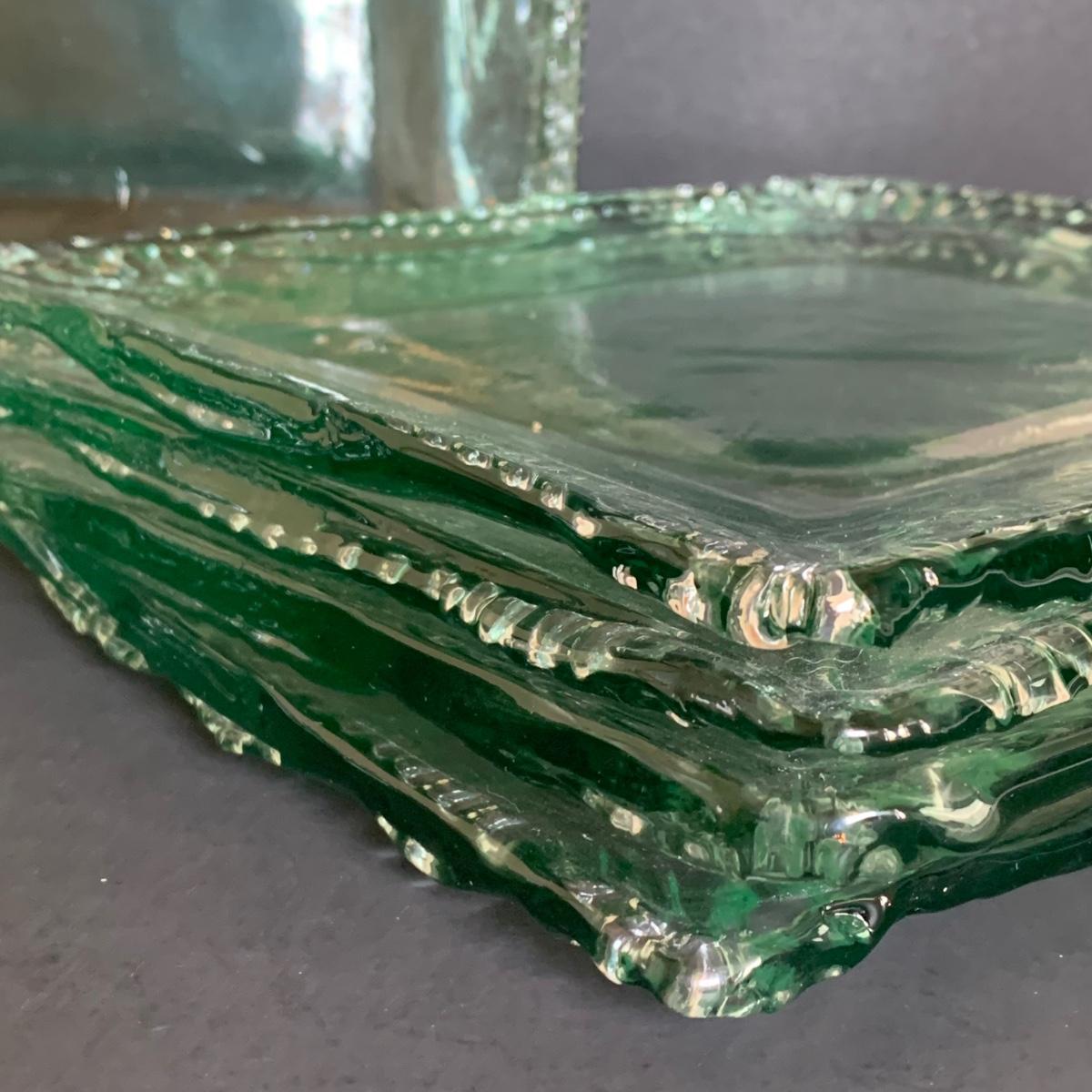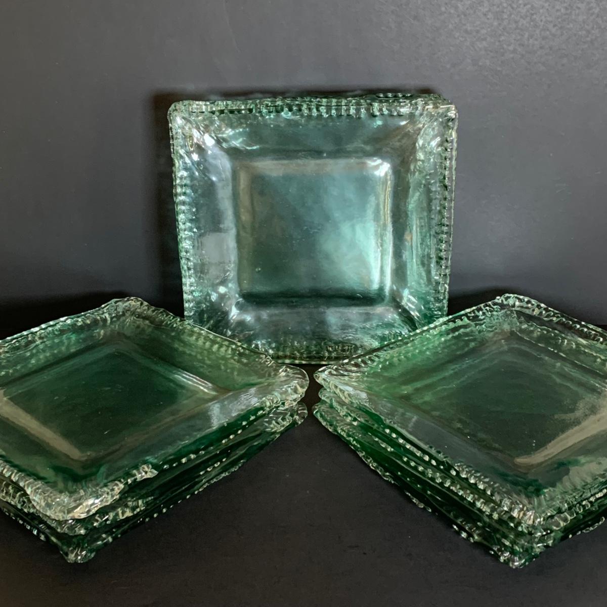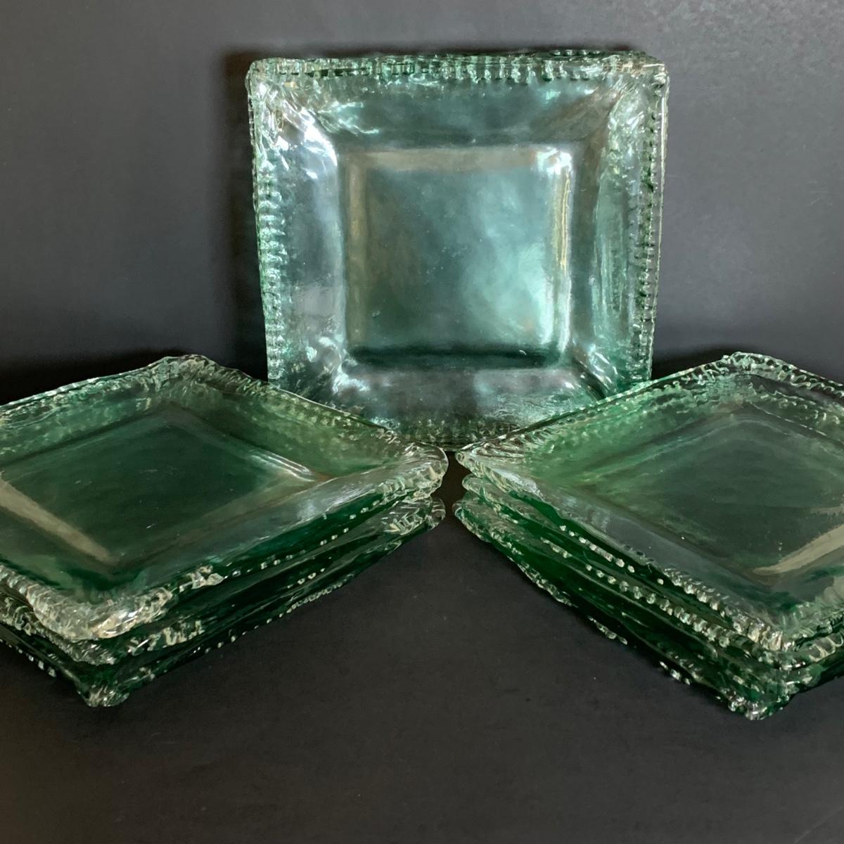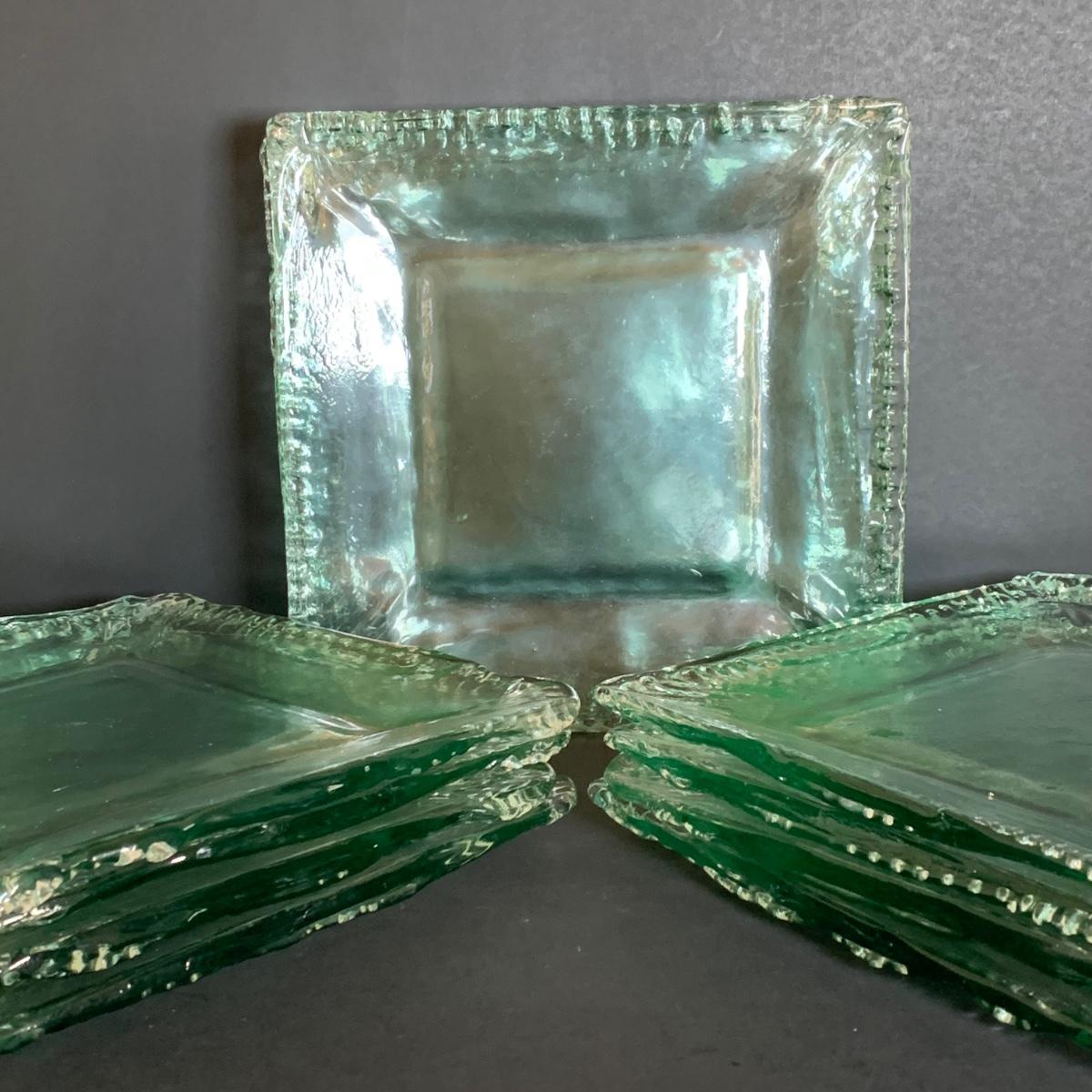 LOT 203: Heavy Art Glass Square Plates 10 3/4"sq. w/Textured Edge