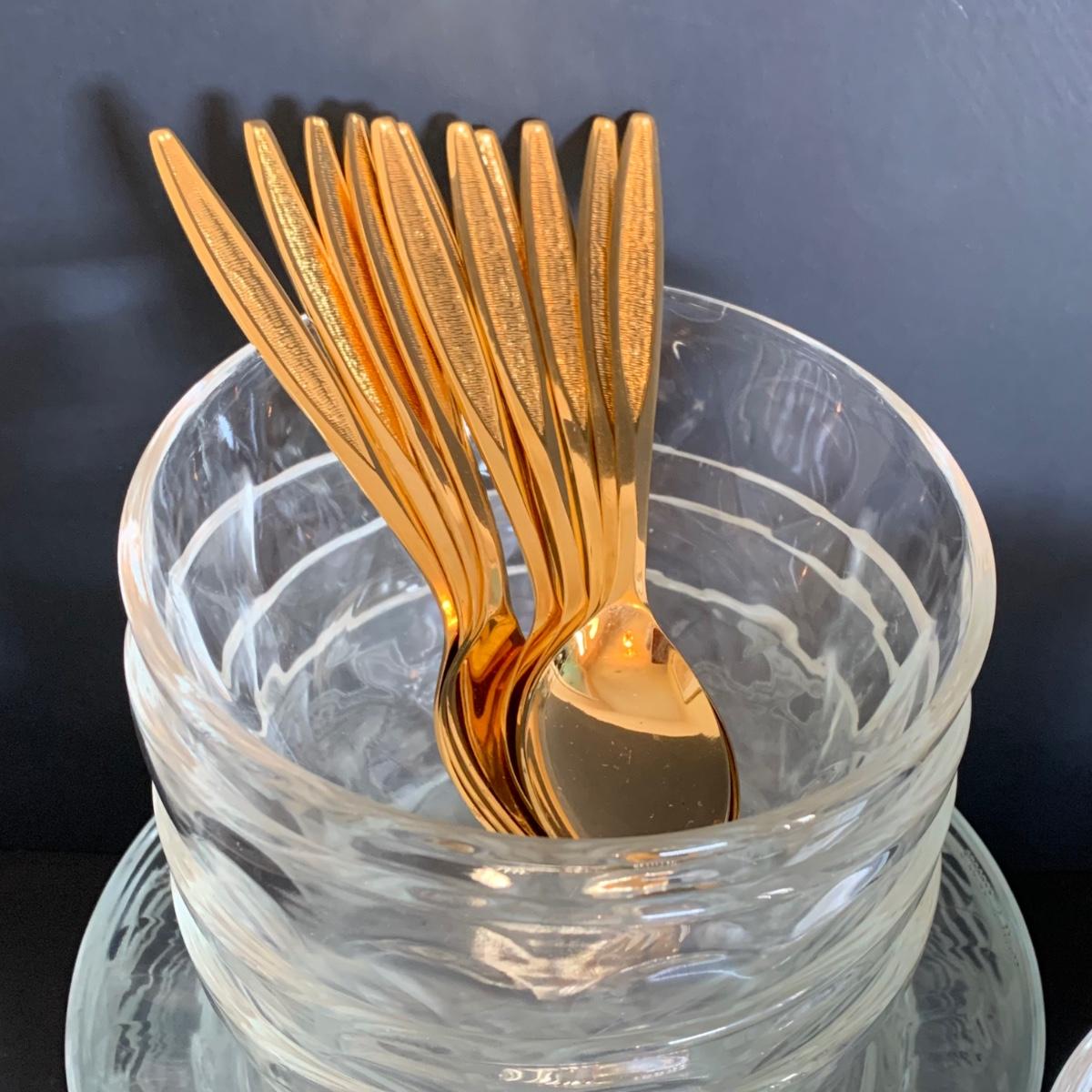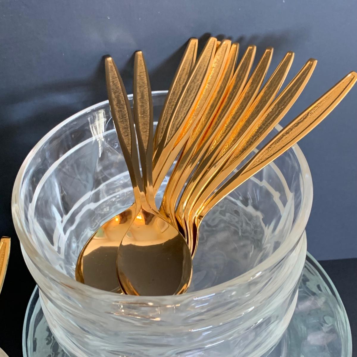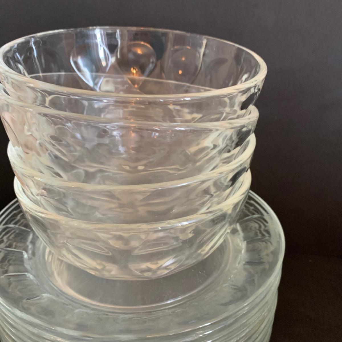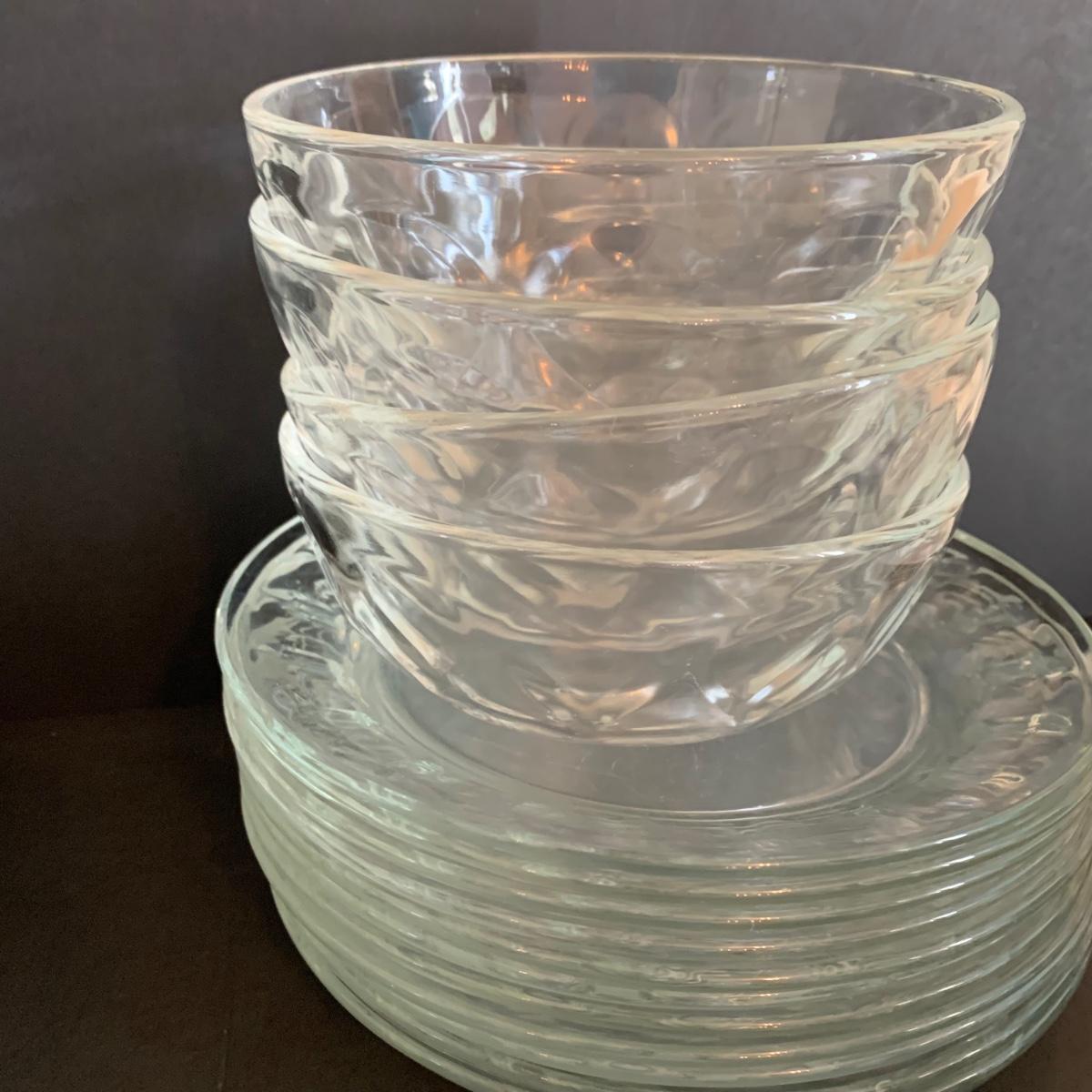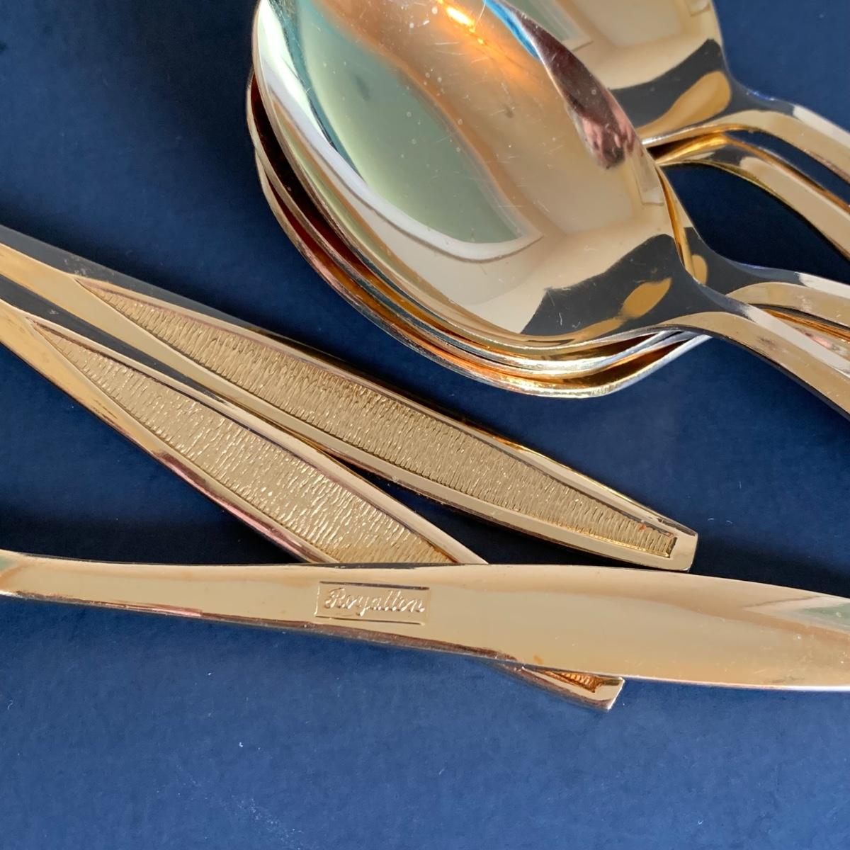 LOT 204: Royalton Gold Tone Flatware, Pyrex Teardrop Bowls, Arcoroc of France Plates