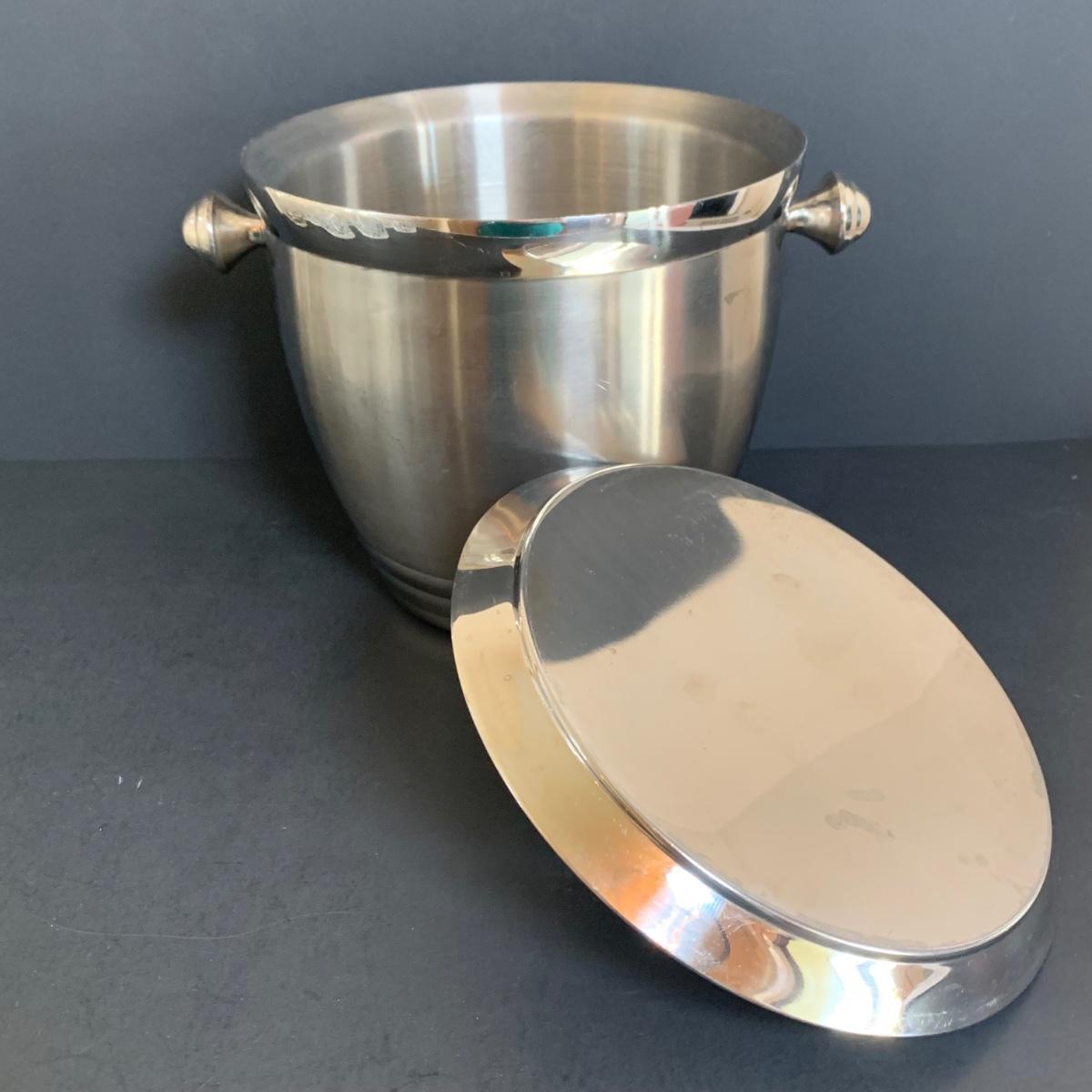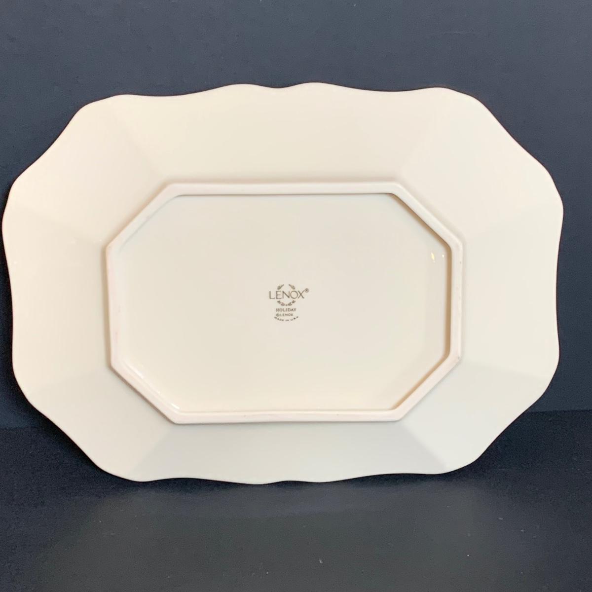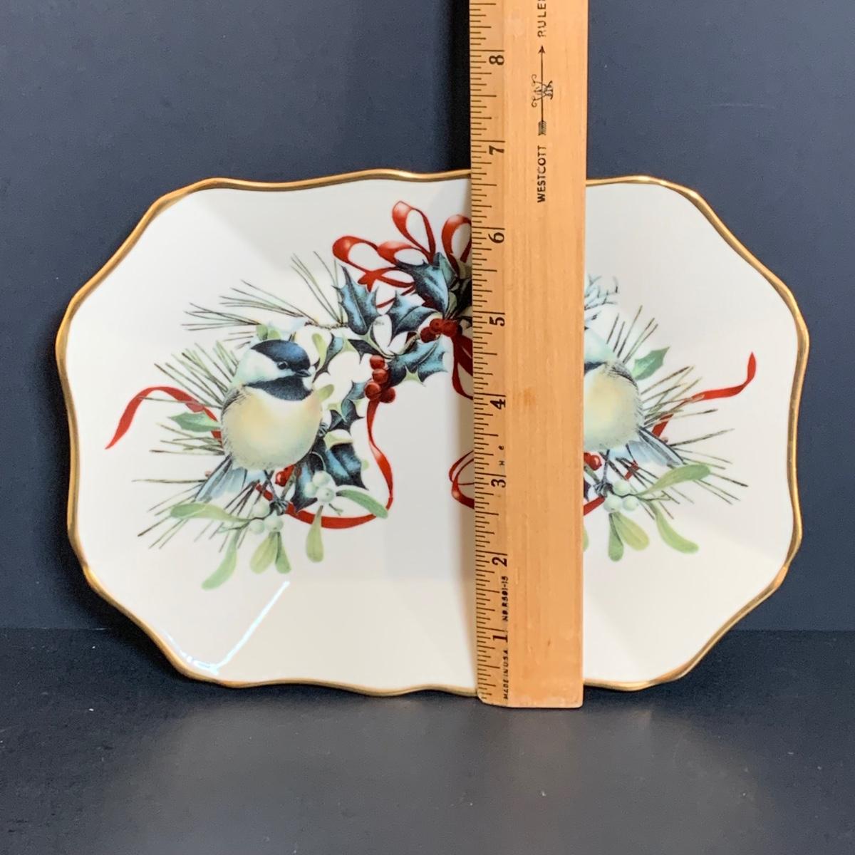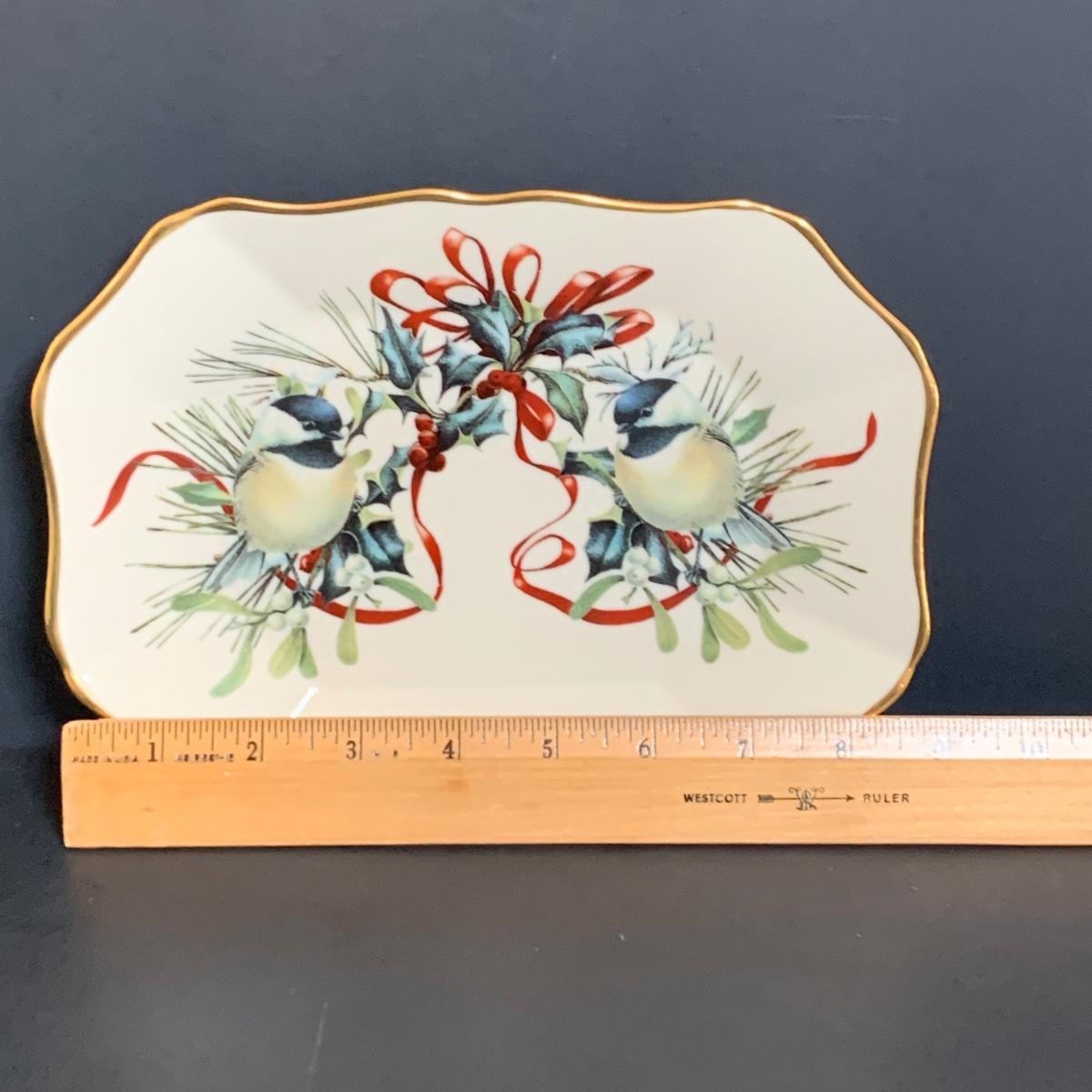 LOT 211: Lenox & More Collection: Stainless Steel Lenox Ice Bucket w/Lid, Lenox Tablecloth (NIP), Lenox Holly Chickadee Dish