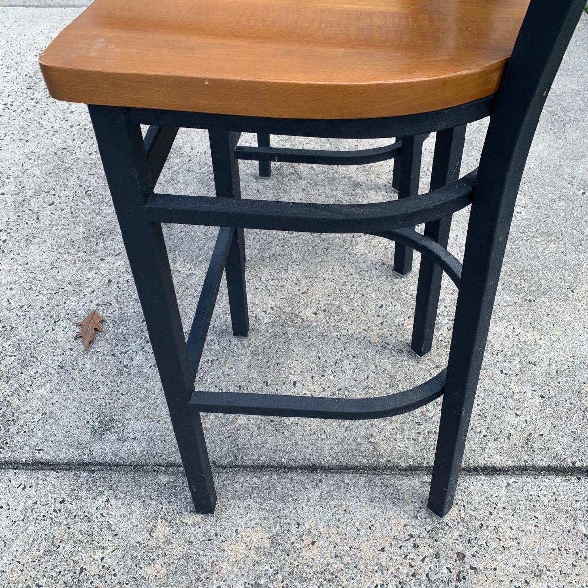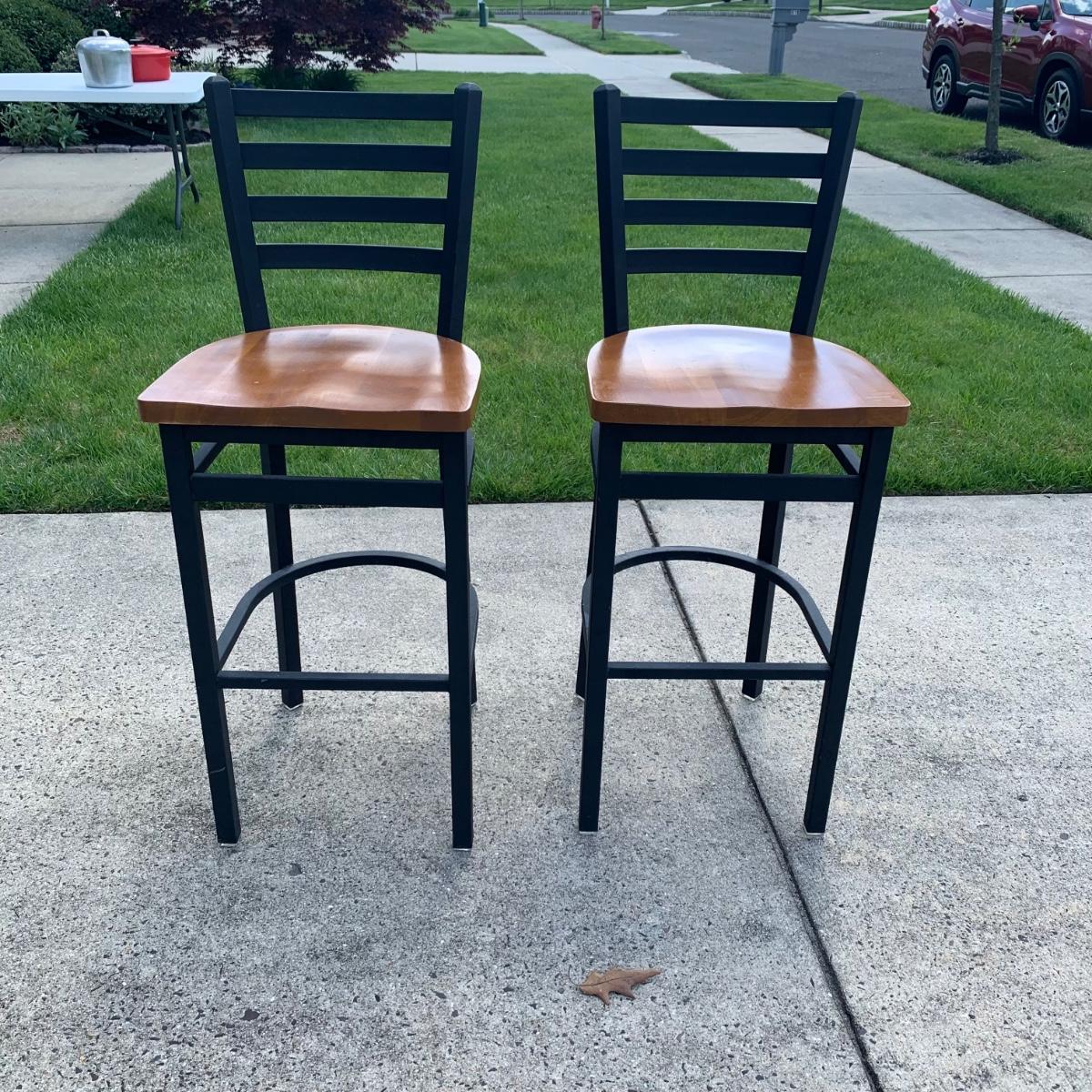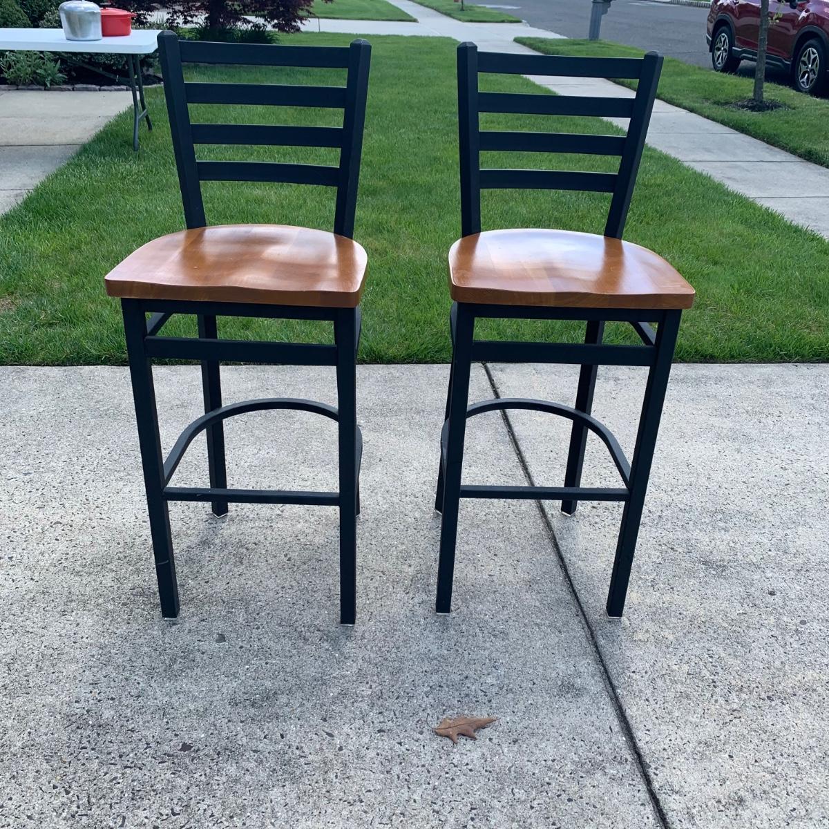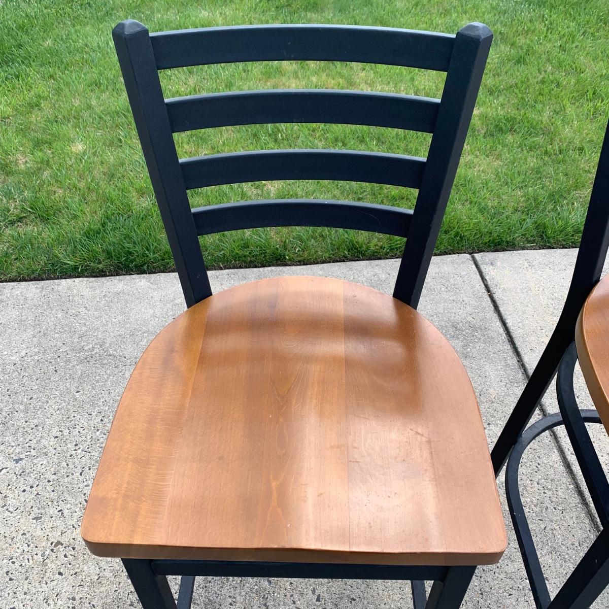 LOT 243: Black Ladder Back Metal Barstools- Natural Wood Seat