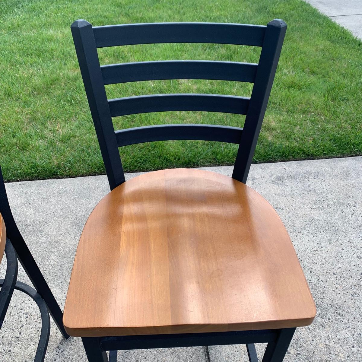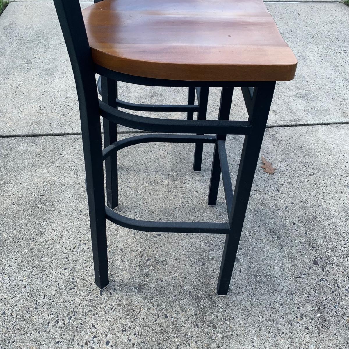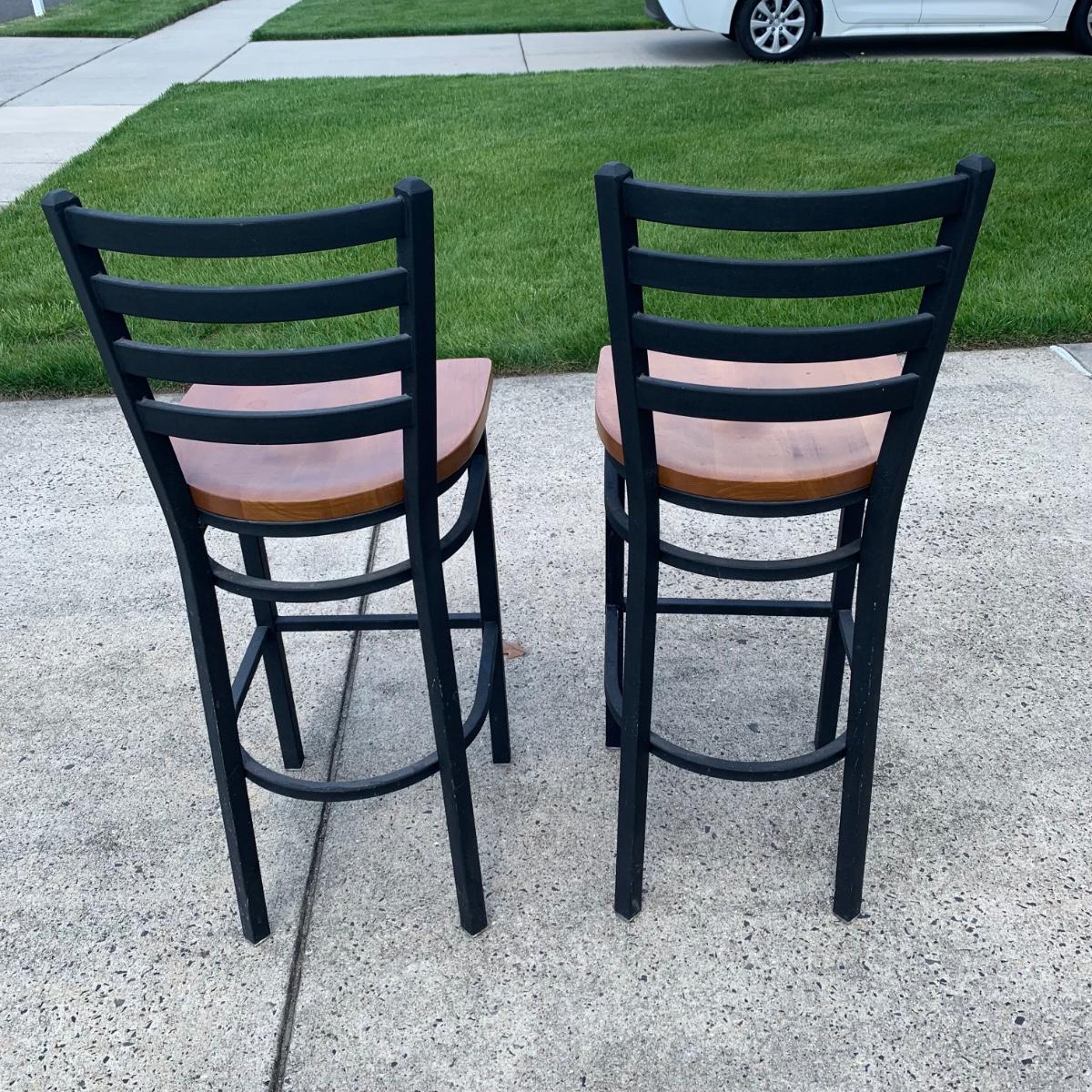 LOT 243: Black Ladder Back Metal Barstools- Natural Wood Seat