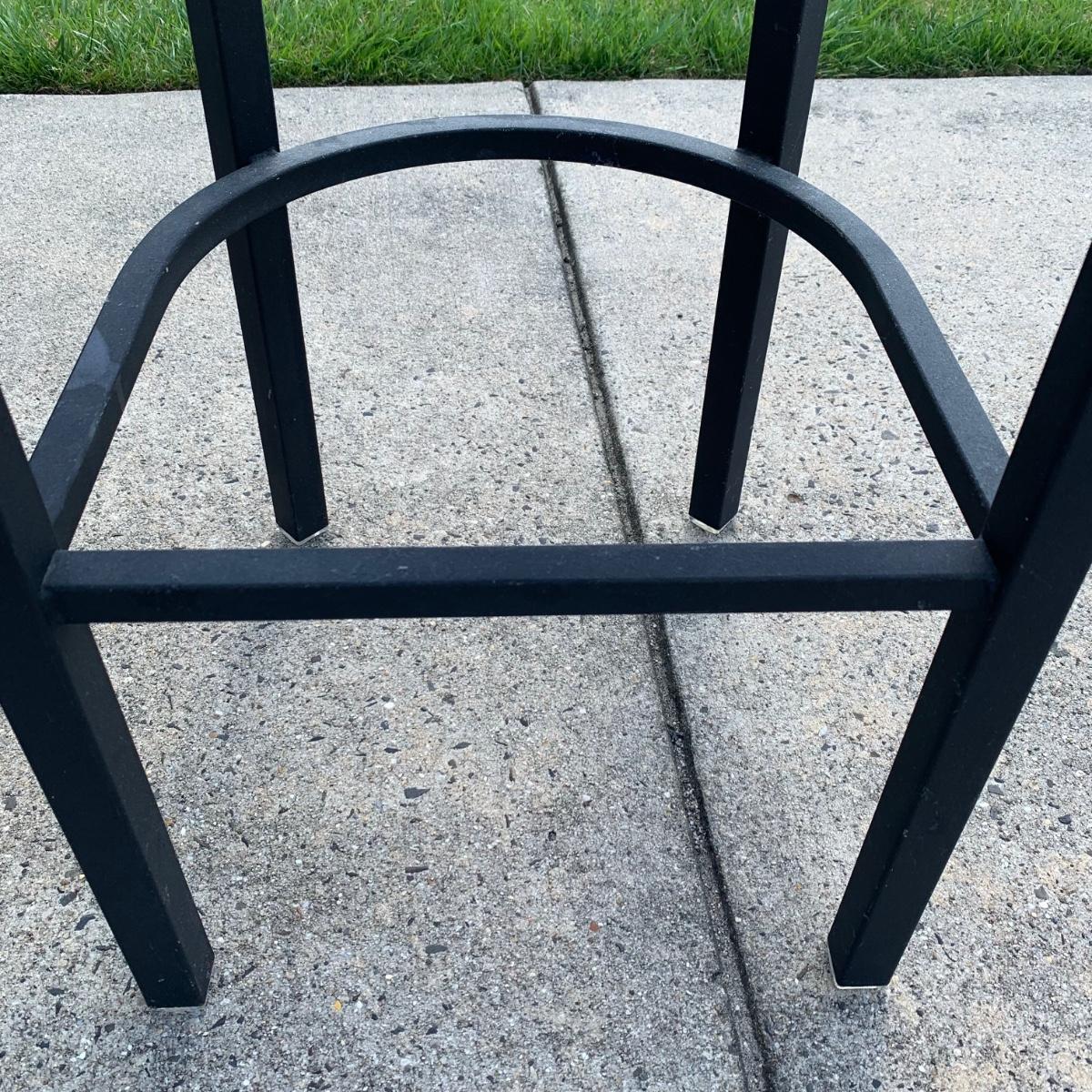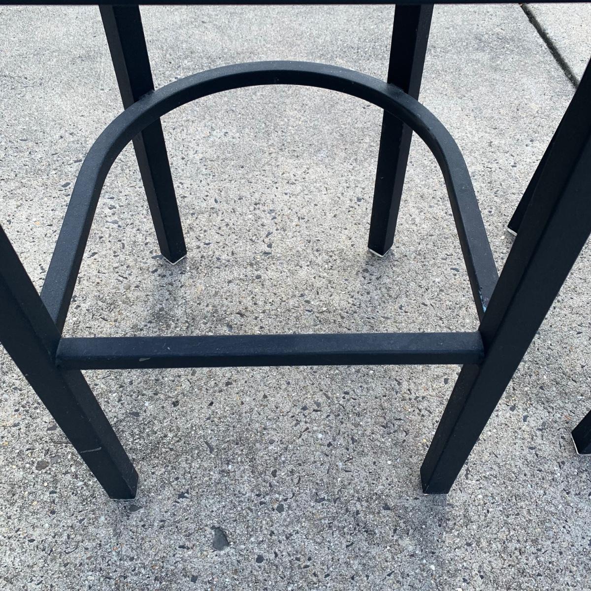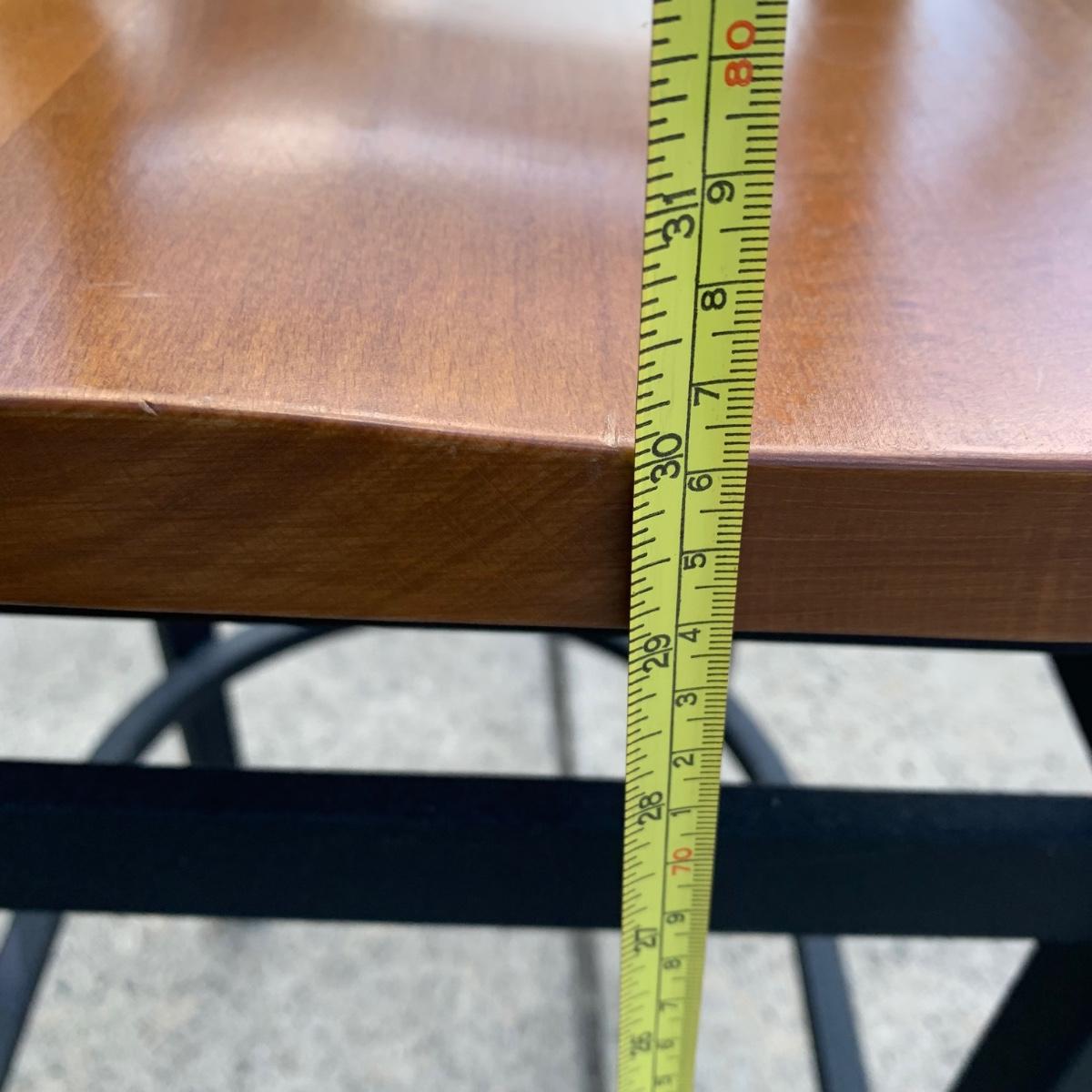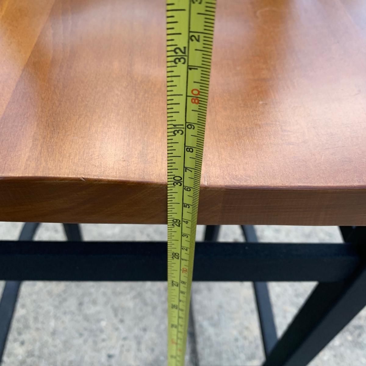 LOT 243: Black Ladder Back Metal Barstools- Natural Wood Seat