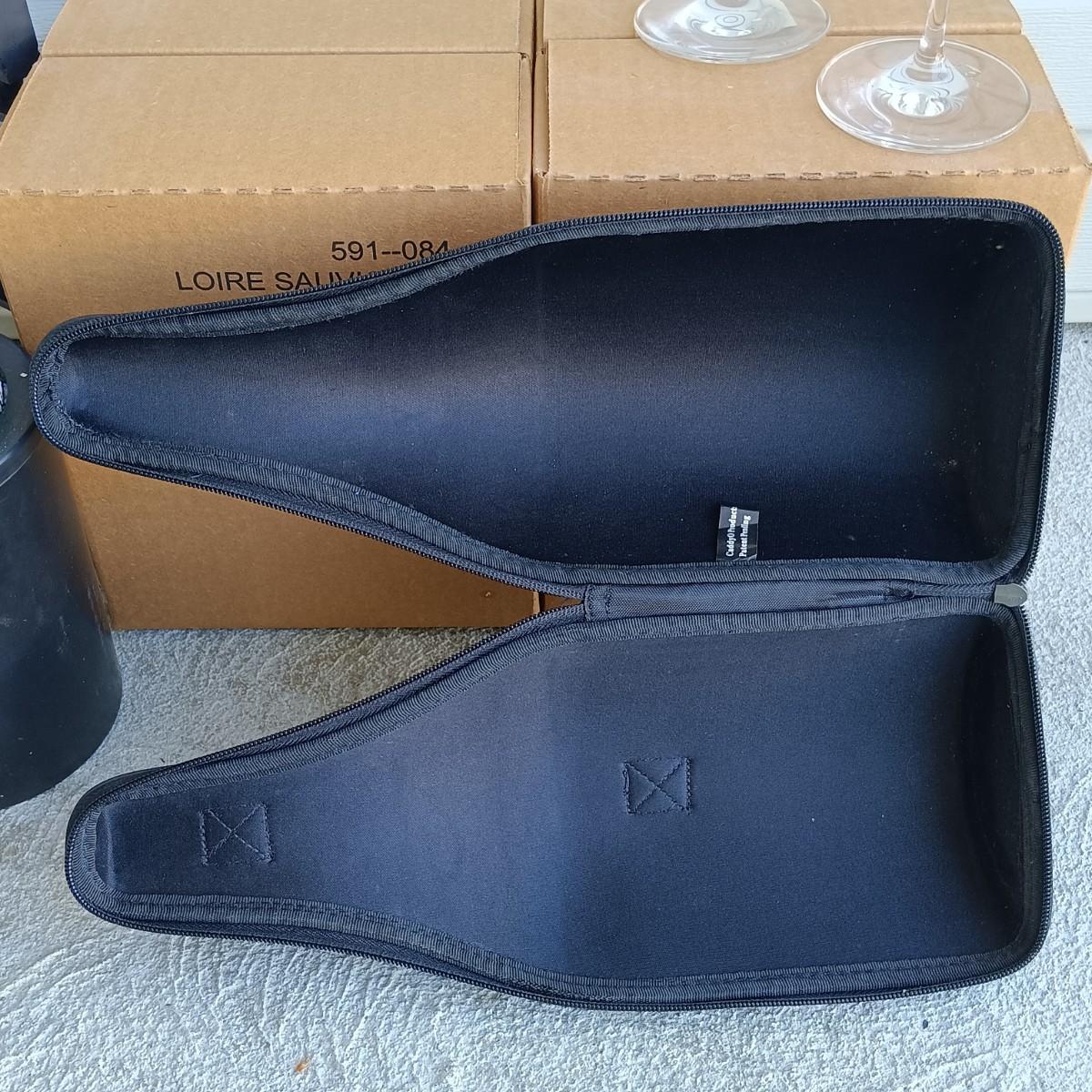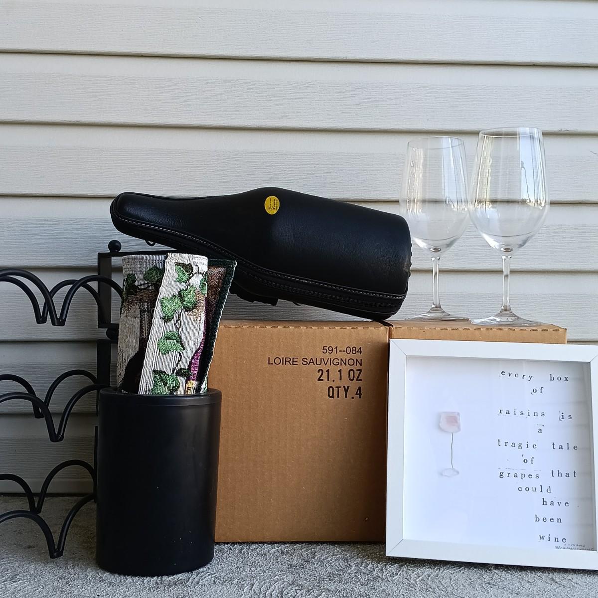LOT 247: Wine Night - Stackable Metal Wine Rack w/ Schott Zwiesel Wine Glasses, Leather Wine Bottle Case & More