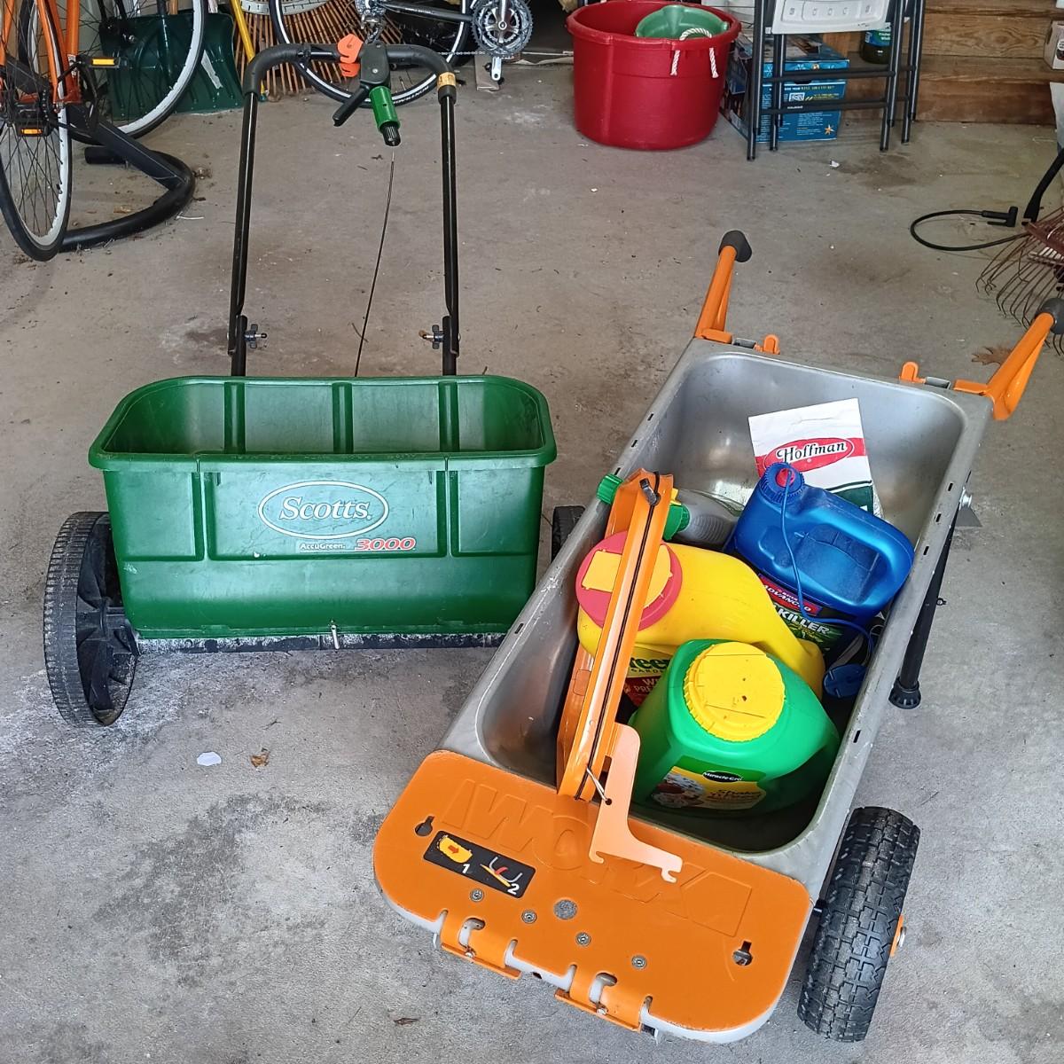 LOT 254: Worx Aerocart w/ Scotts AccuGreen 3000 & Various Gardening Aids