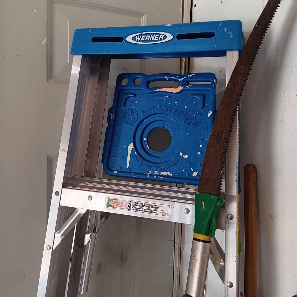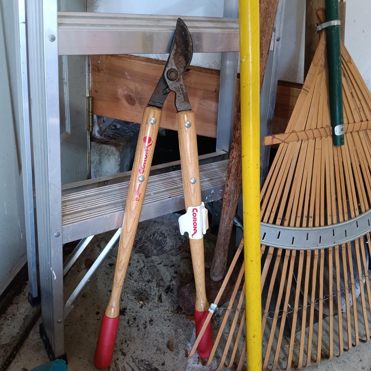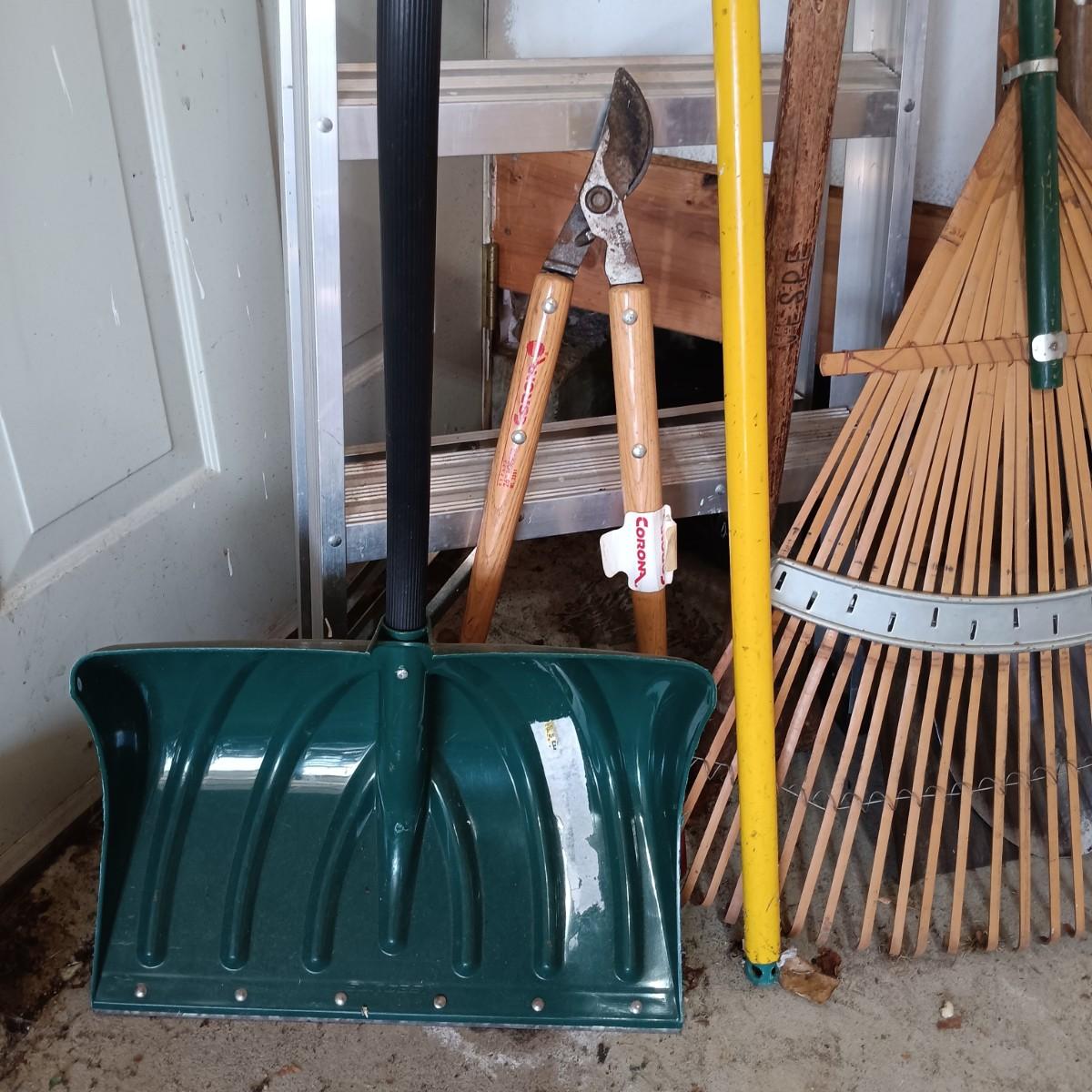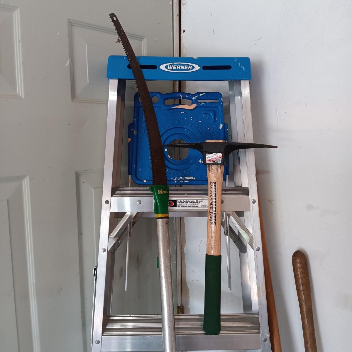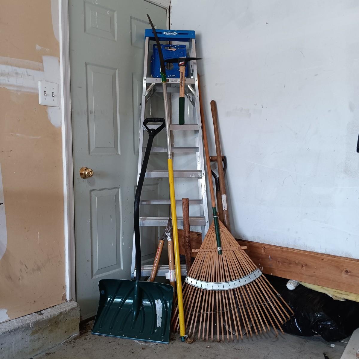 LOT 255: Warner Ladder with Various Outdoor / Gardening Tools
