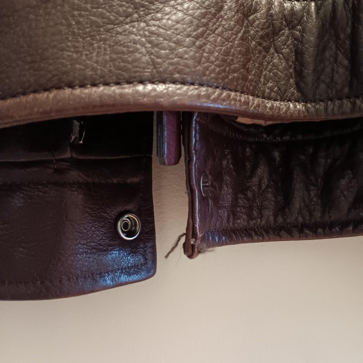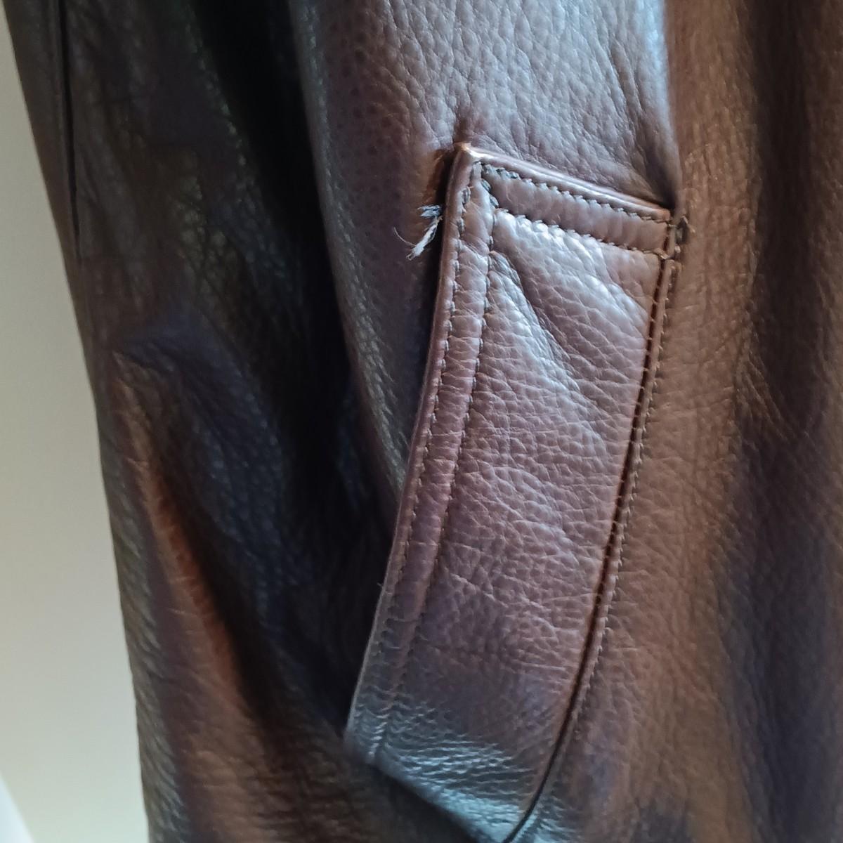 Please Note: The leather has some mild scuffing and discoloration as well as a white spot near the front buttons. There is pilling on the inner lining.