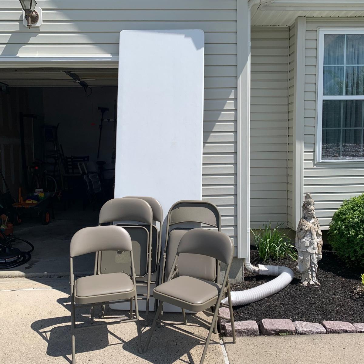 LOT 270: 8ft Lifetime Banquet Table & 6 Padded Folded Chairs