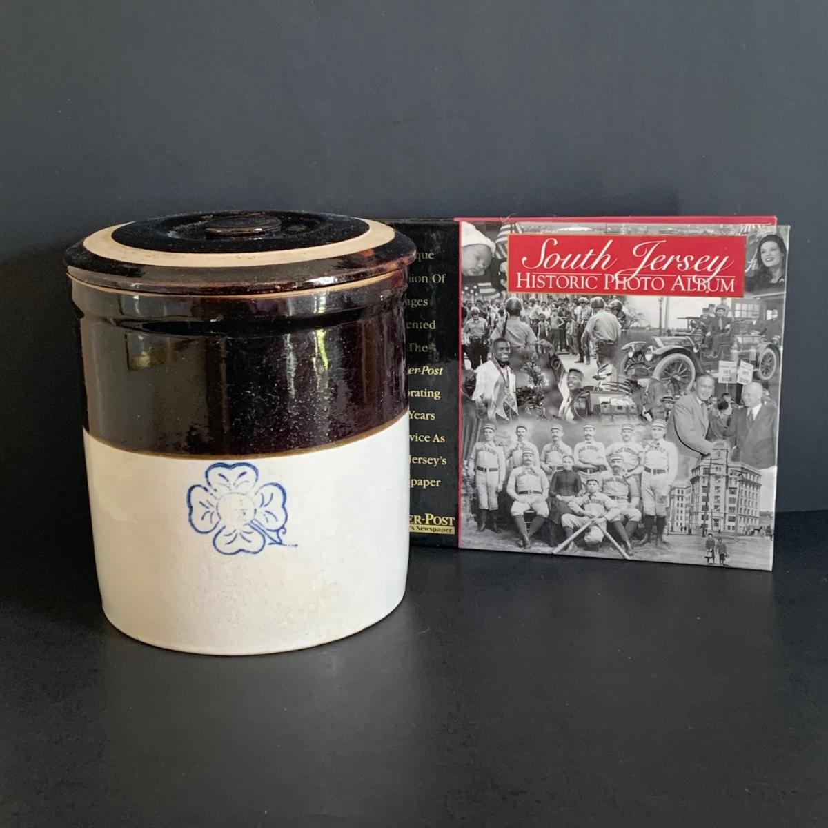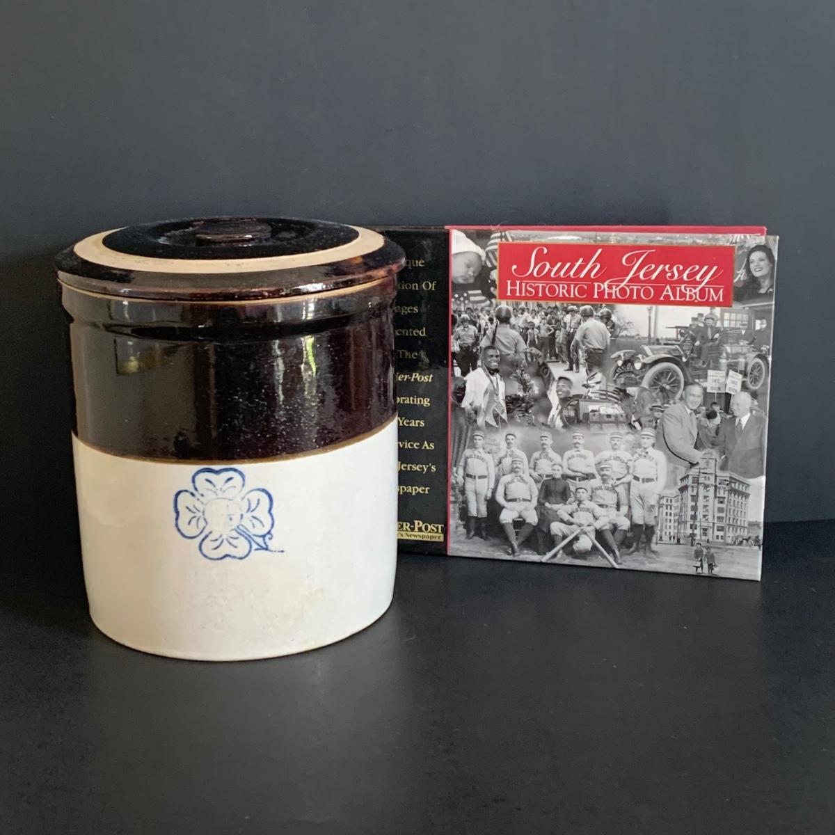 LOT 272: Vintage Stoneware Crock w/Lid & South Jersey Historic Photo Album