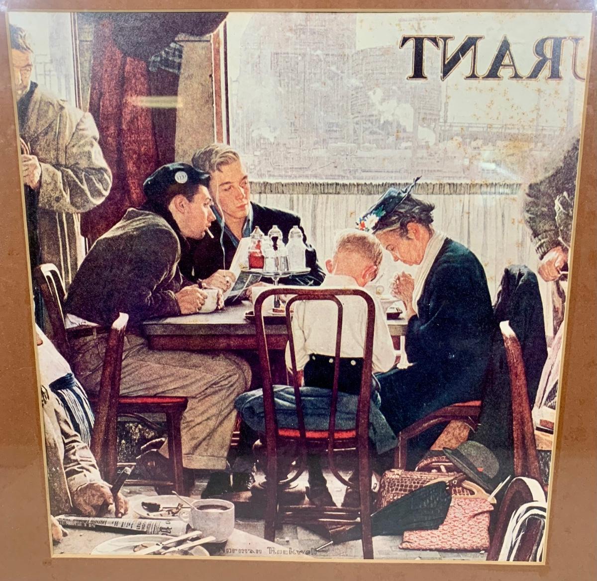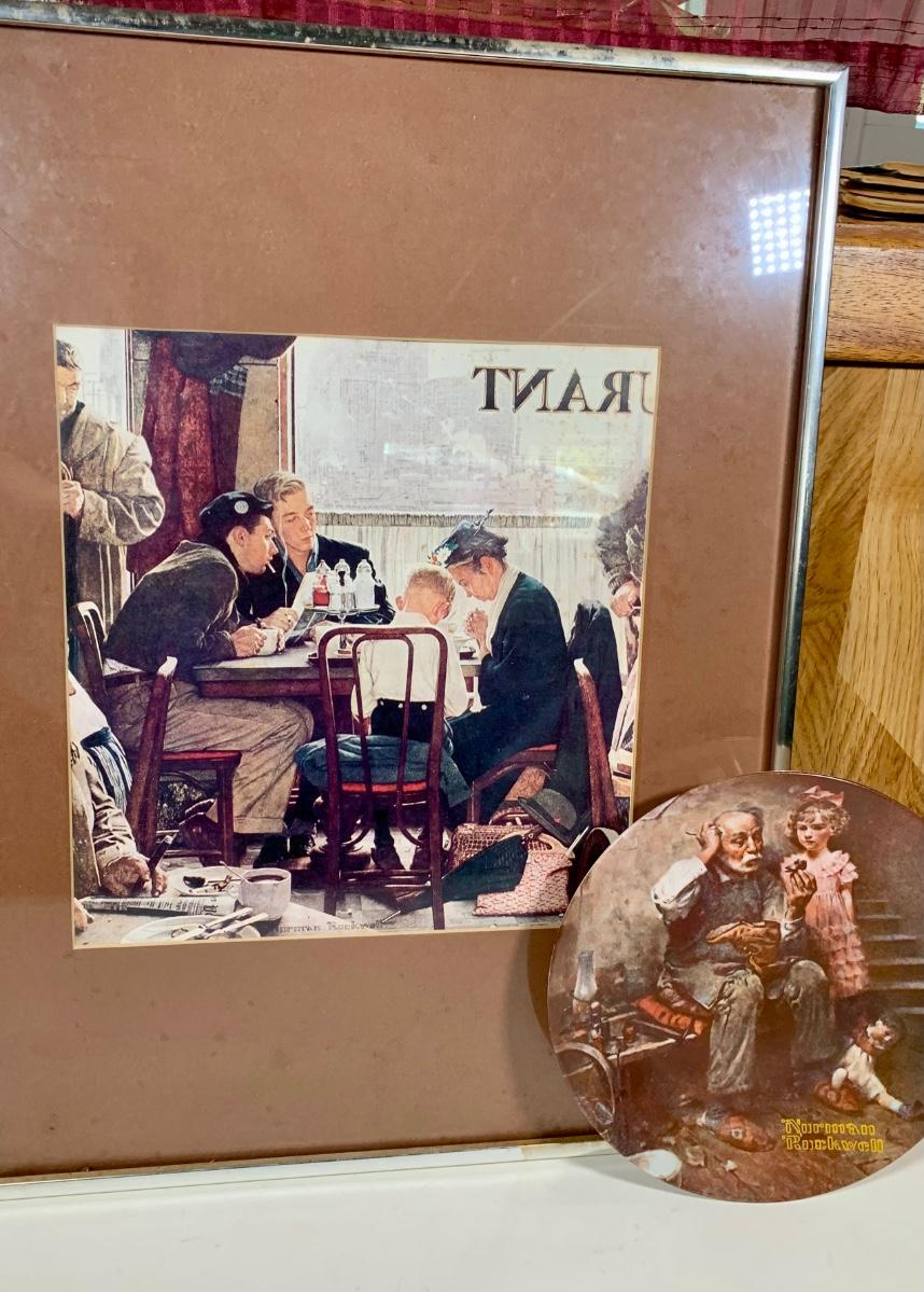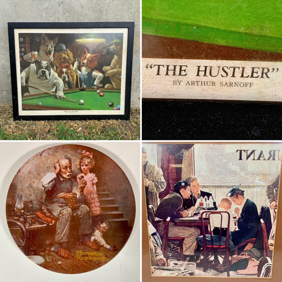 LOT 62: "The Hustler" by Arthur Sarnoff Framed Print, "The Cobbler" Collectors Plate, & "Saying Grace" by Norman Rockwell Framed Print