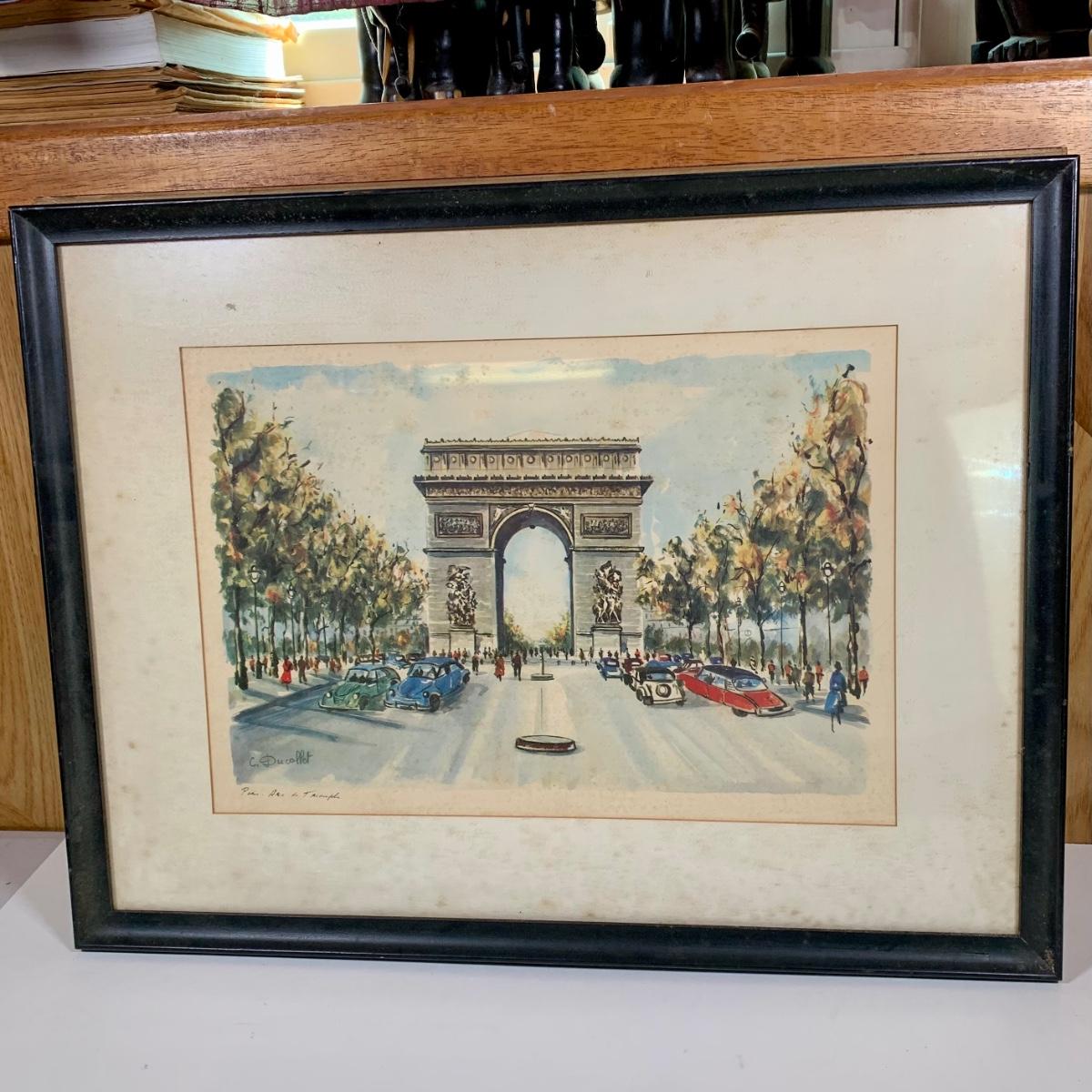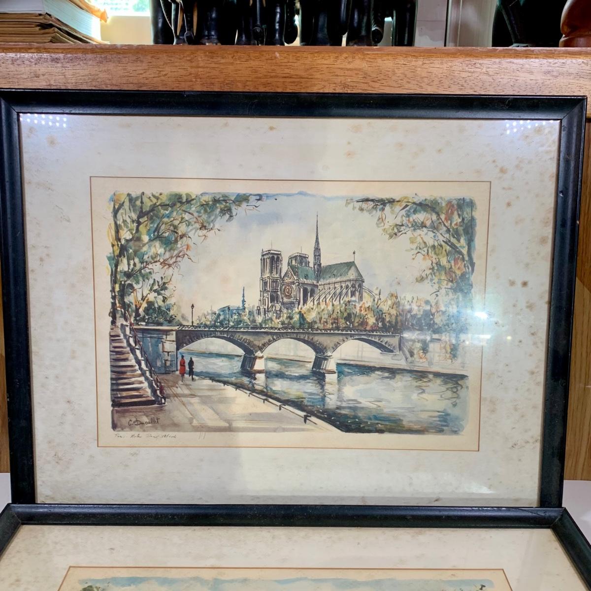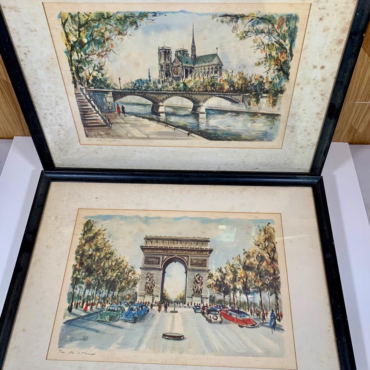 LOT 69: Notre Dame Cathedral & Arc De Triomphe by G. Ducollet Framed Signed Prints