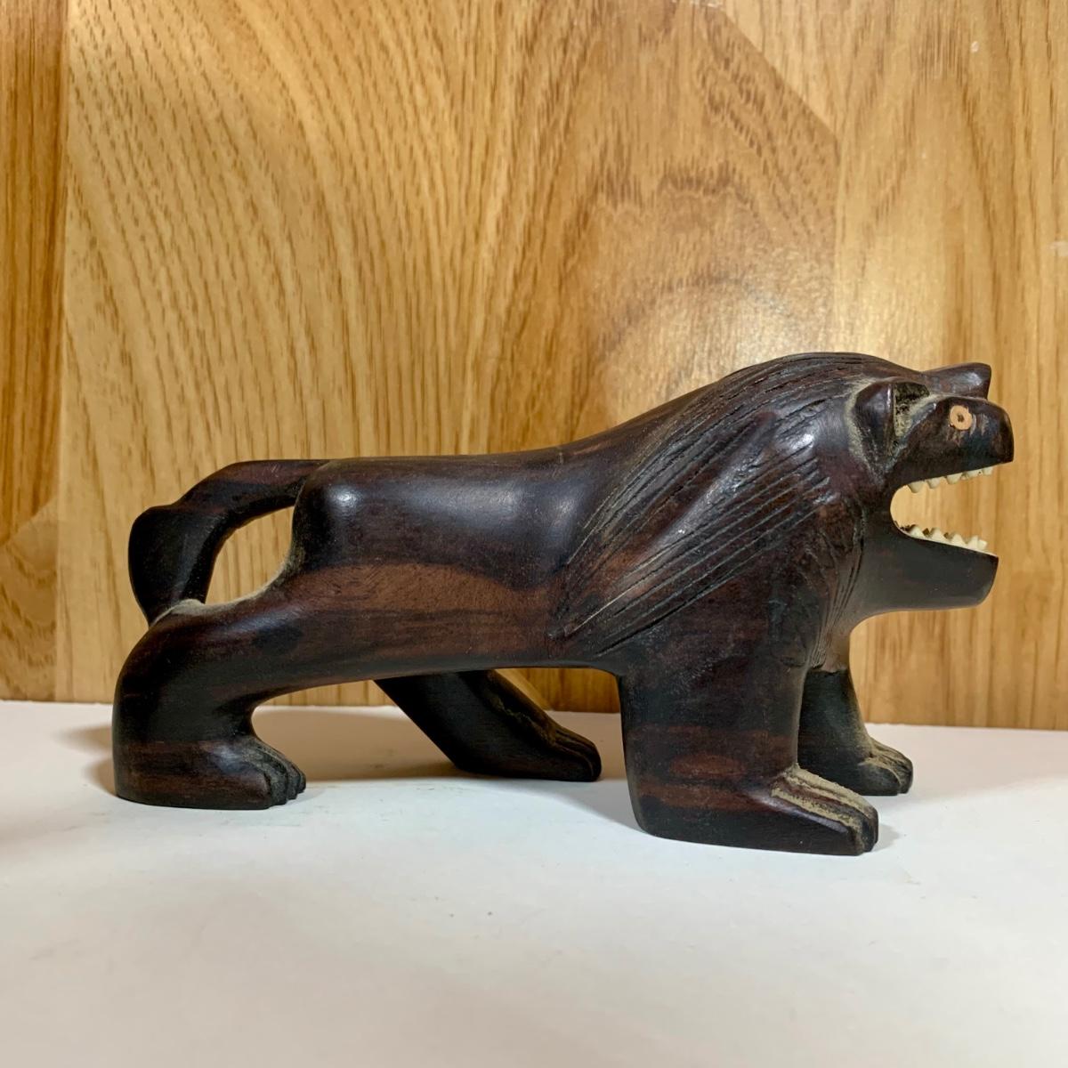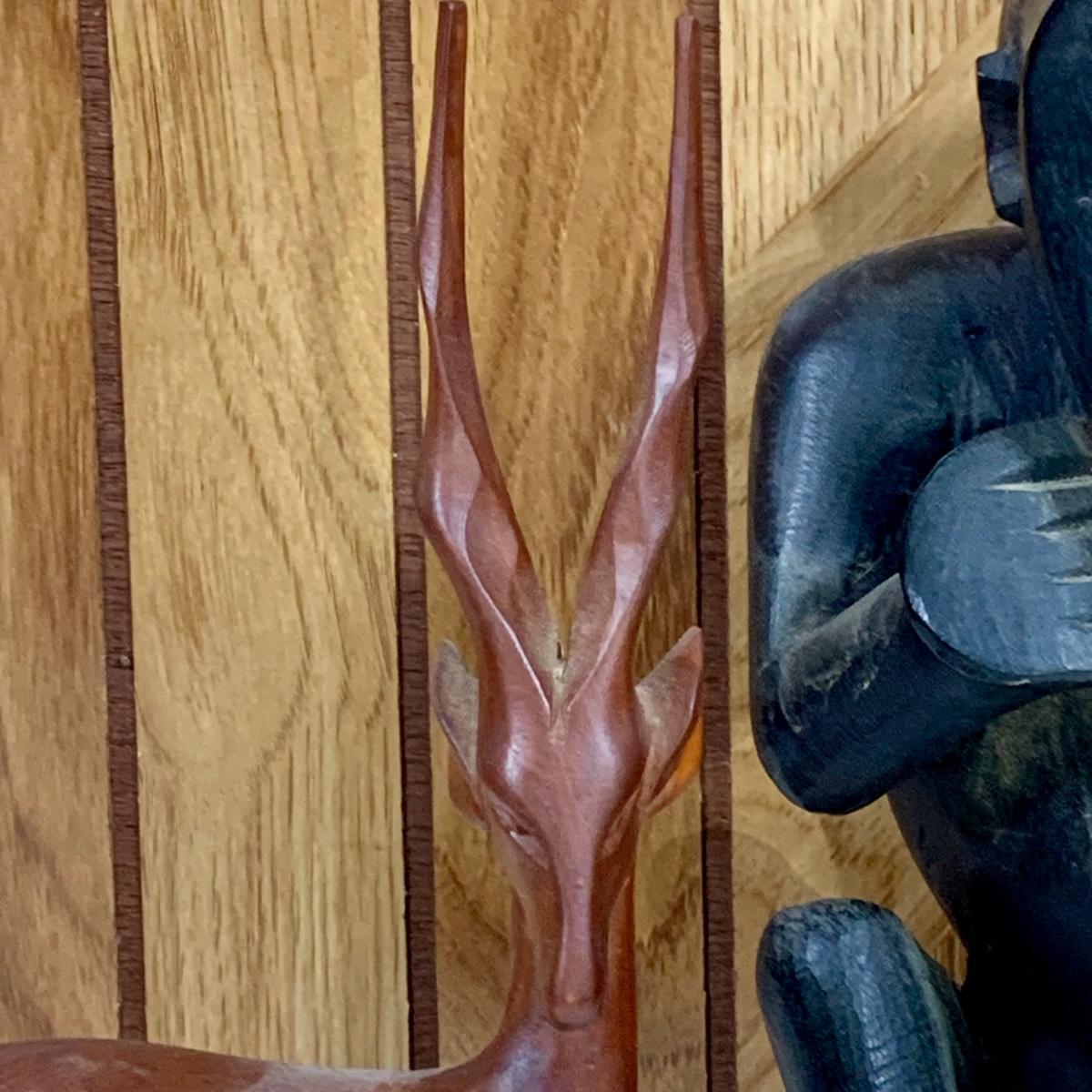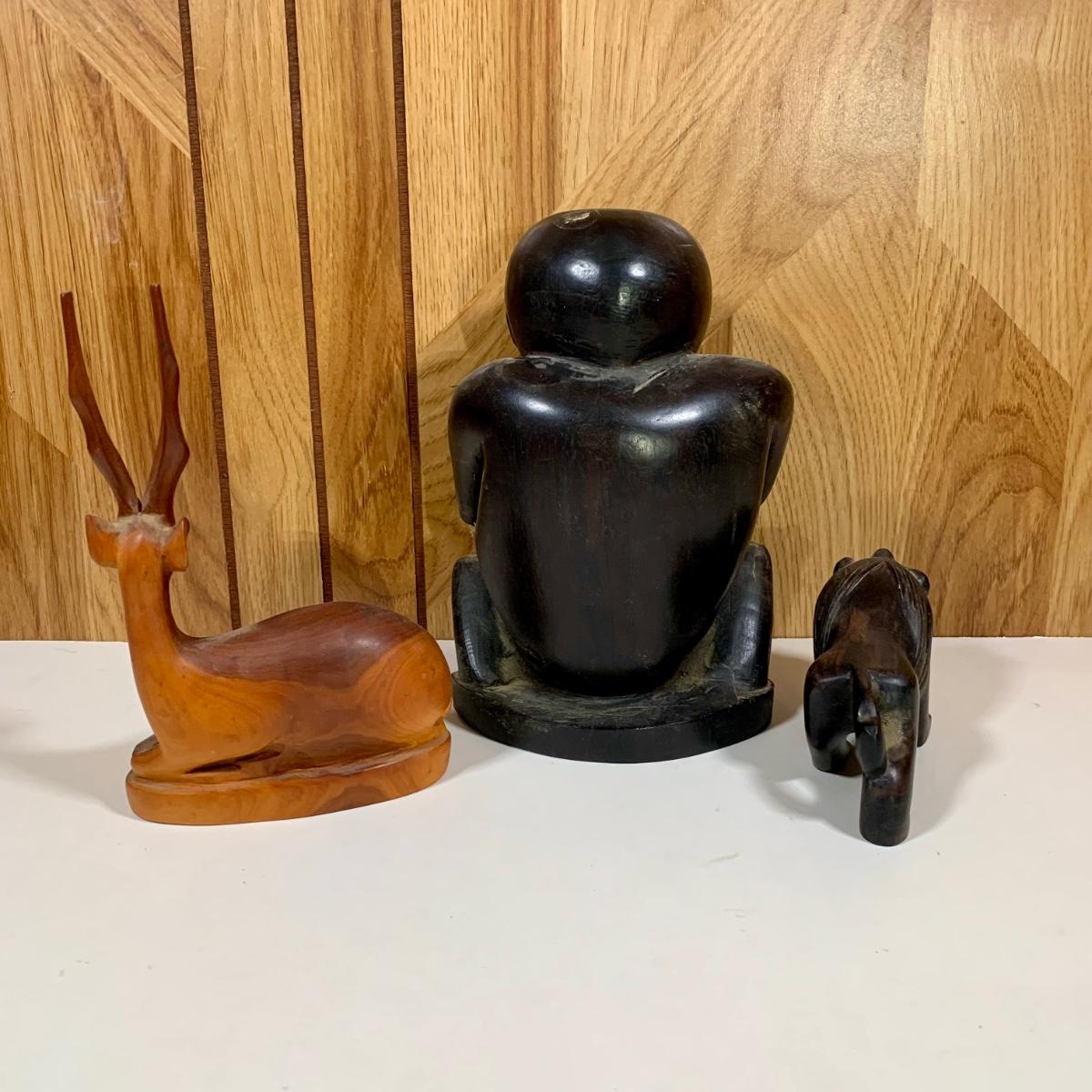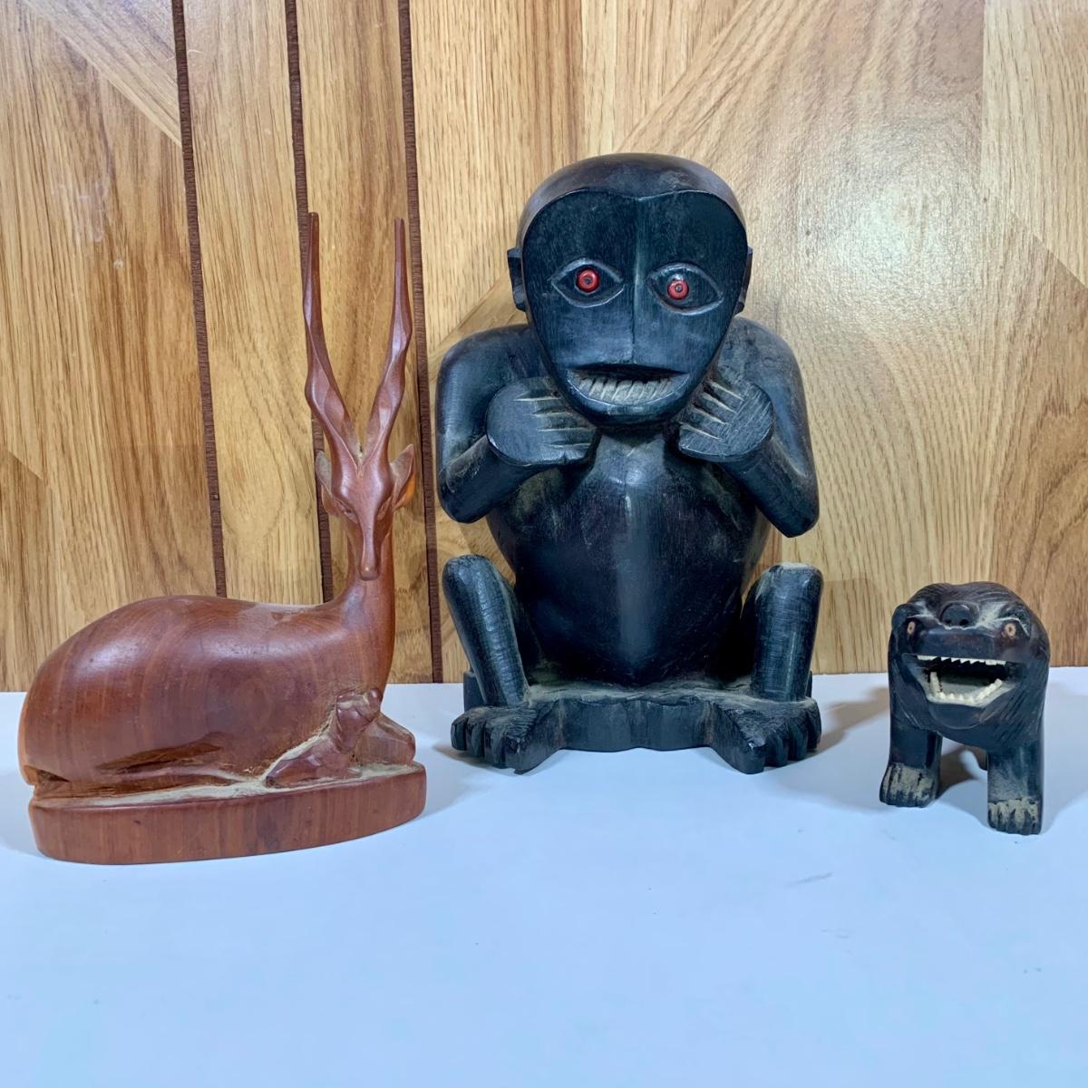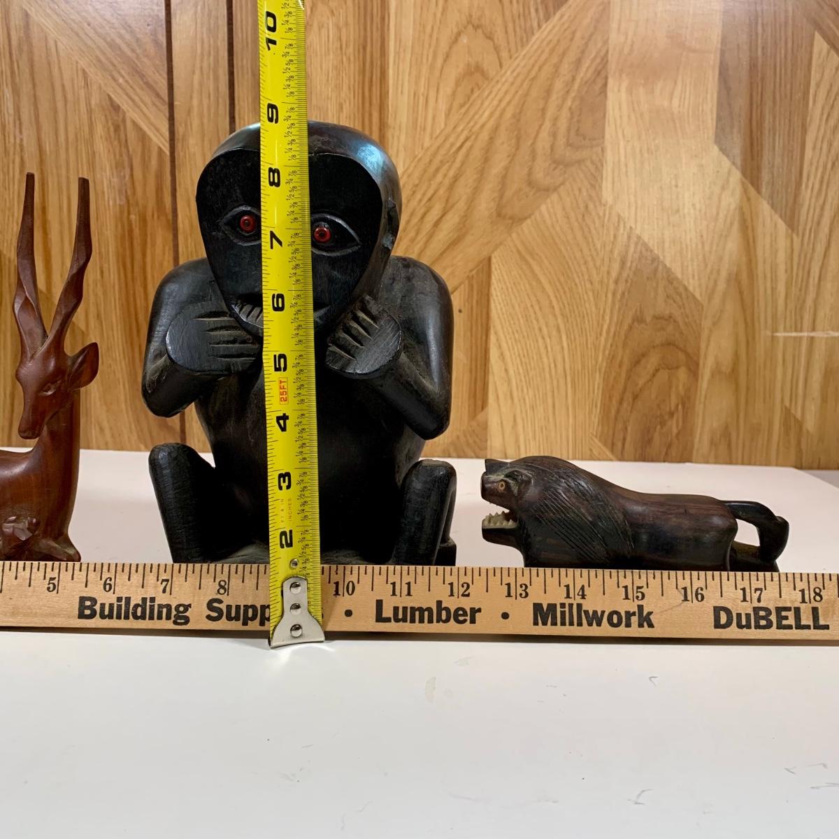 LOT 70: Hand Carved African Folk Art Sculptures, Ebony Wood Monkey & Lion W/ Gazelle