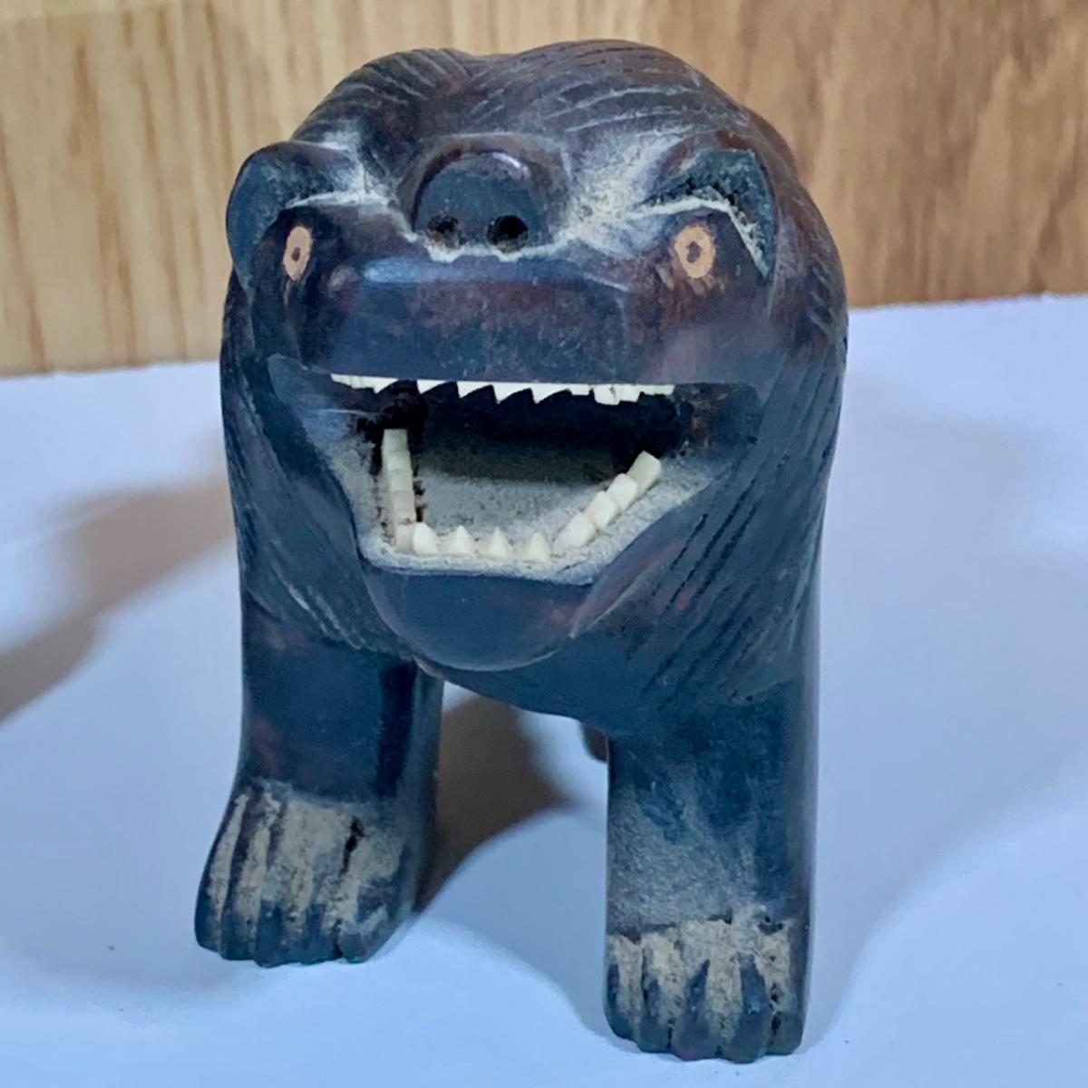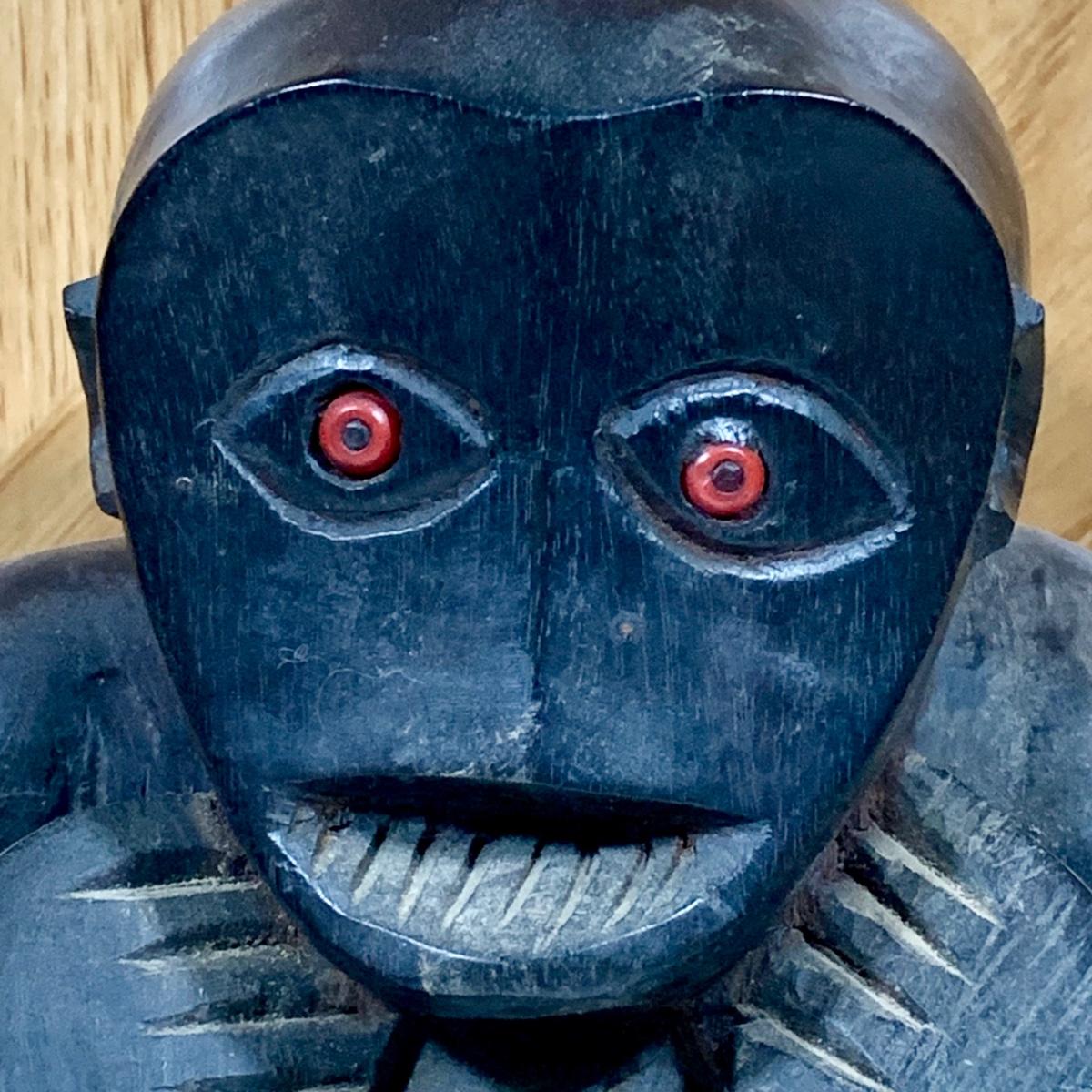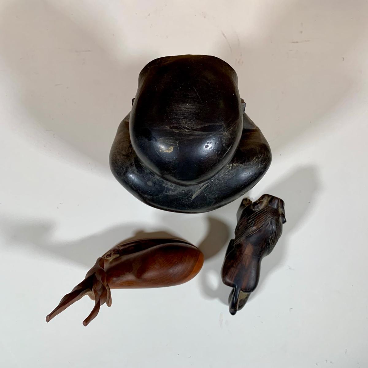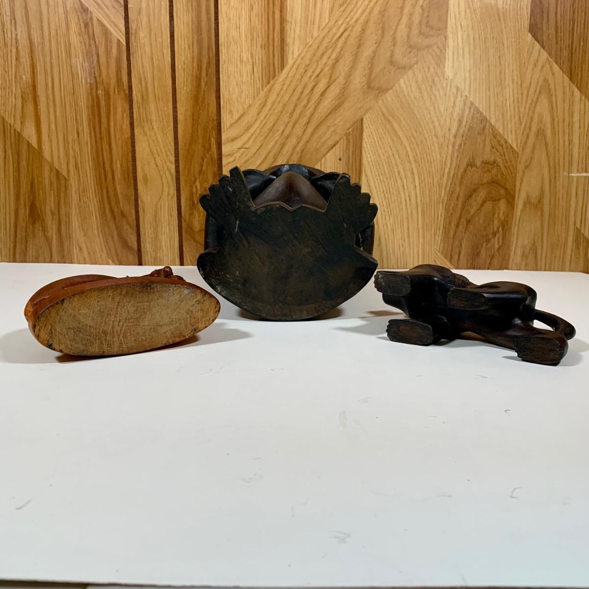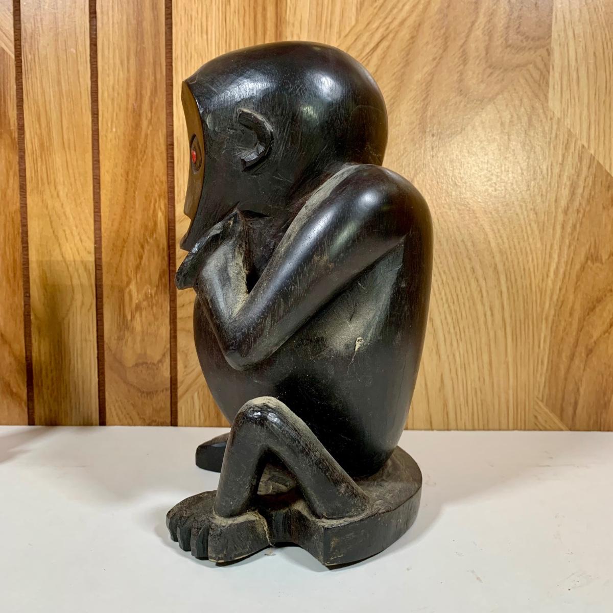 LOT 70: Hand Carved African Folk Art Sculptures, Ebony Wood Monkey & Lion W/ Gazelle