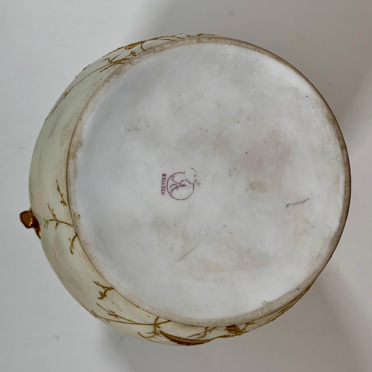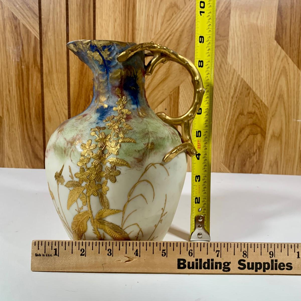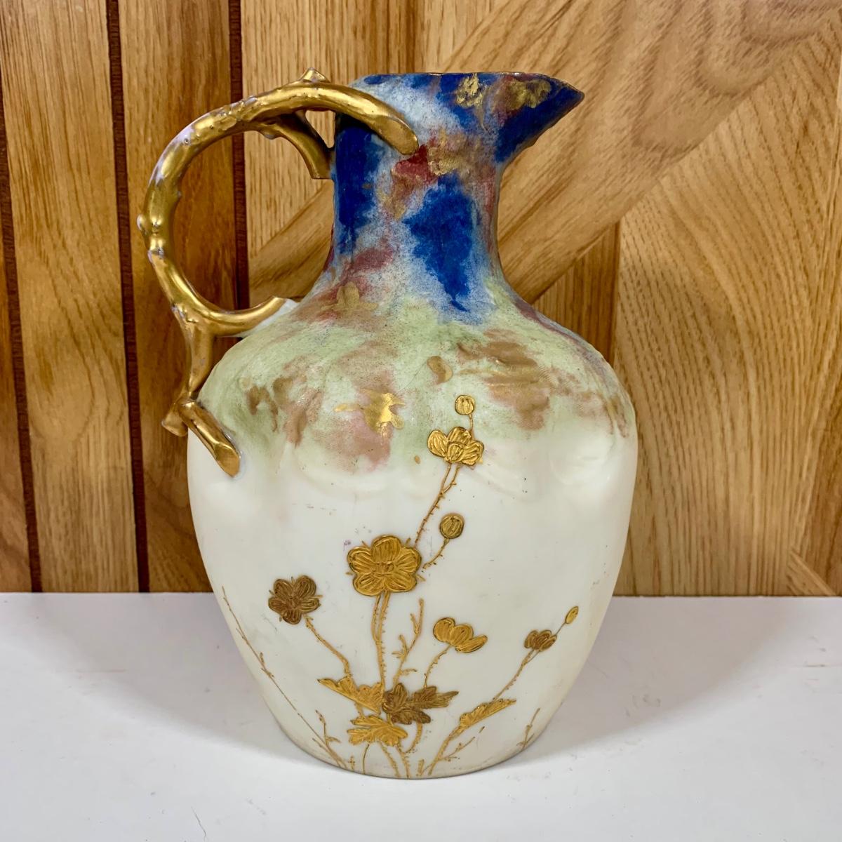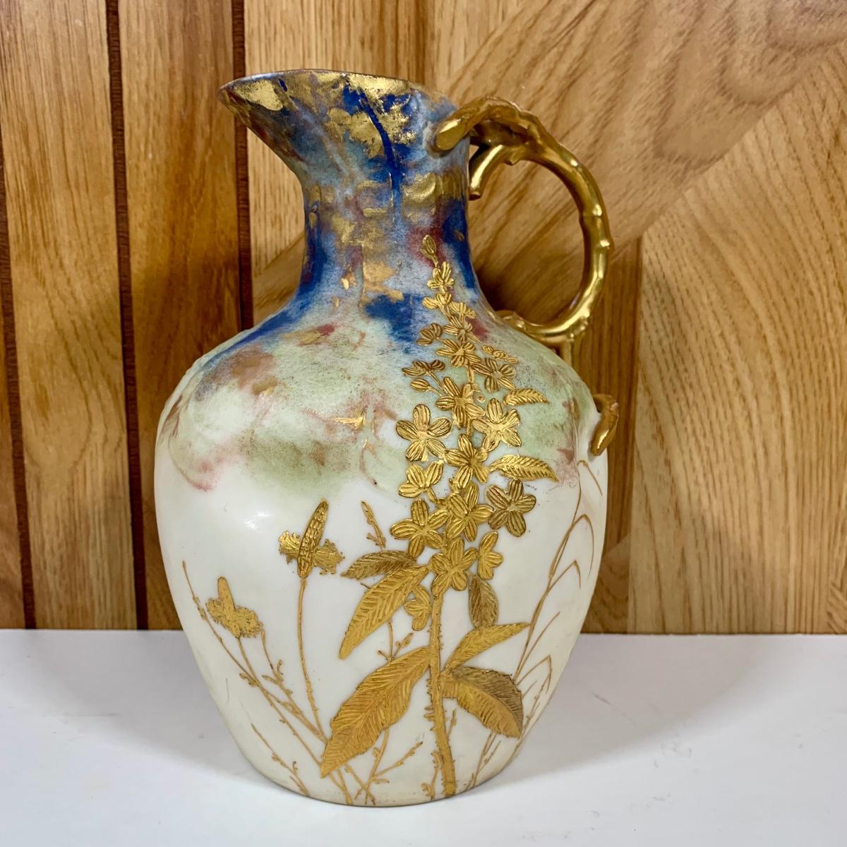 LOT 80: Belleek Hand Painted Blue & Gold Floral Pitcher
