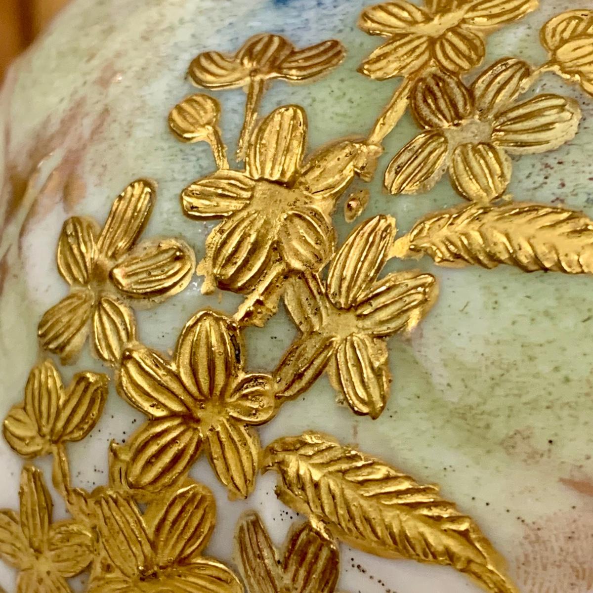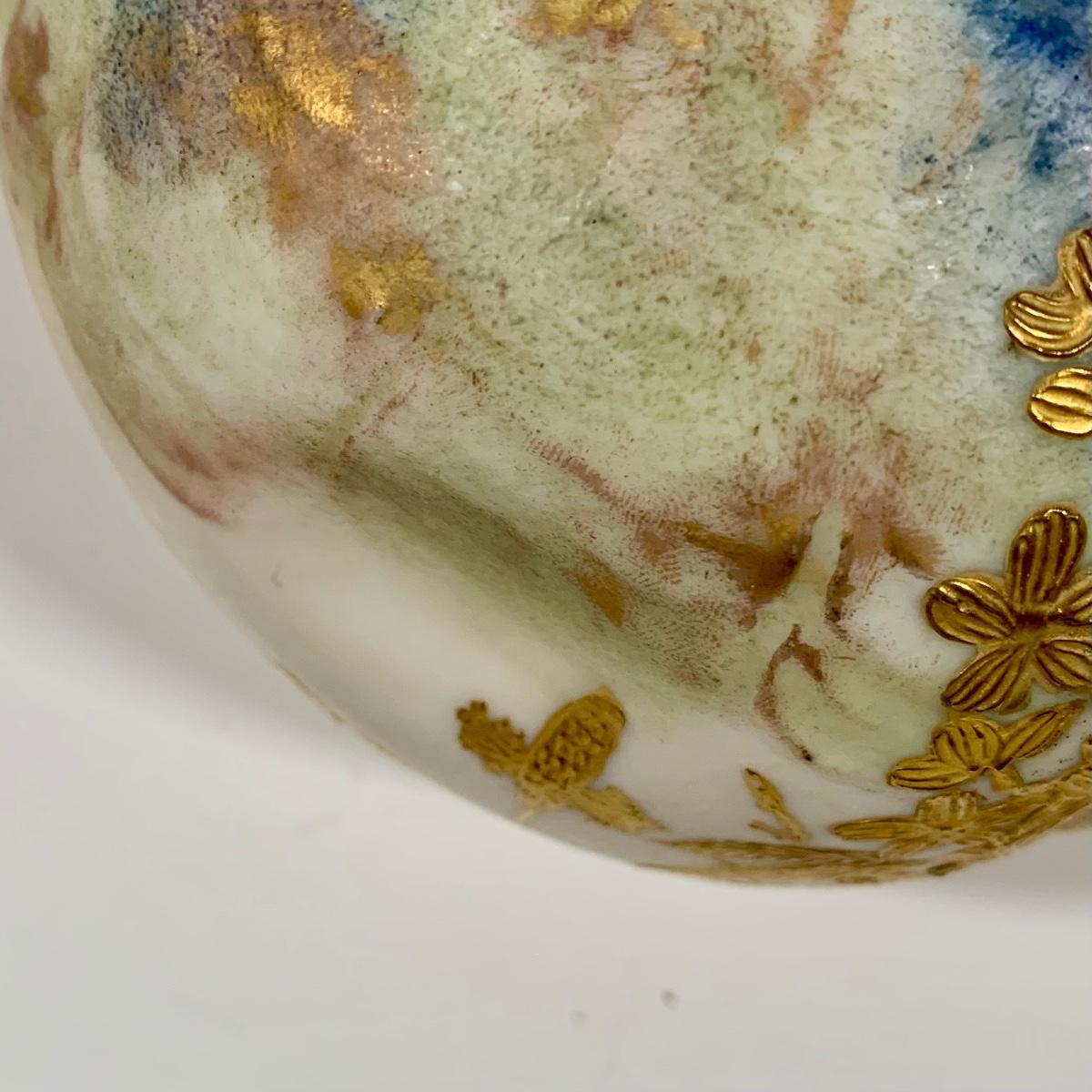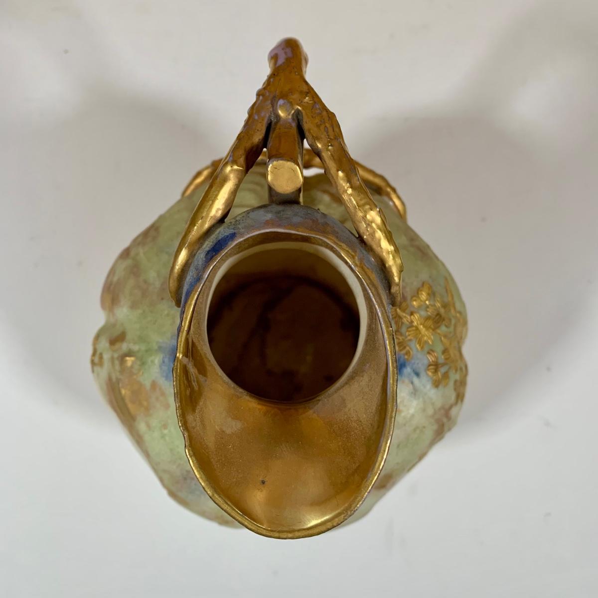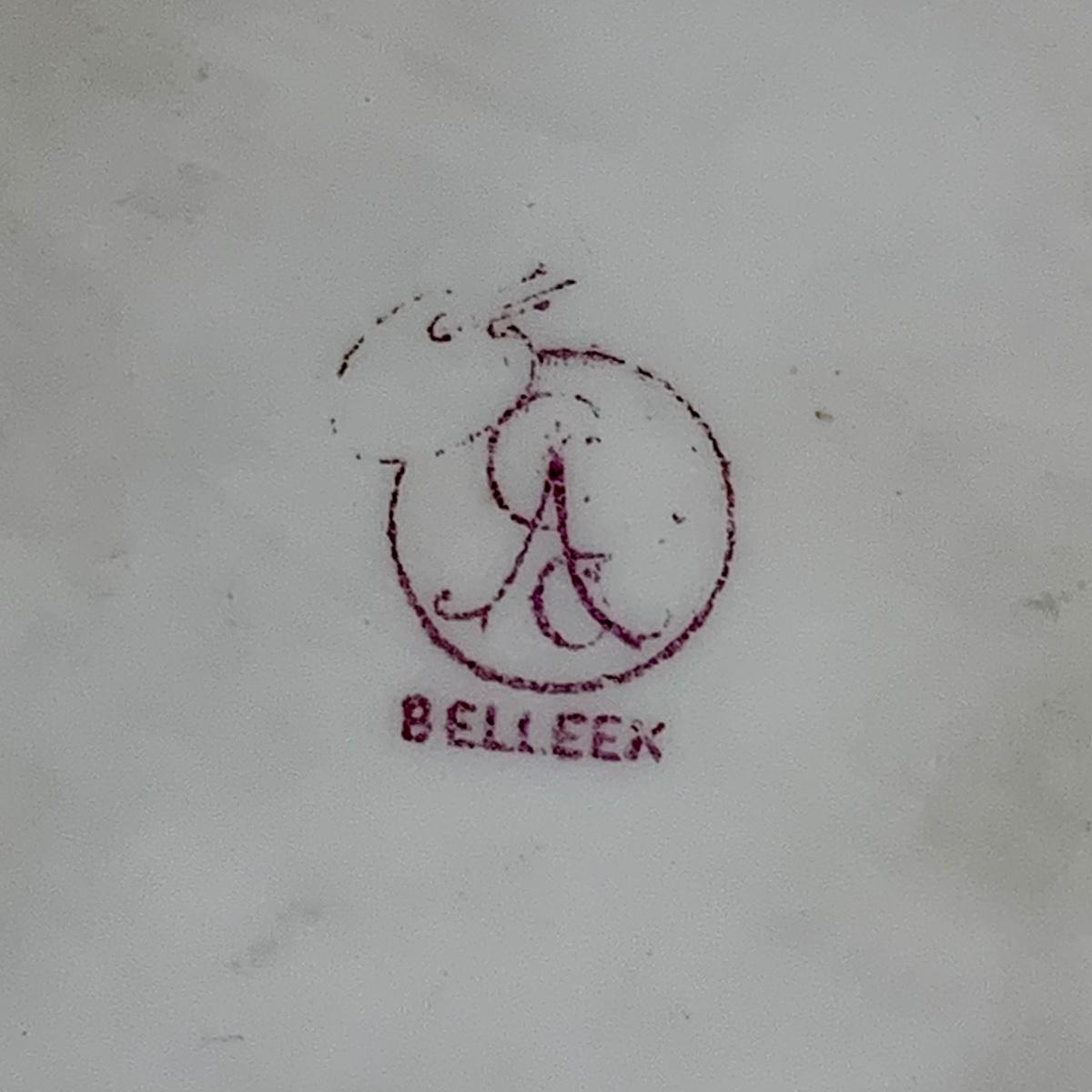 LOT 80: Belleek Hand Painted Blue & Gold Floral Pitcher