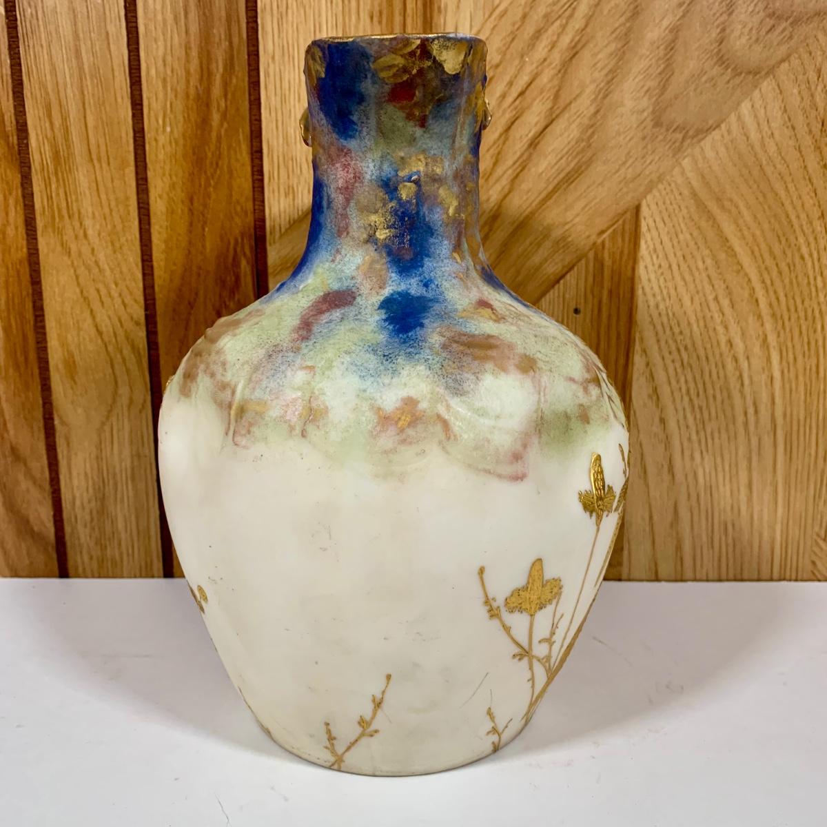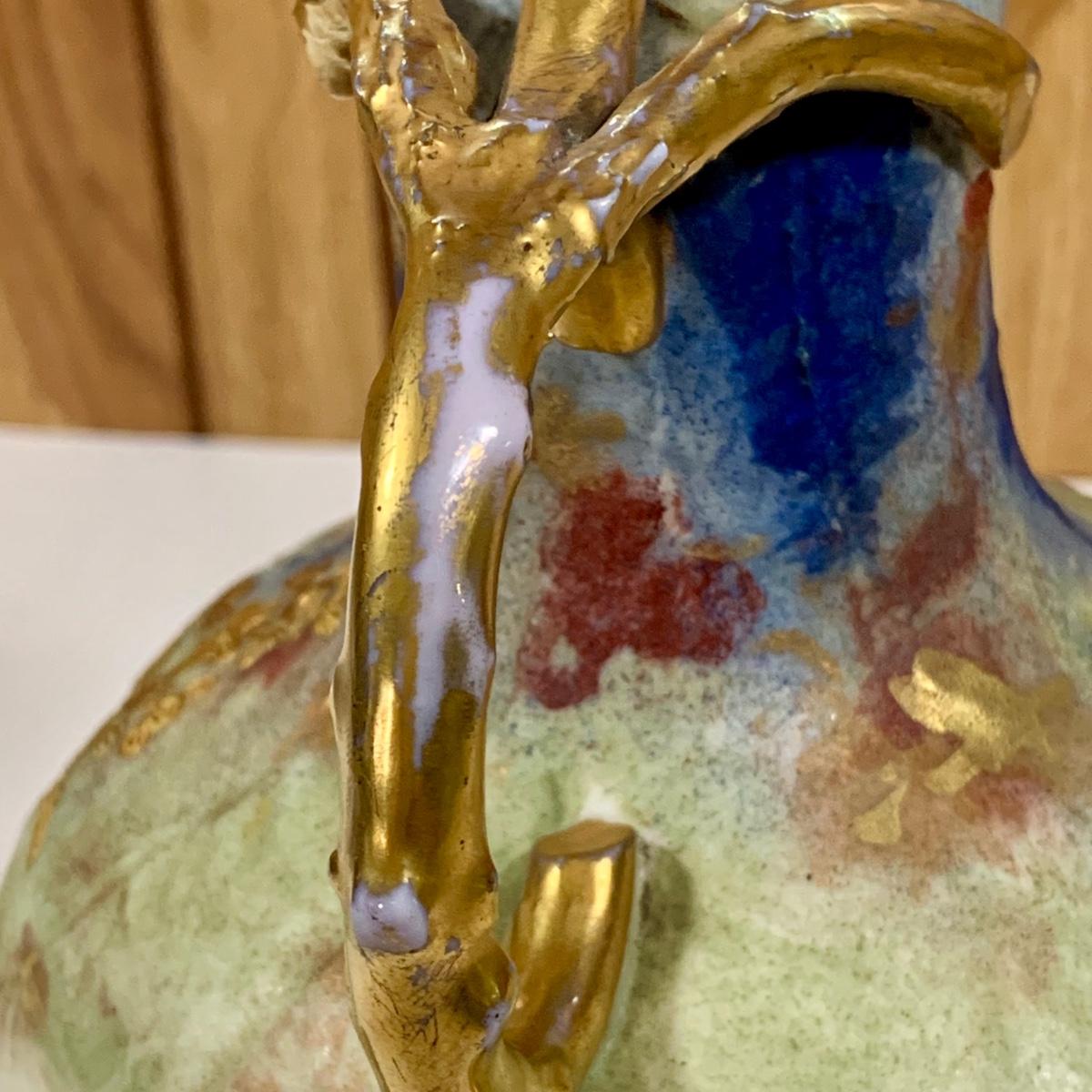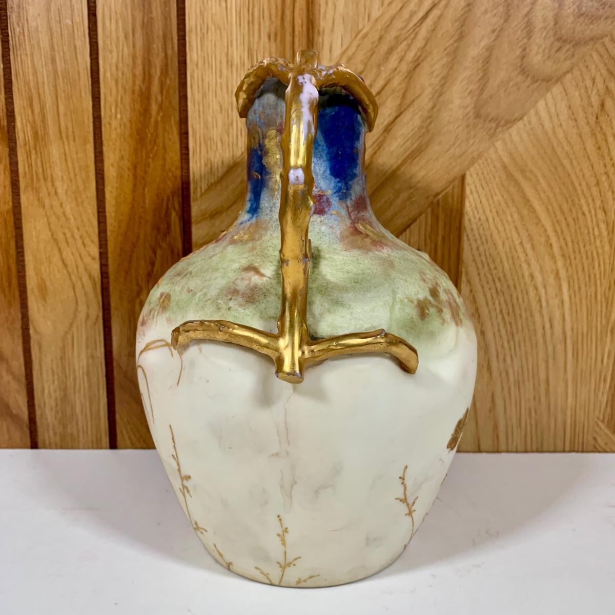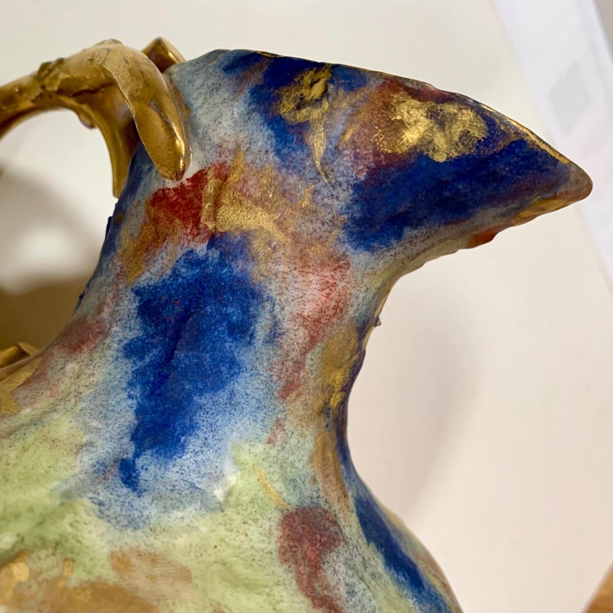 LOT 80: Belleek Hand Painted Blue & Gold Floral Pitcher