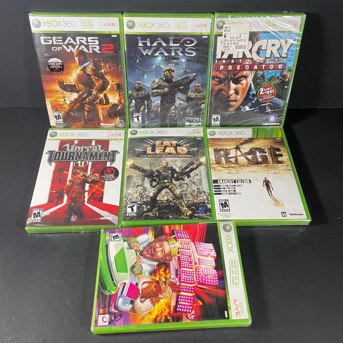LOT 91: Sealed Xbox 360 Video Games - Halo Wars, Eat Lead, Farcry & More