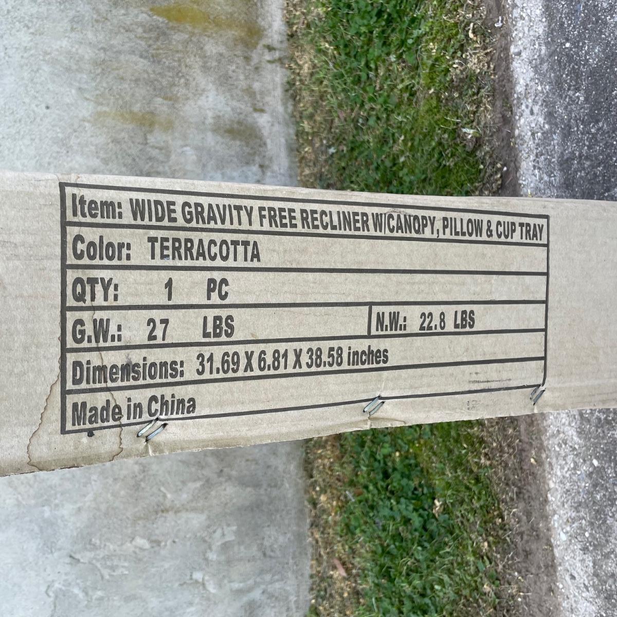 LOT 103: Wide Gravity Free Recliner, w/ Canopy, Pillow & Cup Tray