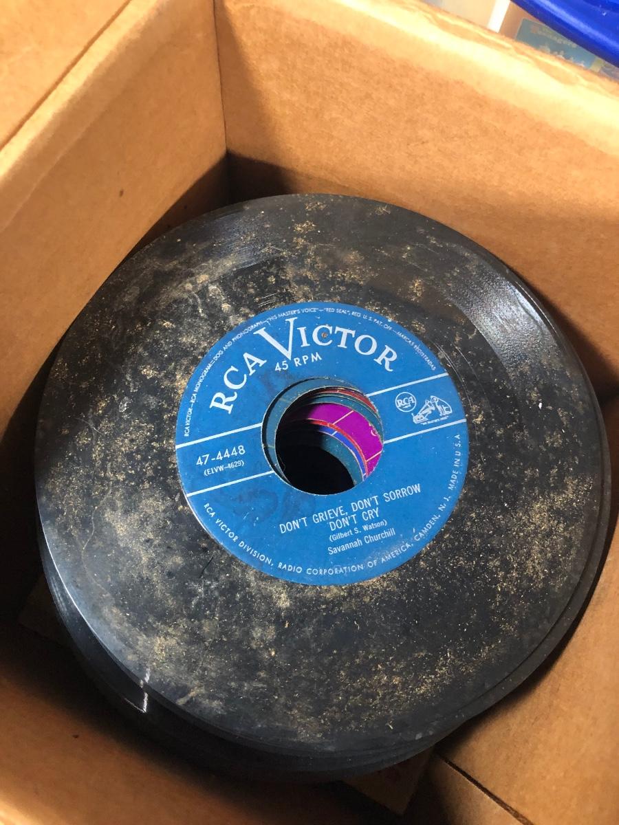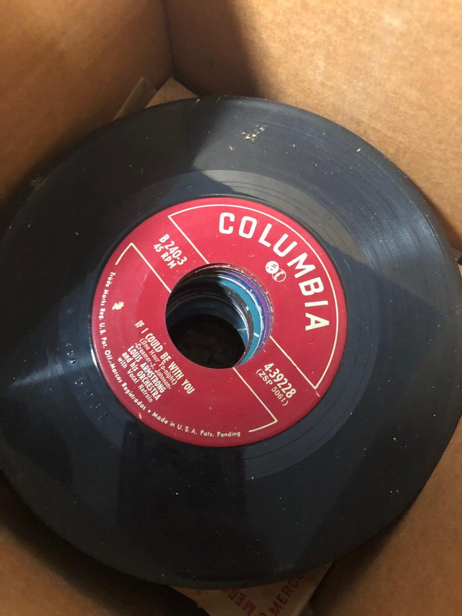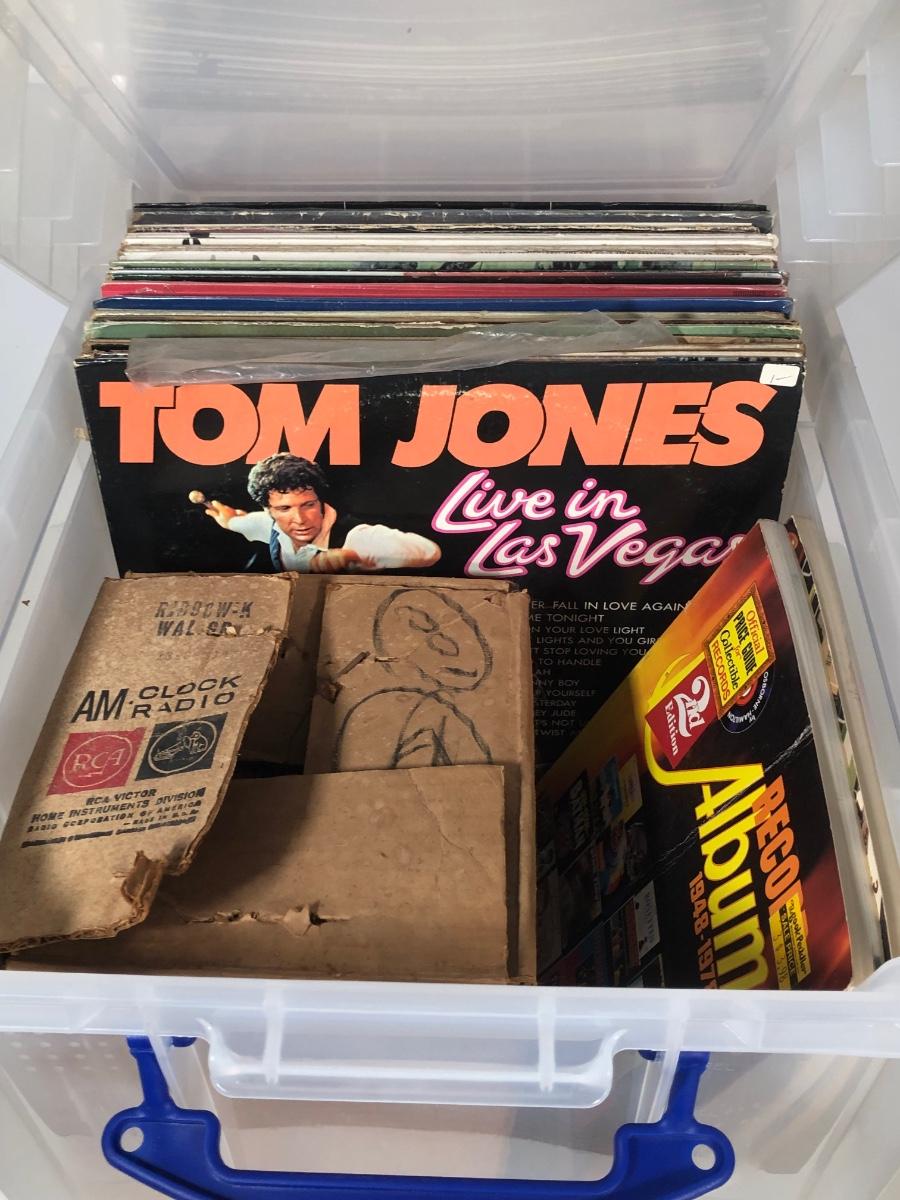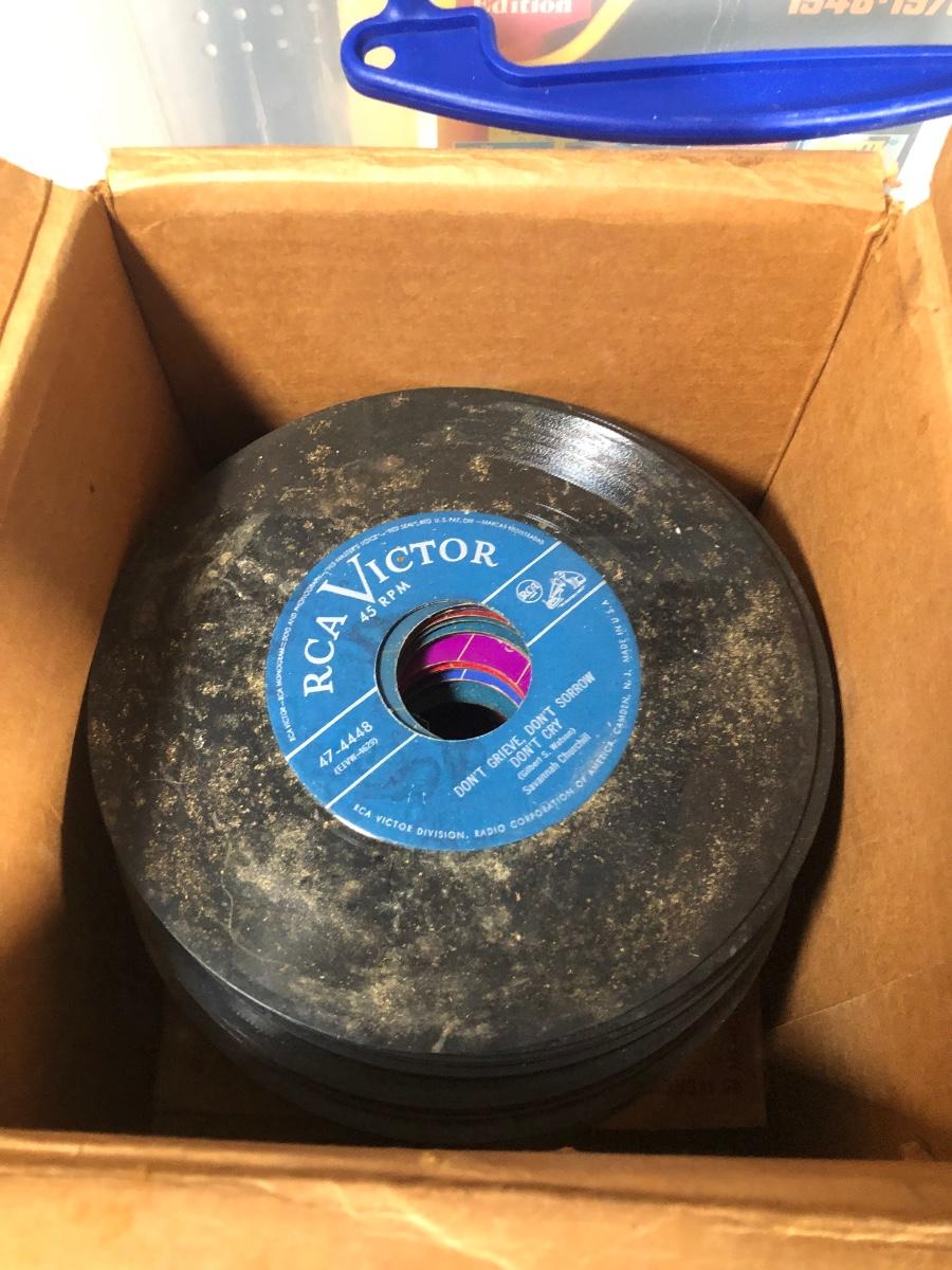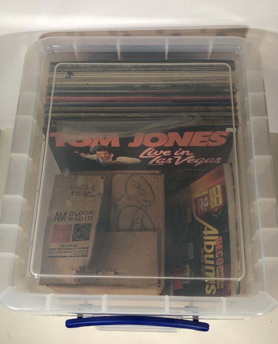 LOT 190: Plastic Record Tote w/ Vinyl Records & 45s