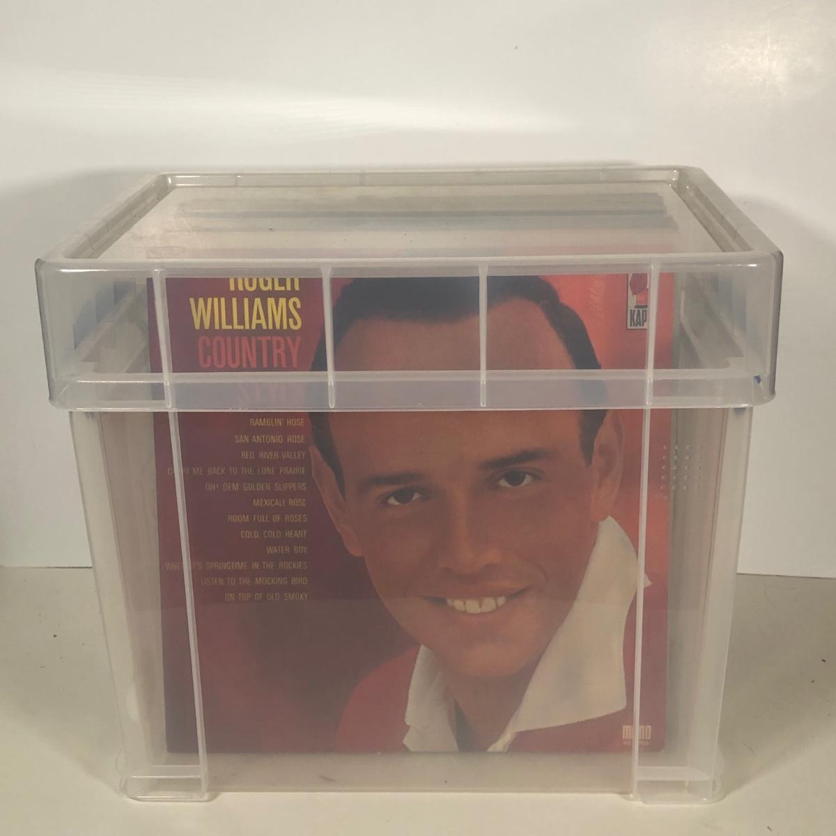 LOT 197: Plastic Record Tote w/ Vinyl Records