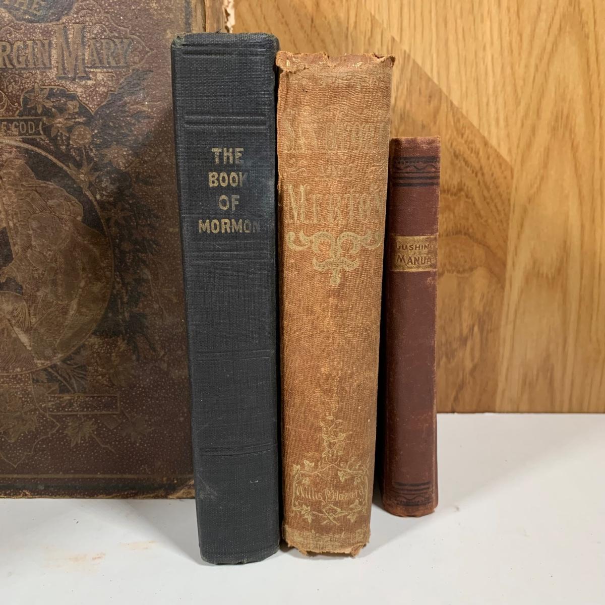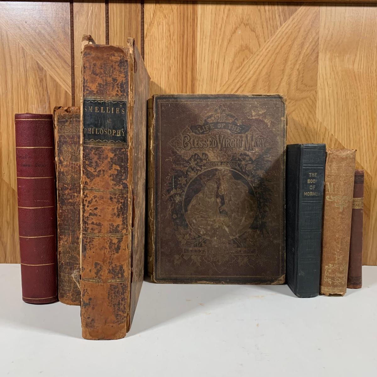 LOT 232: Antique Books: "The Philosophy Of Natural History" by William Smellie, "The Life Of The Blessed Virgin Mary", 1920 "The Book Of Mormon", & More