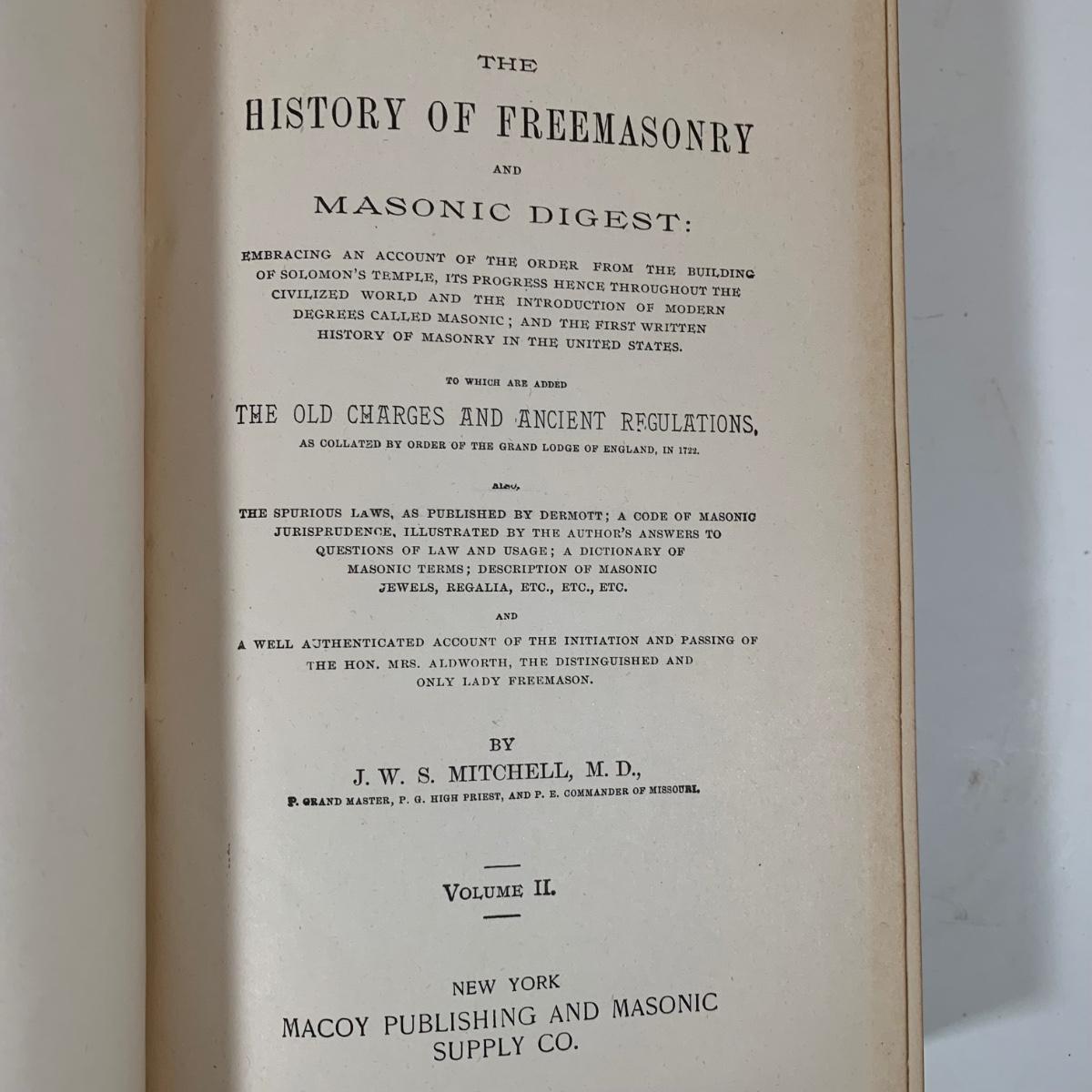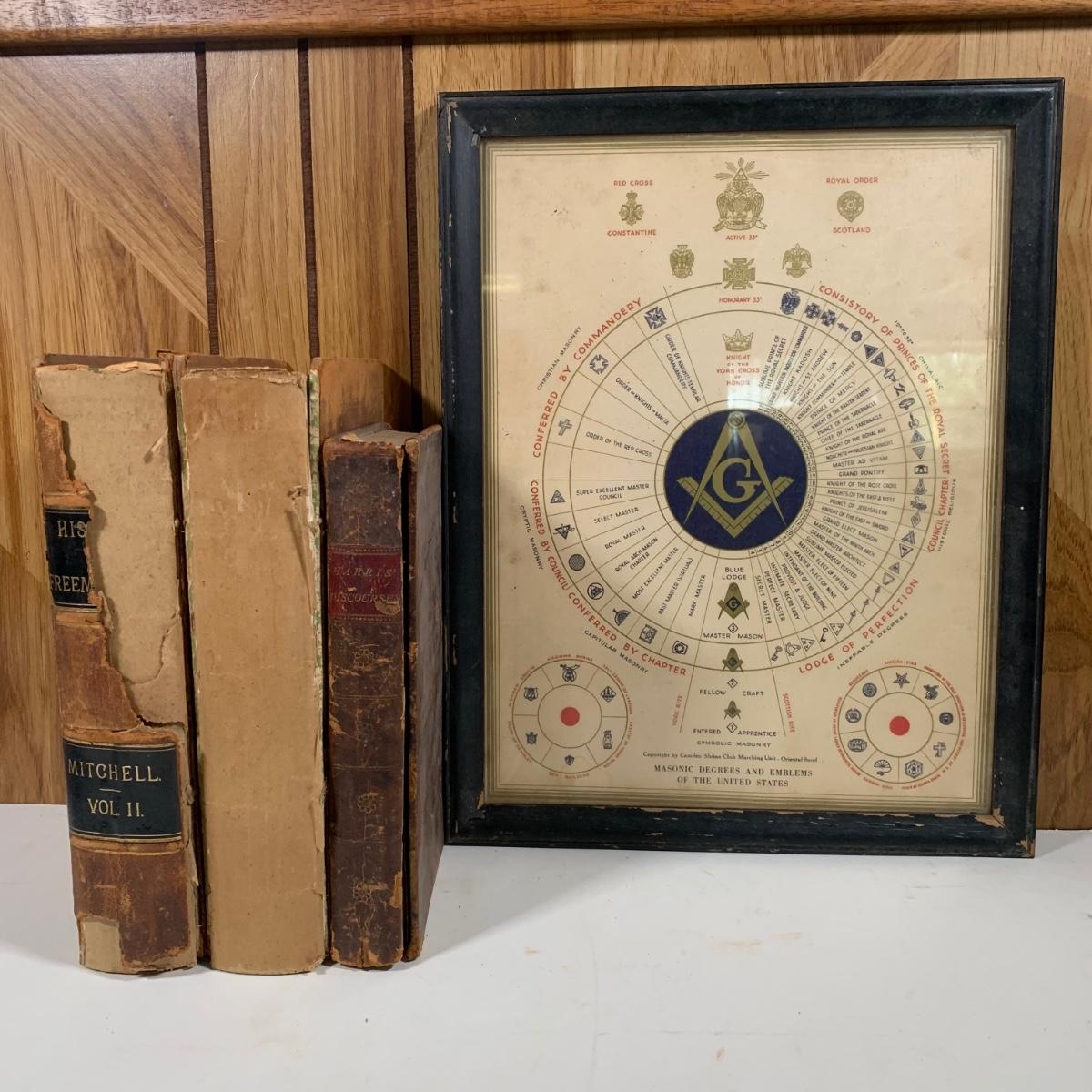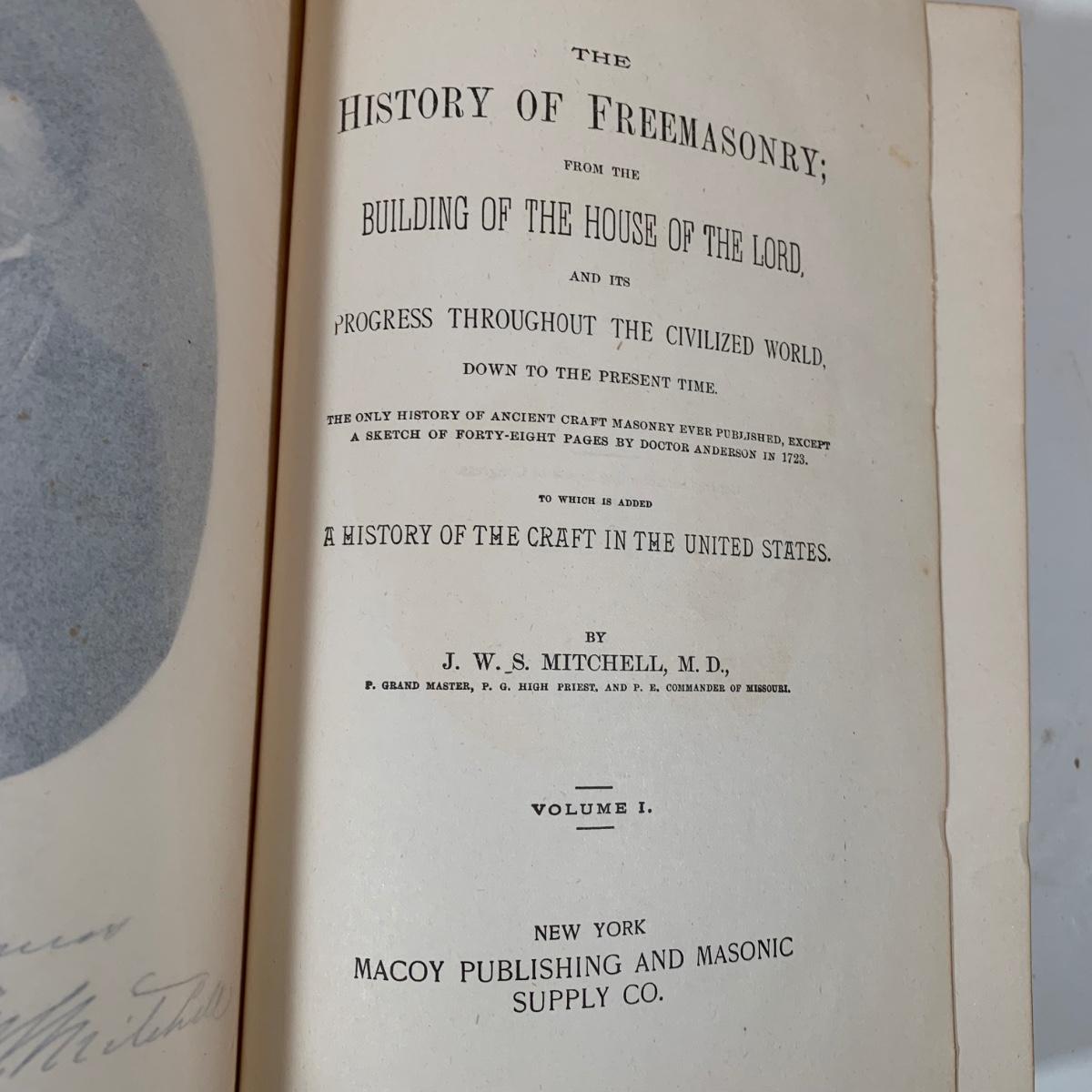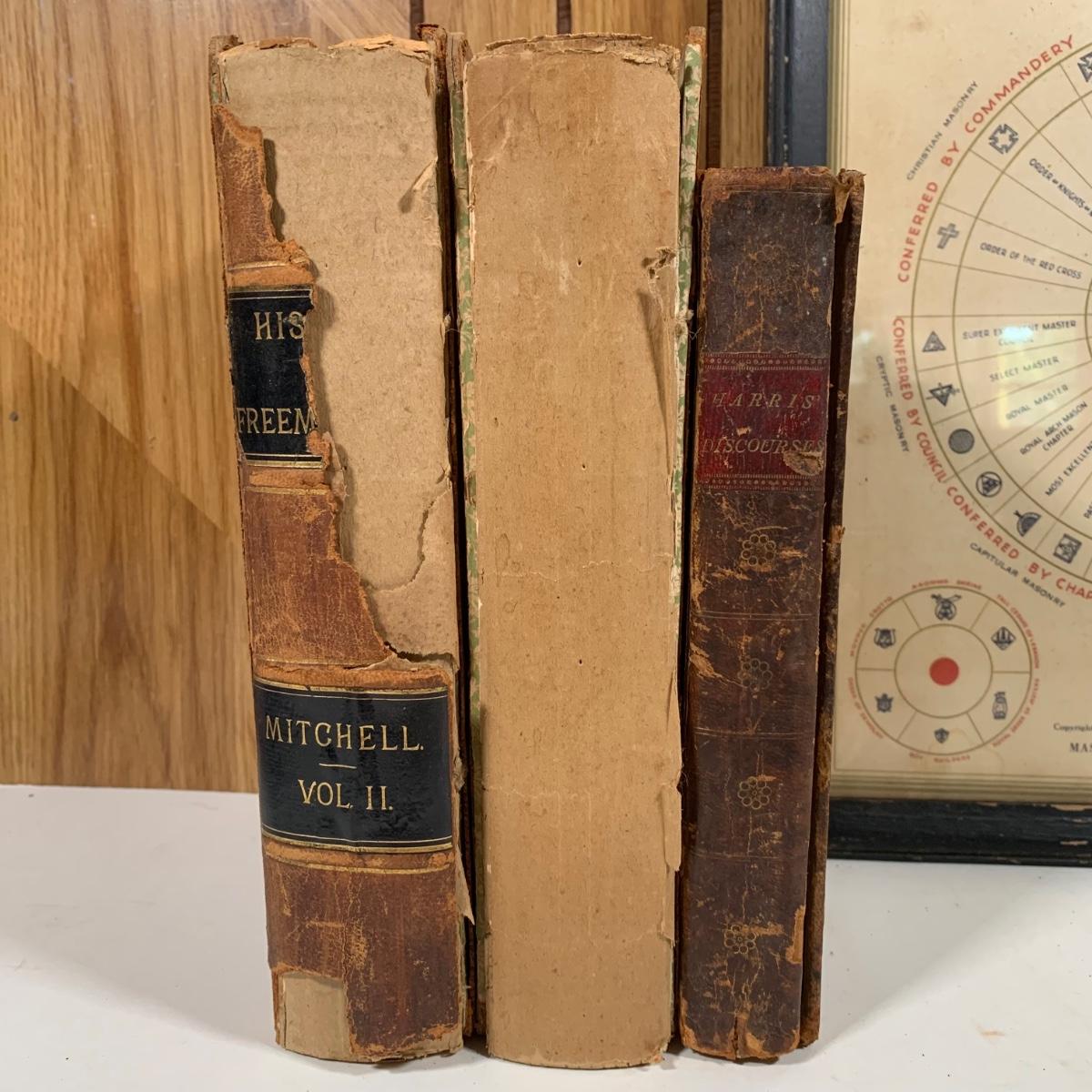LOT 233: Antique Masonic Temple Collection: "The History Of Freemasonry" Vol. 1 & 2 by J. W. S. Mitchell, & Free Masonry by Thaddeus Mason Harris & More