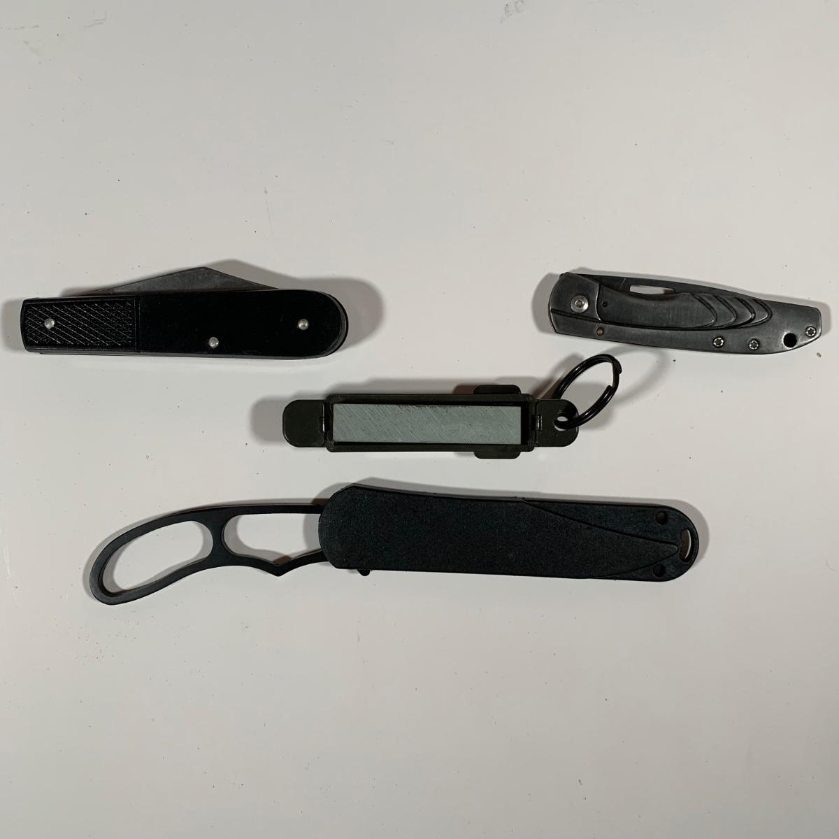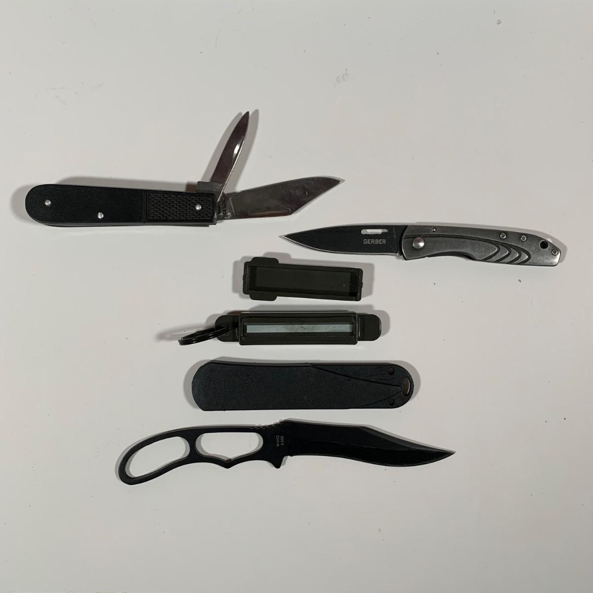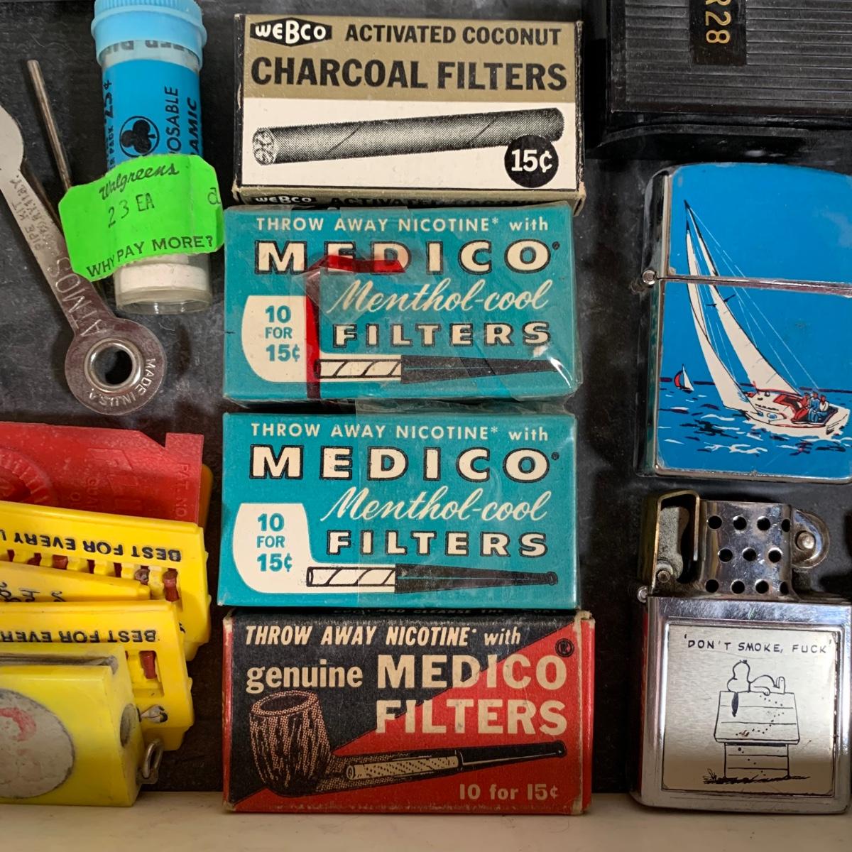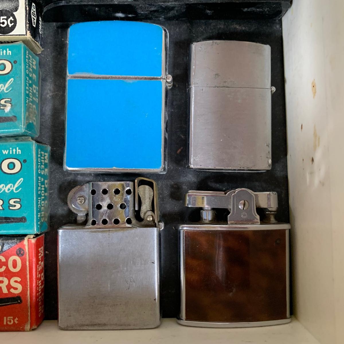 LOT 234: Vintage Sharp Smoke Collection: Pocket Knives, Lighters, Flint, Filters, & Pocket Sharpener