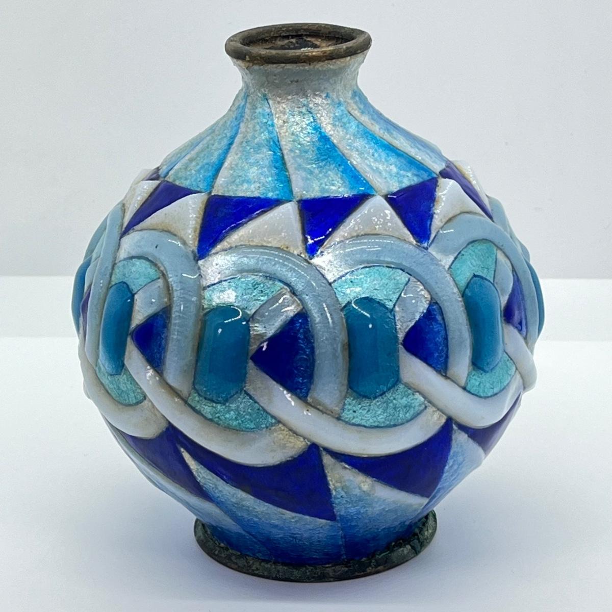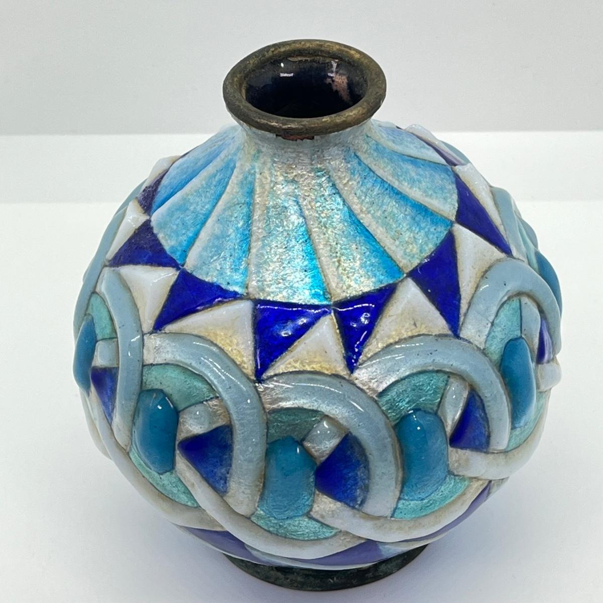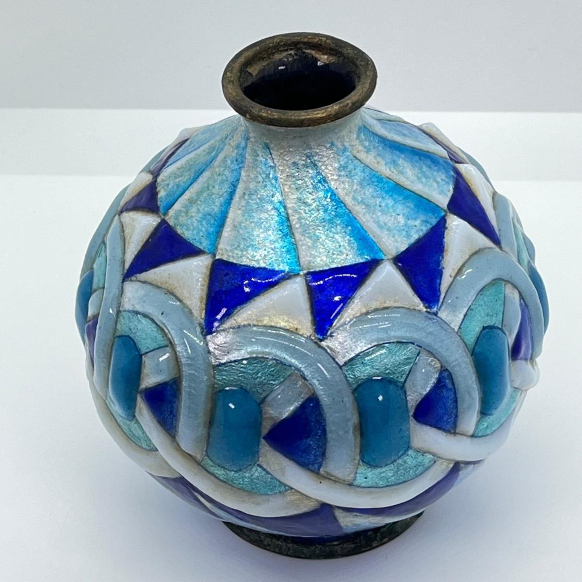 LOT 241: Beautiful Vintage / Antique Art Deco Enamel over Copper Vase - Possibly by Camille Faure Limoges France