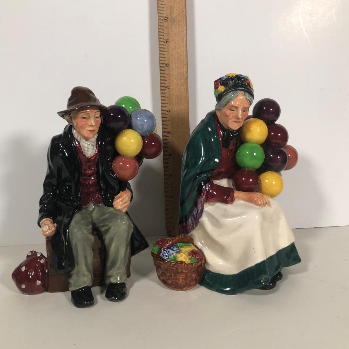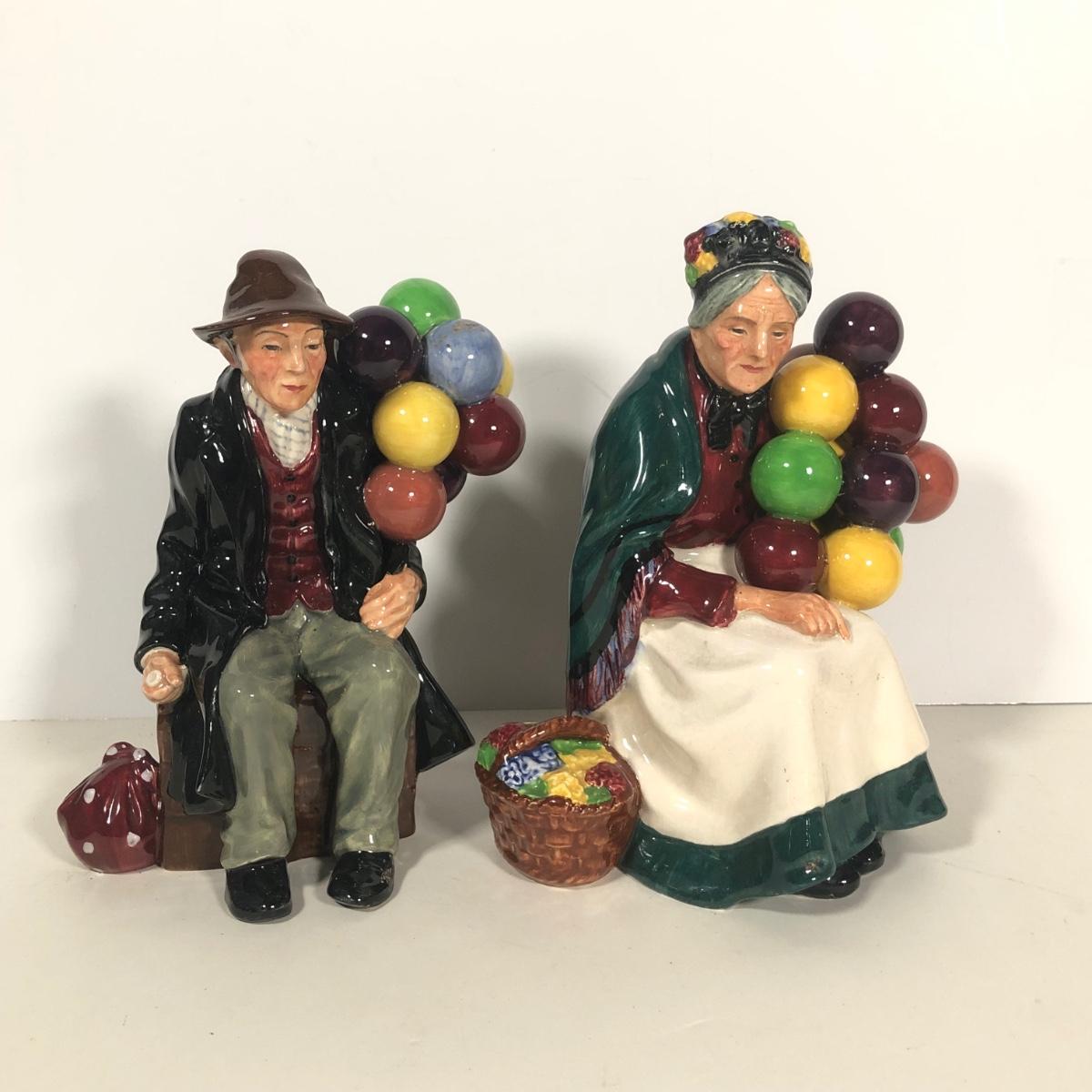 LOT 261: Vintage Royal Doulton Balloon Figurines - The Old Balloon Seller HN1315 & The Balloon Man HN1954