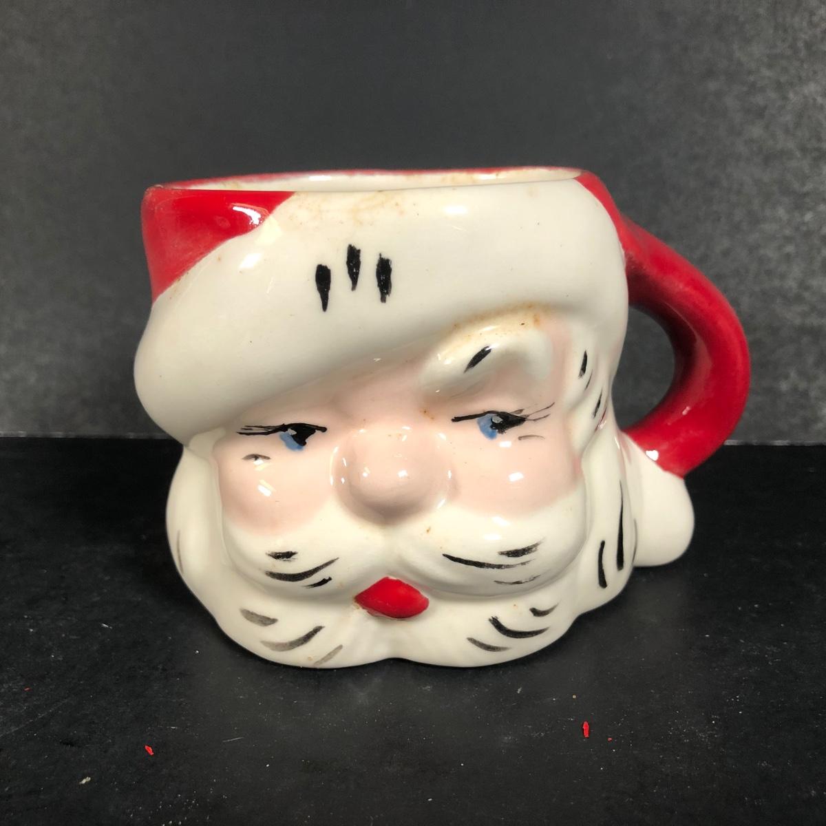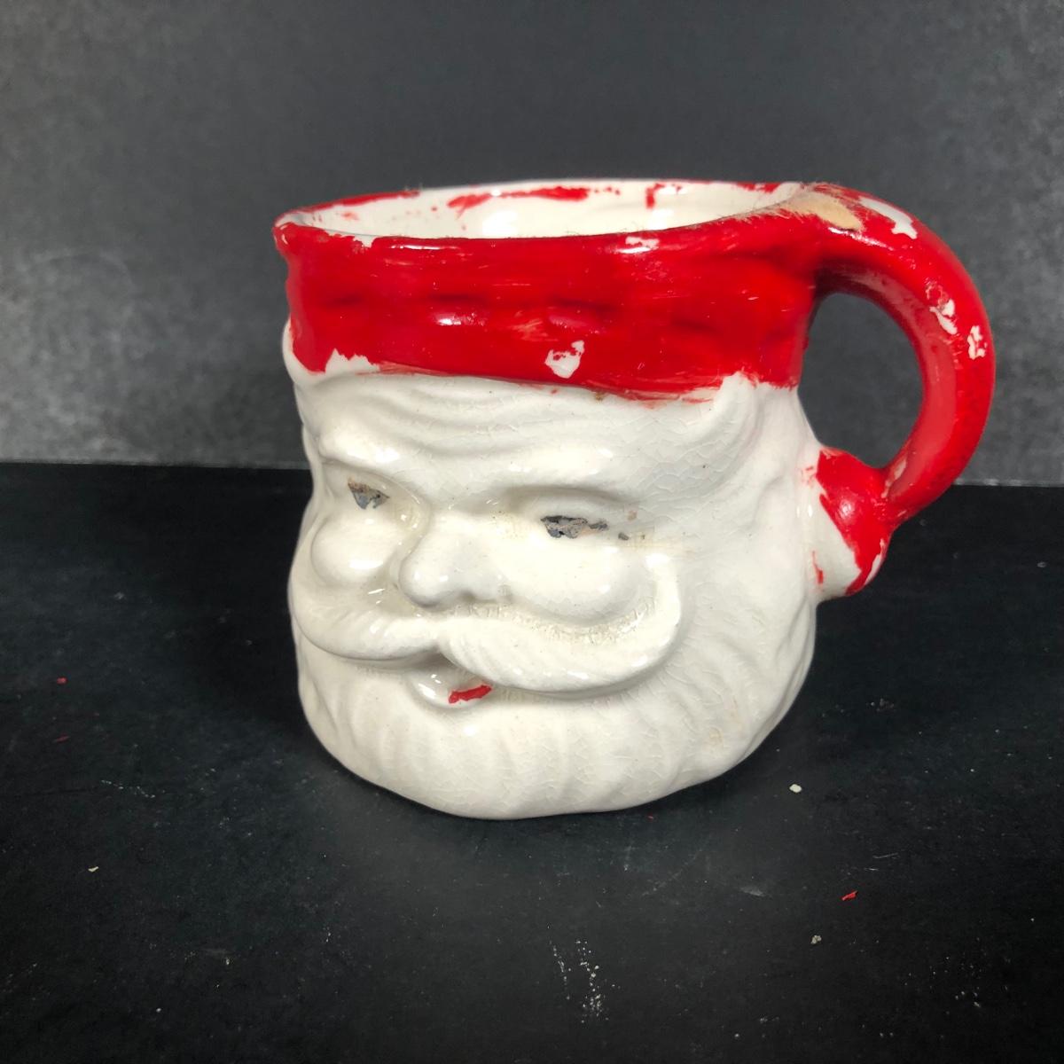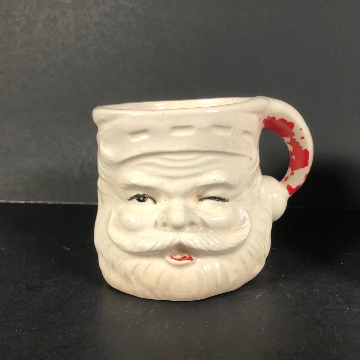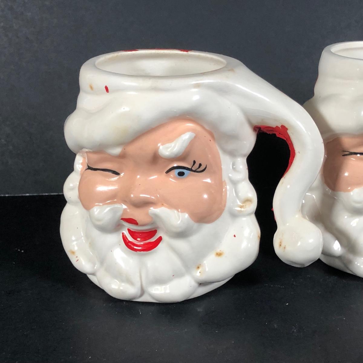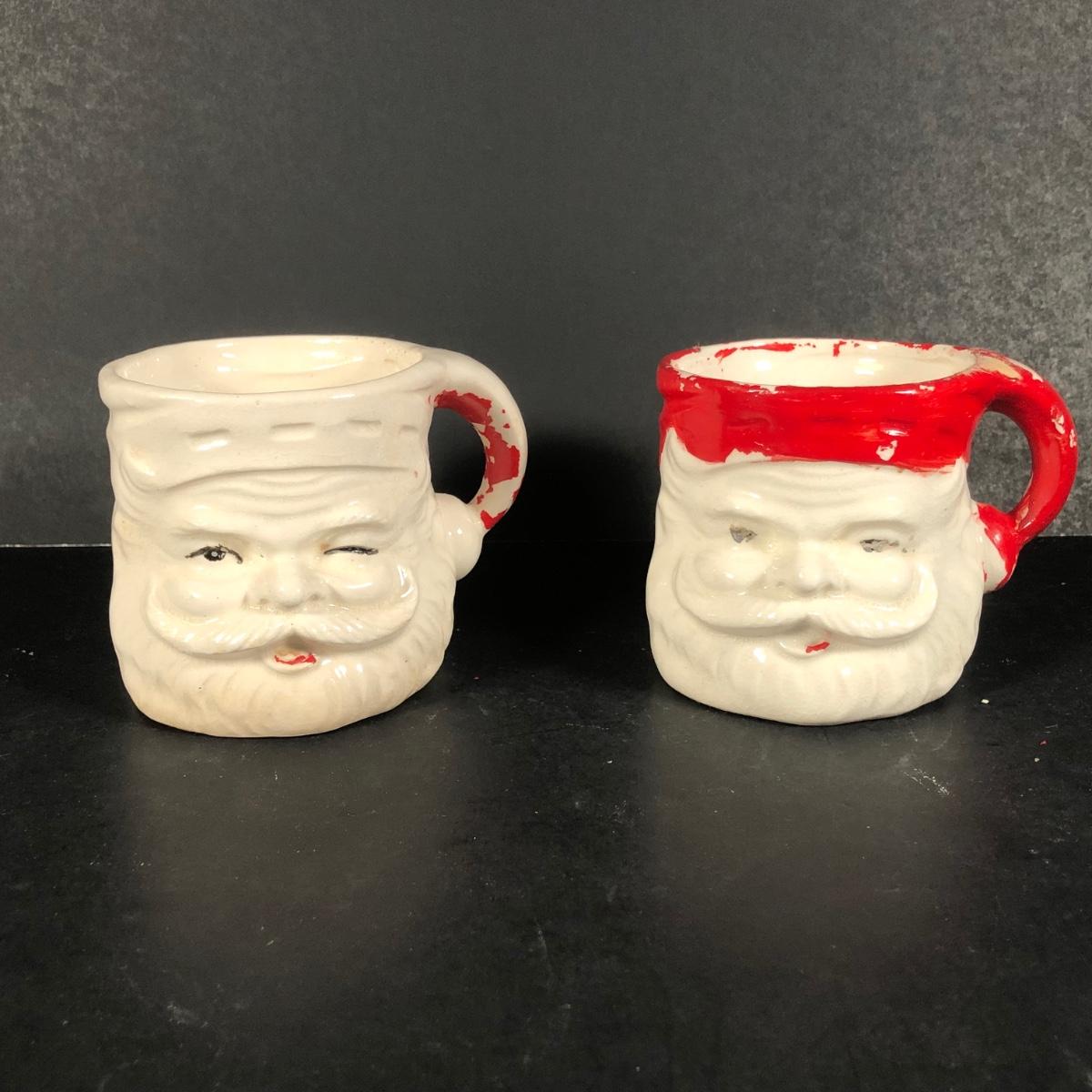 LOT 262: Vintage Santa Head Mugs & Christmas Rocking Horse Coin Bank
