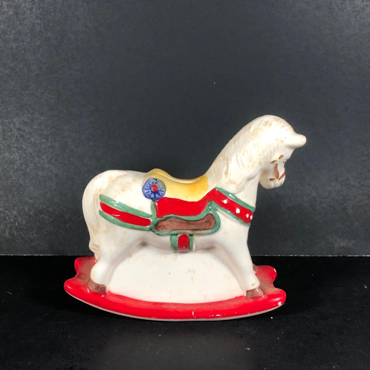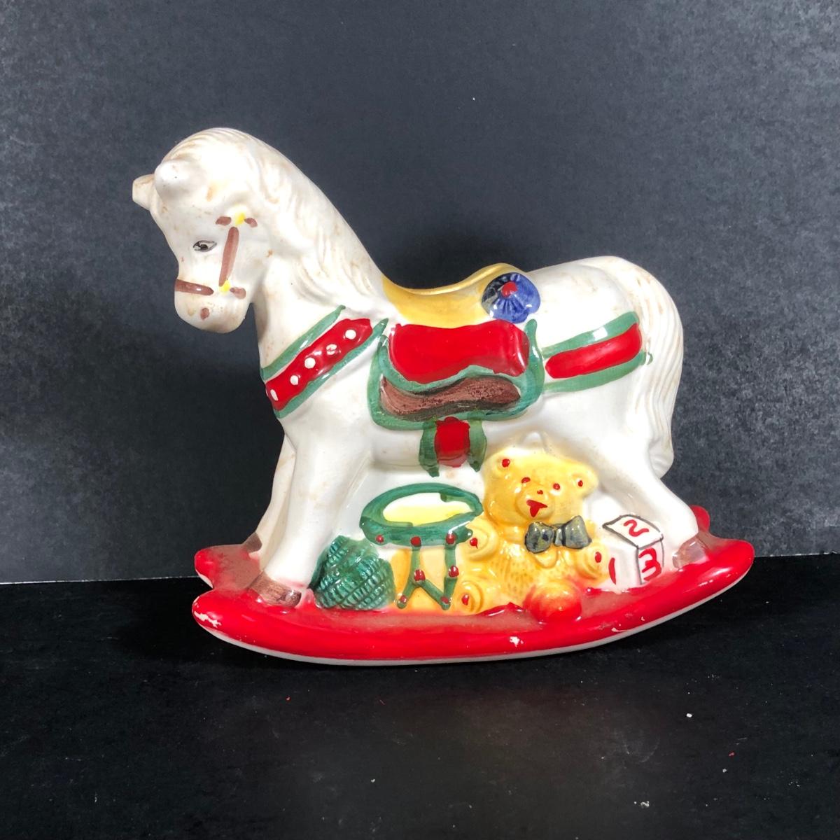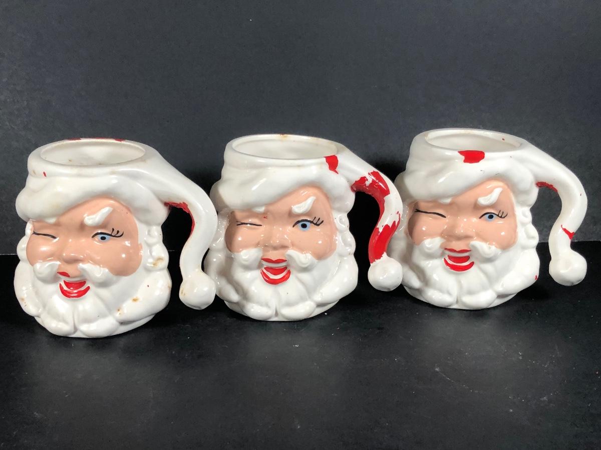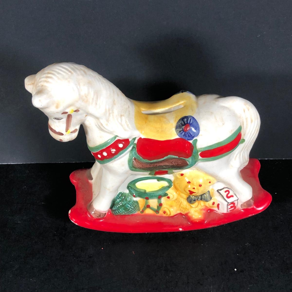 LOT 262: Vintage Santa Head Mugs & Christmas Rocking Horse Coin Bank
