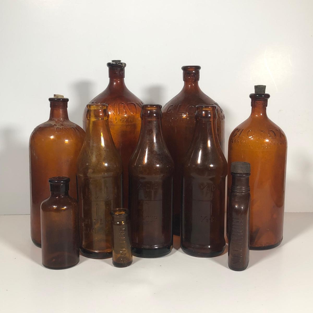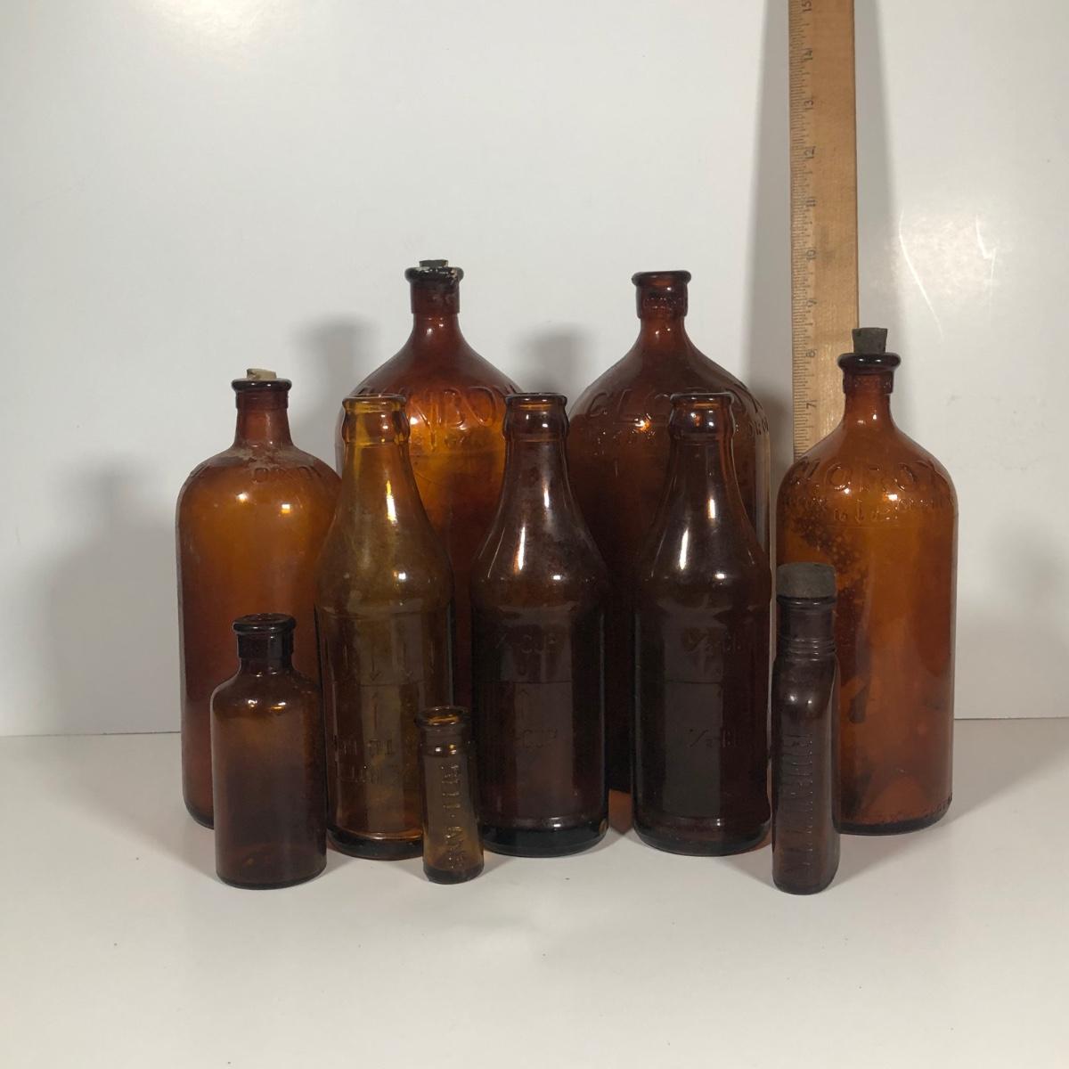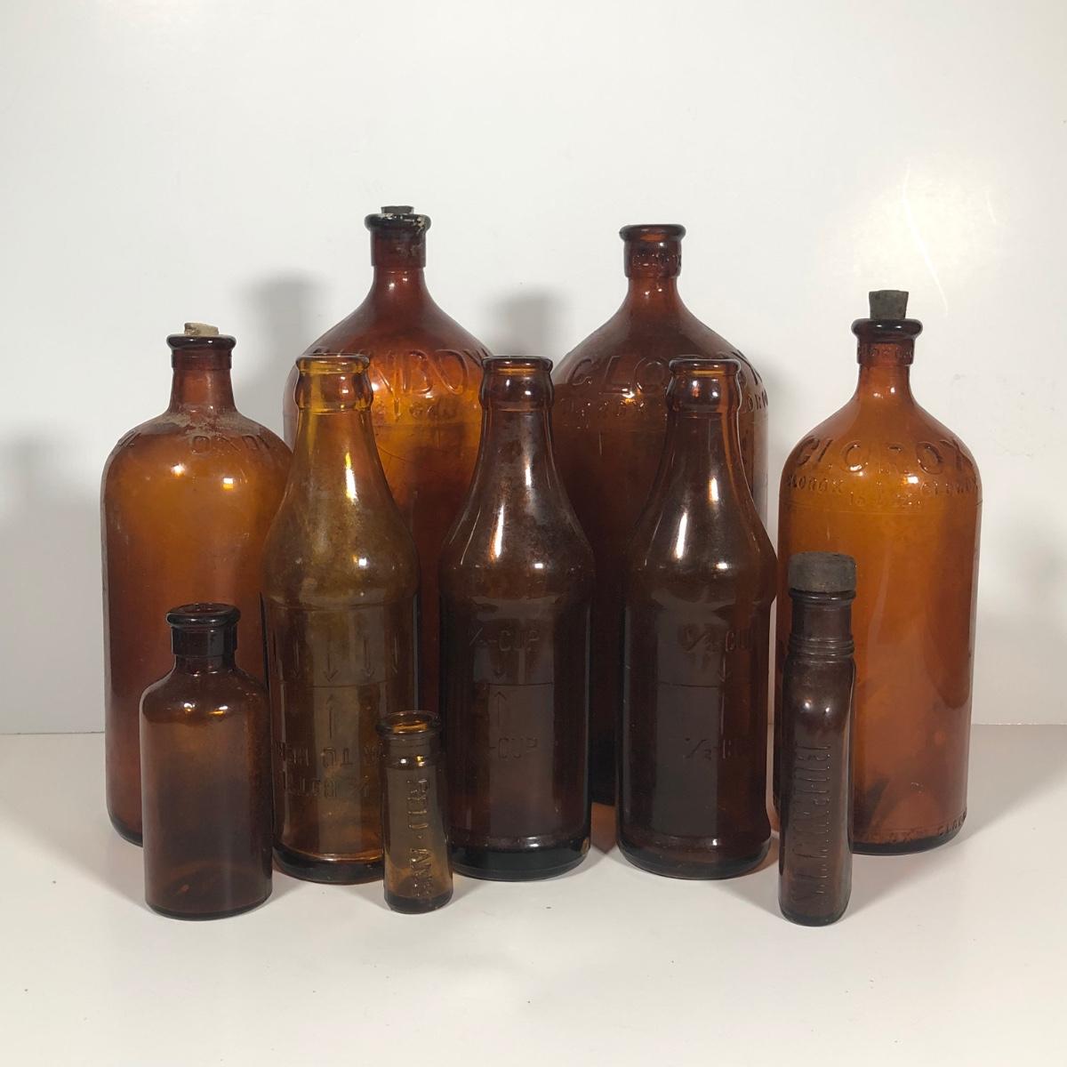 LOT 267: Vintage Brown Glass Bleach Bottles & More