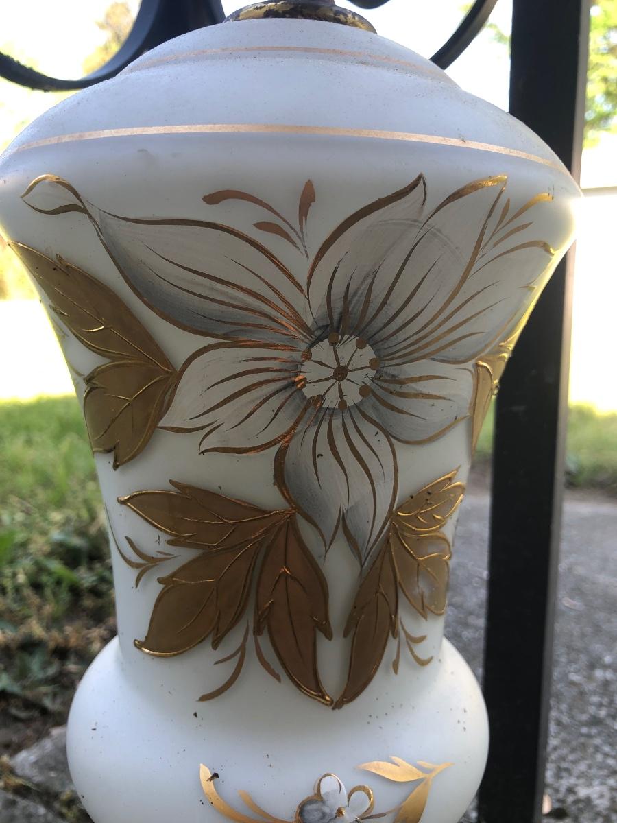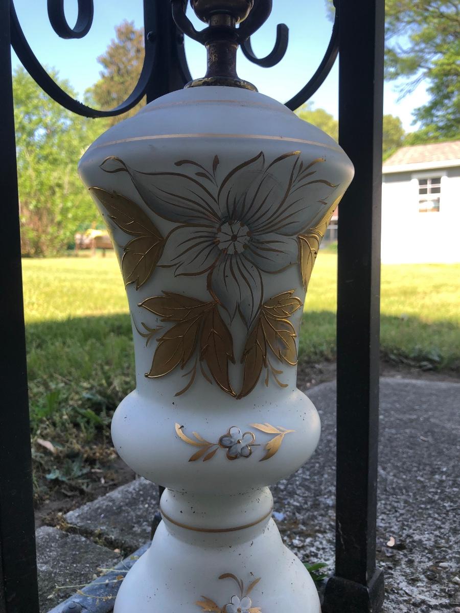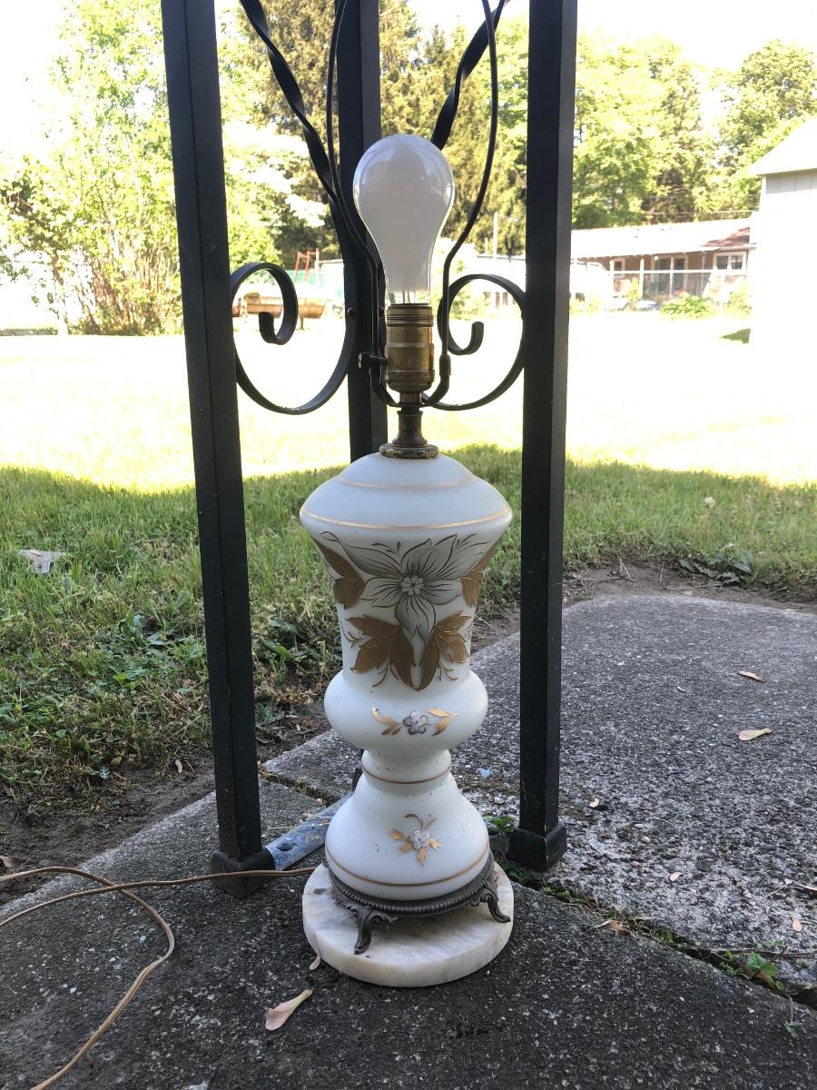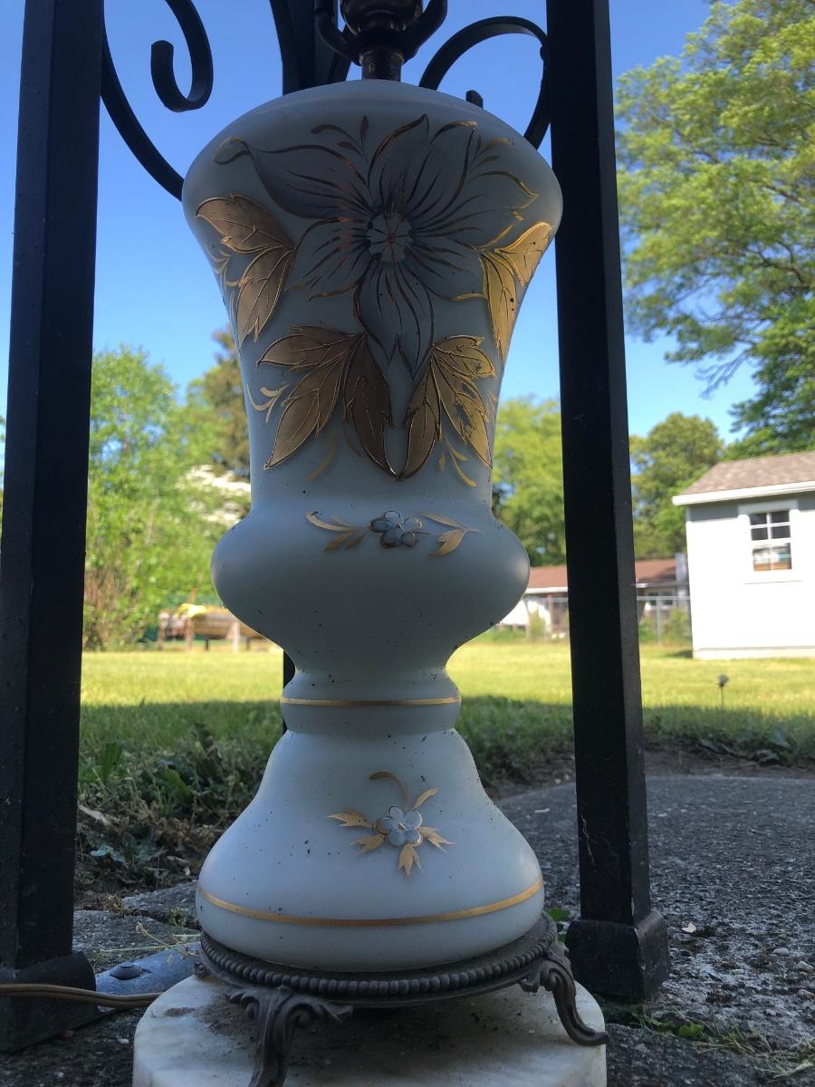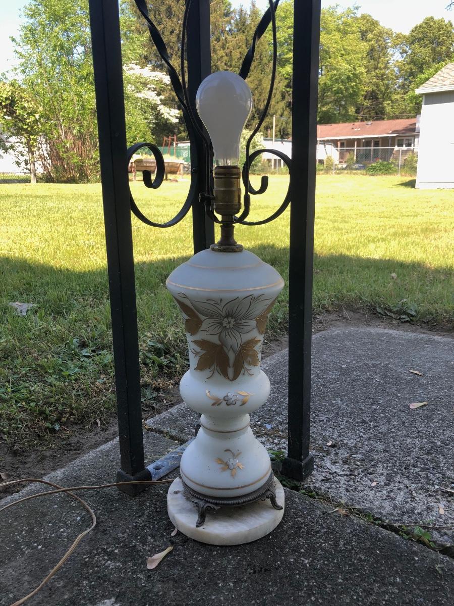 LOT 276: Vintage Levitton Milk Glass Painted Lamp