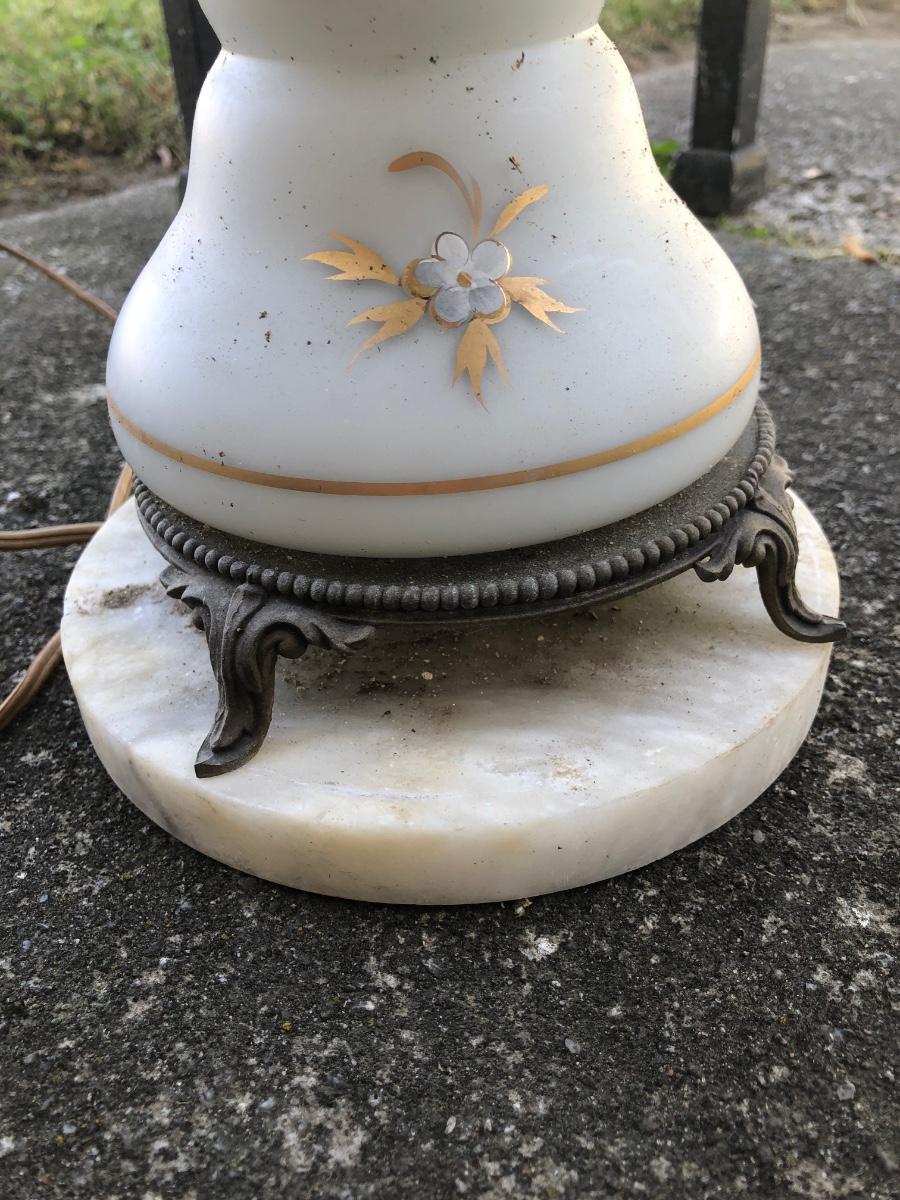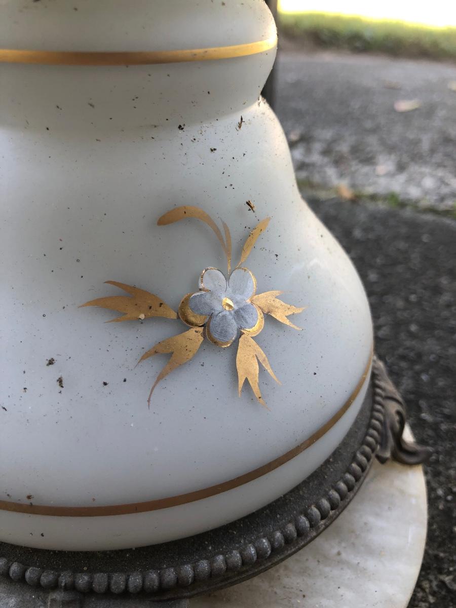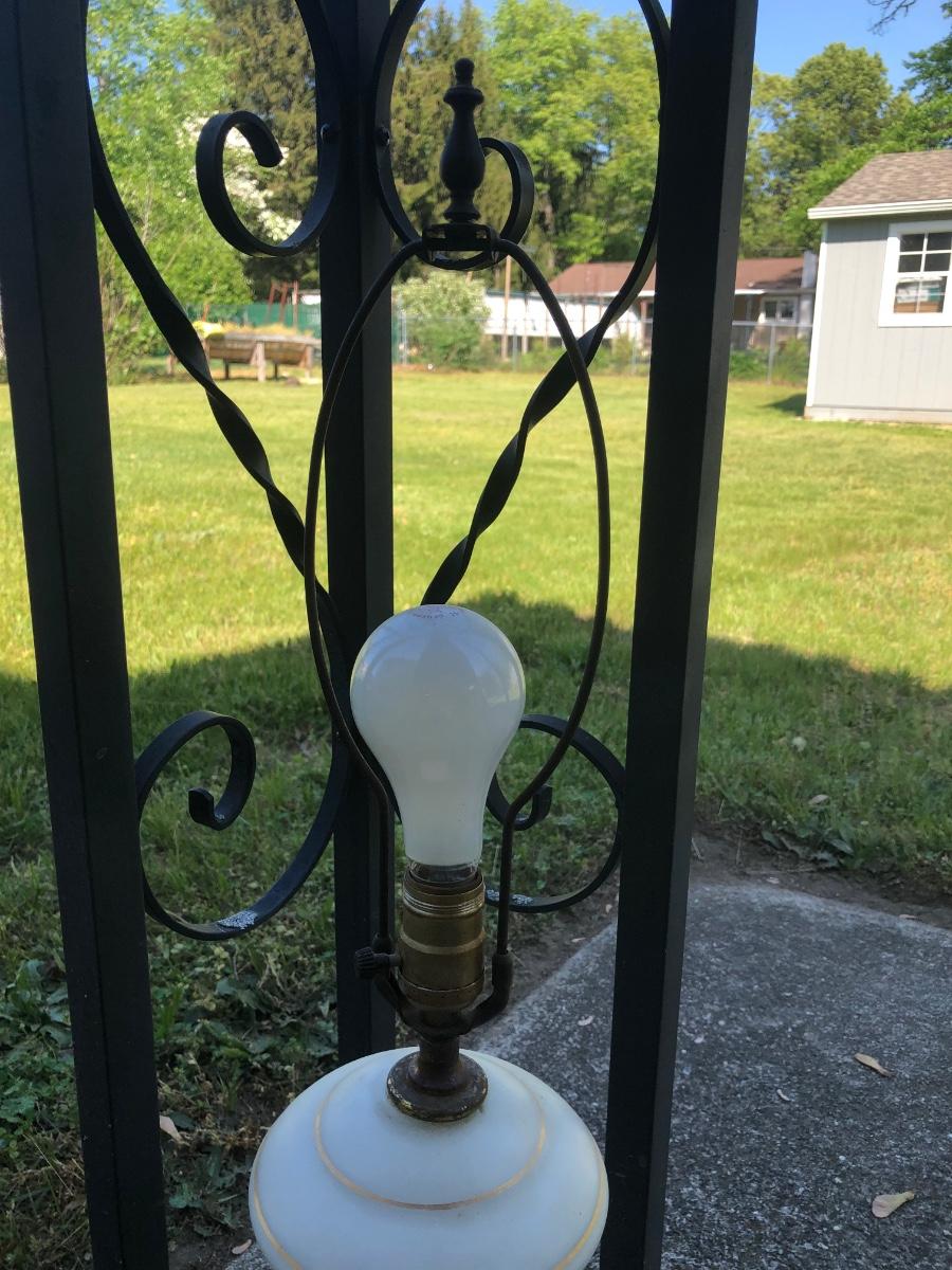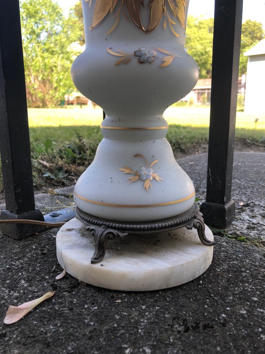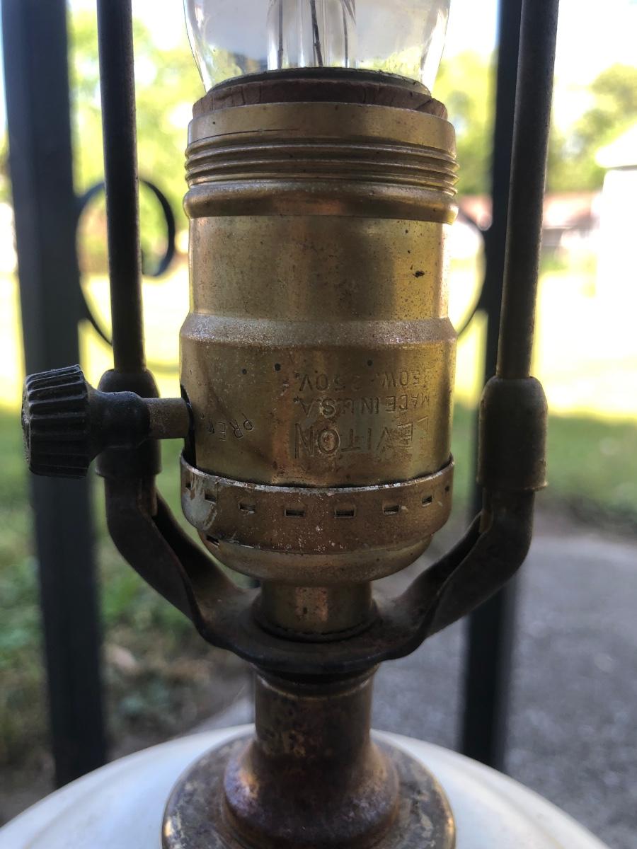 LOT 276: Vintage Levitton Milk Glass Painted Lamp