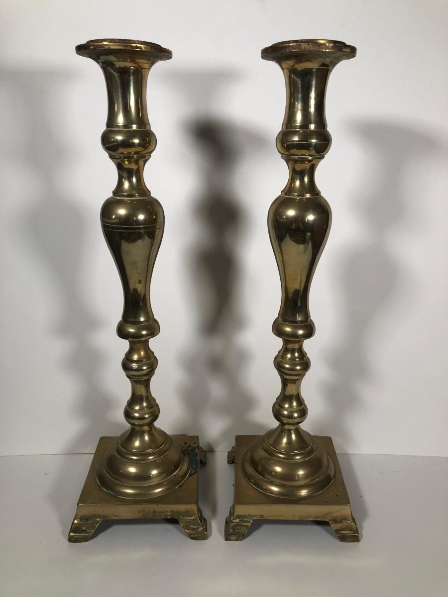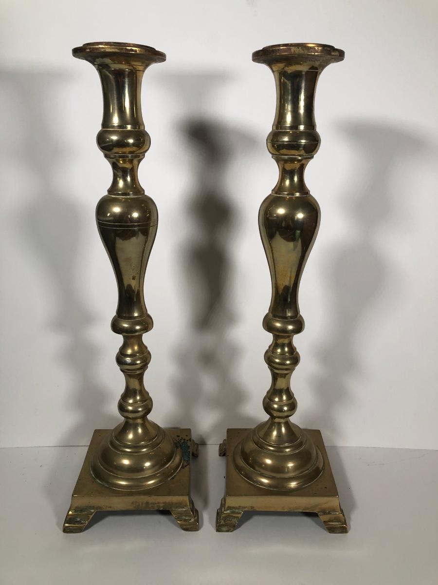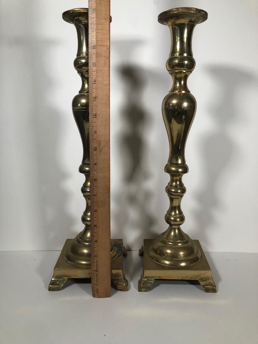 LOT 279: Pair of Vintage Brass Candlesticks (18")