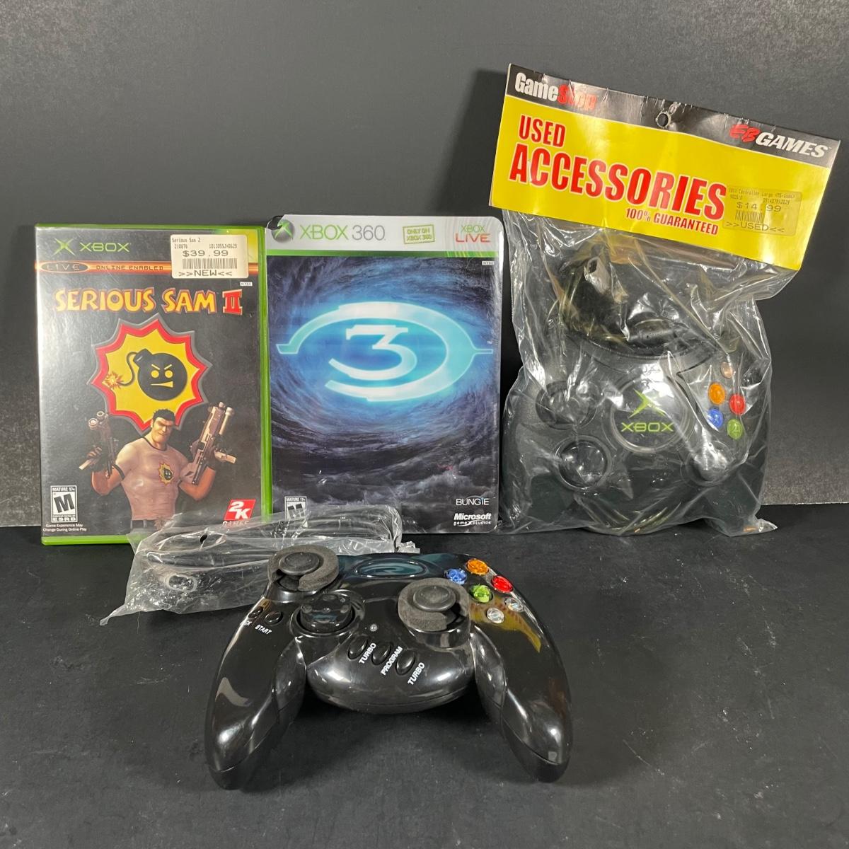 LOT 282: Original Xbox Game Controllers w/ Serious Sam 2 & Halo 3