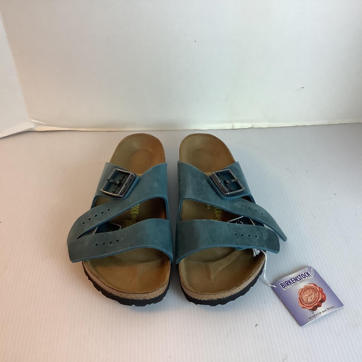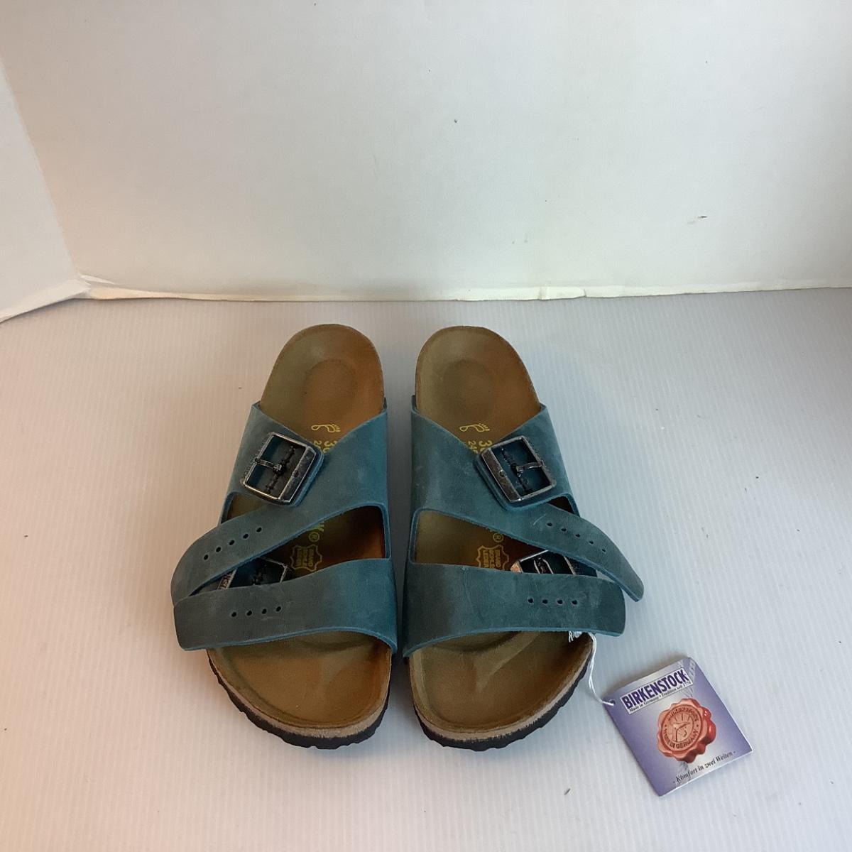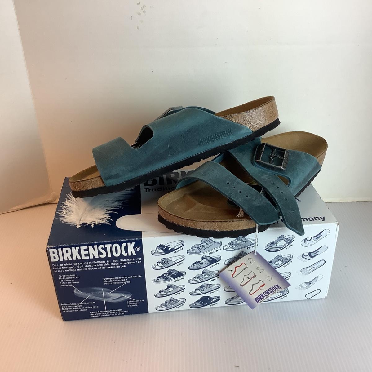 Lot 1036 NEW IN BOX Birkenstocks Arizona Waxy Leather Turquoise ( size 38 )