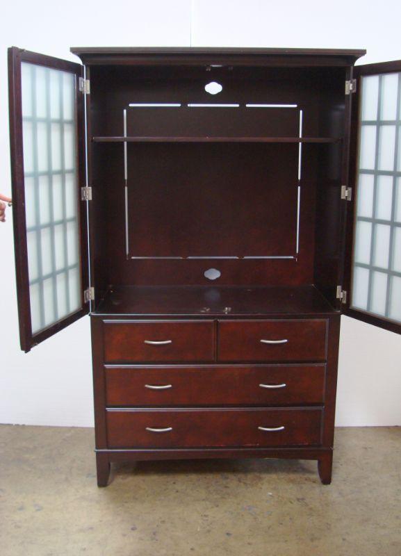 Very nice unit with area for TV and clothes. Measures 72 1/4'' tall x 21'' deep x 44'' wide. Light cosmetic wear on body