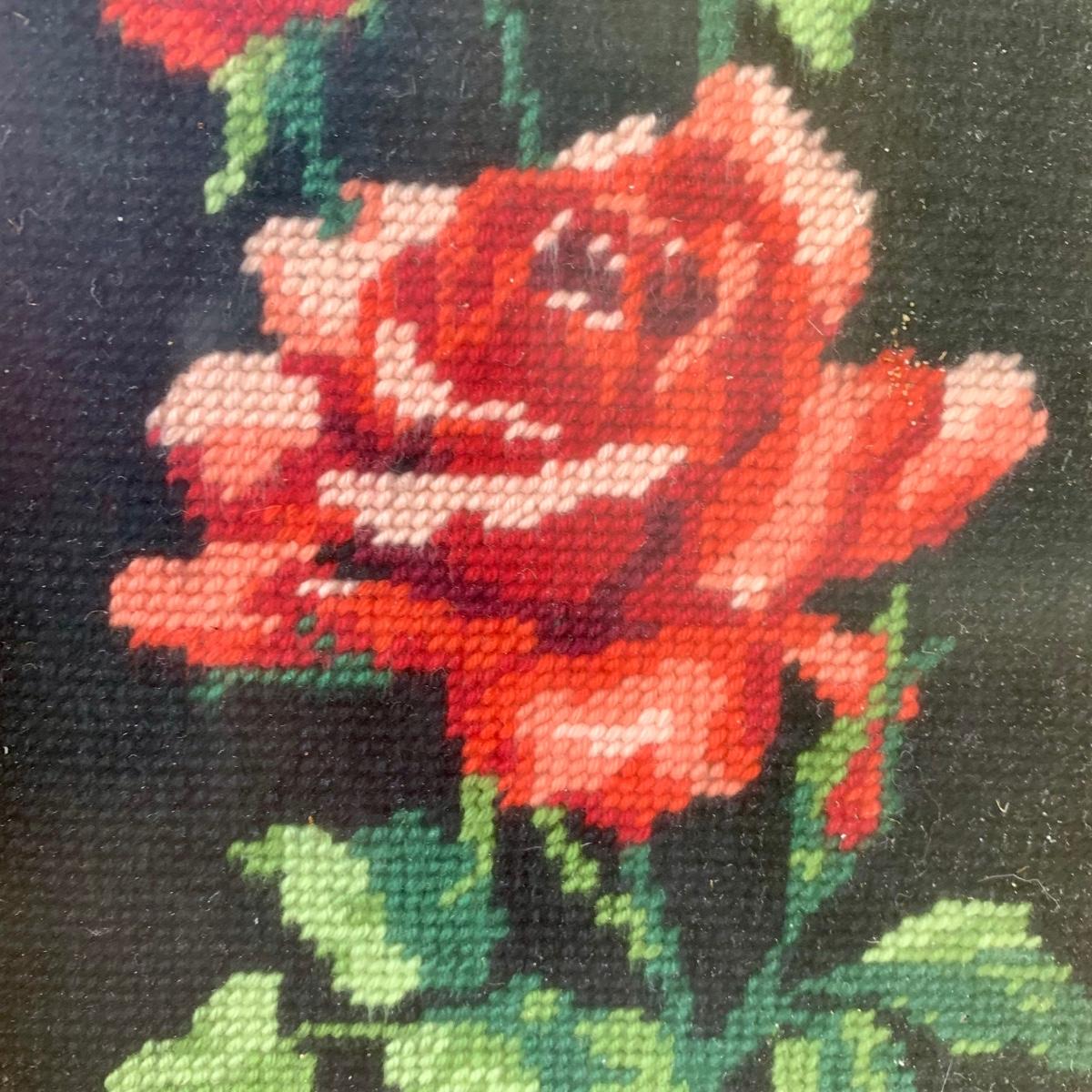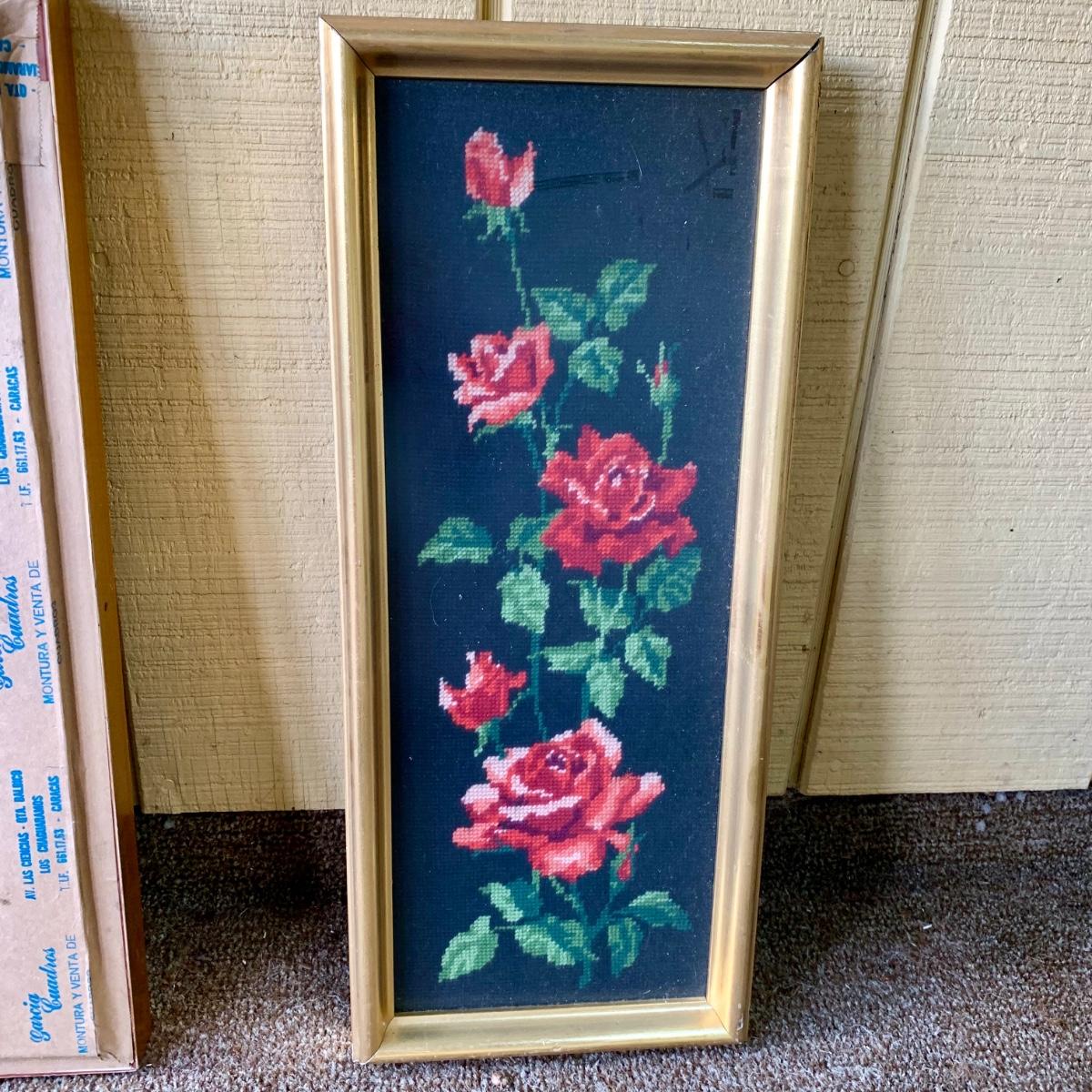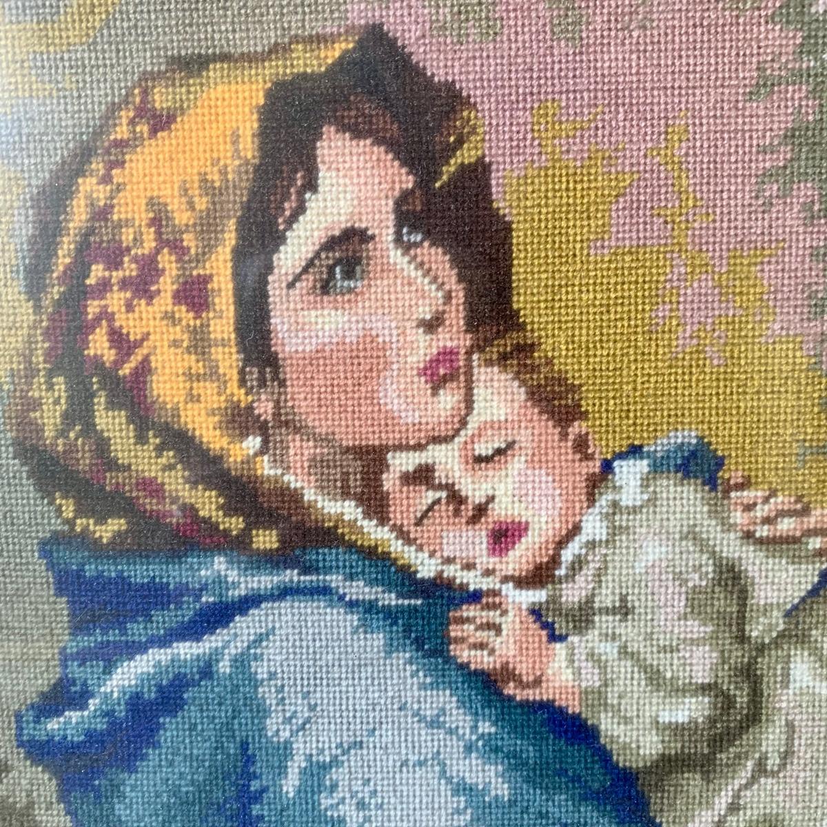 LOT 14 P: Vintage Framed Needlepoint Collection: Mother & Child (Madonna Of The Streets) & Floral Bouquets W/ Roses