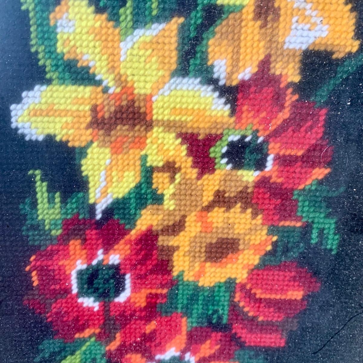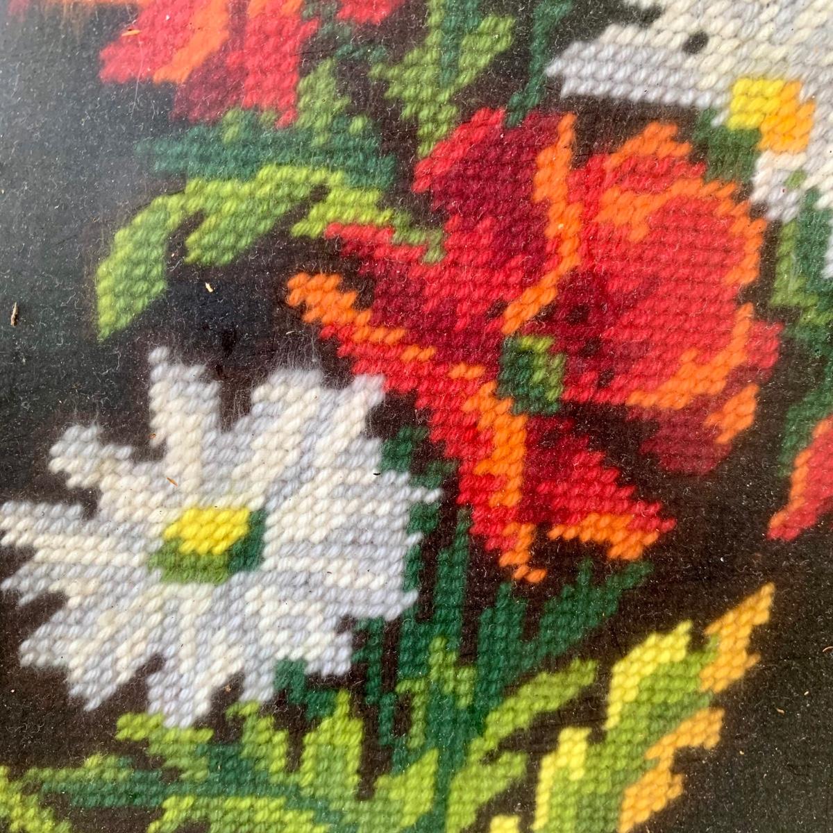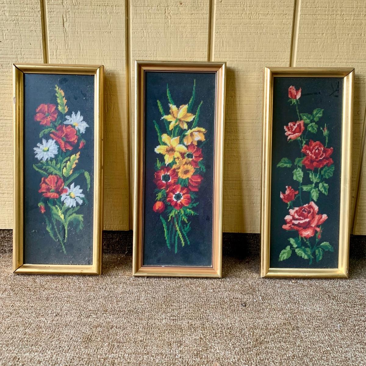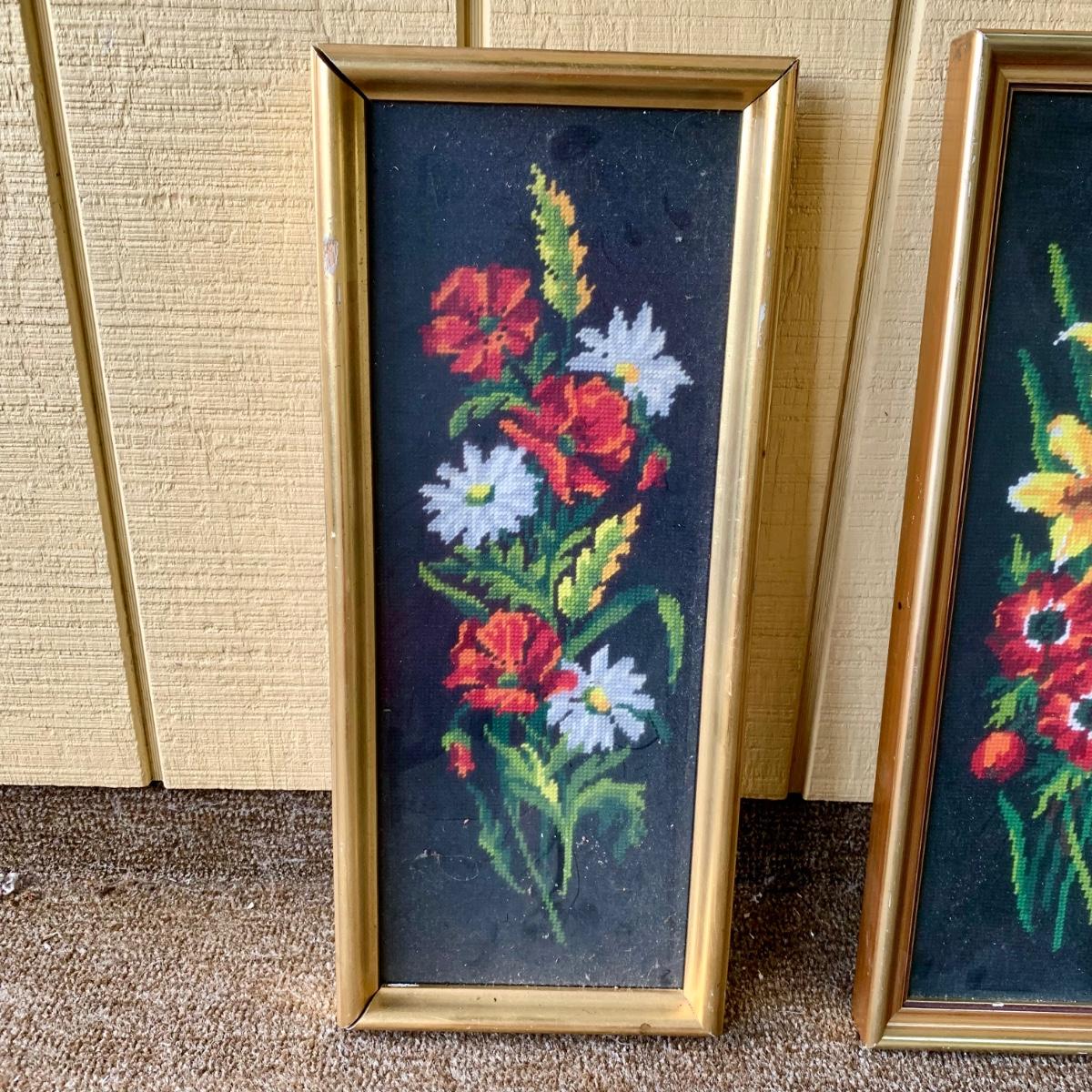 LOT 14 P: Vintage Framed Needlepoint Collection: Mother & Child (Madonna Of The Streets) & Floral Bouquets W/ Roses