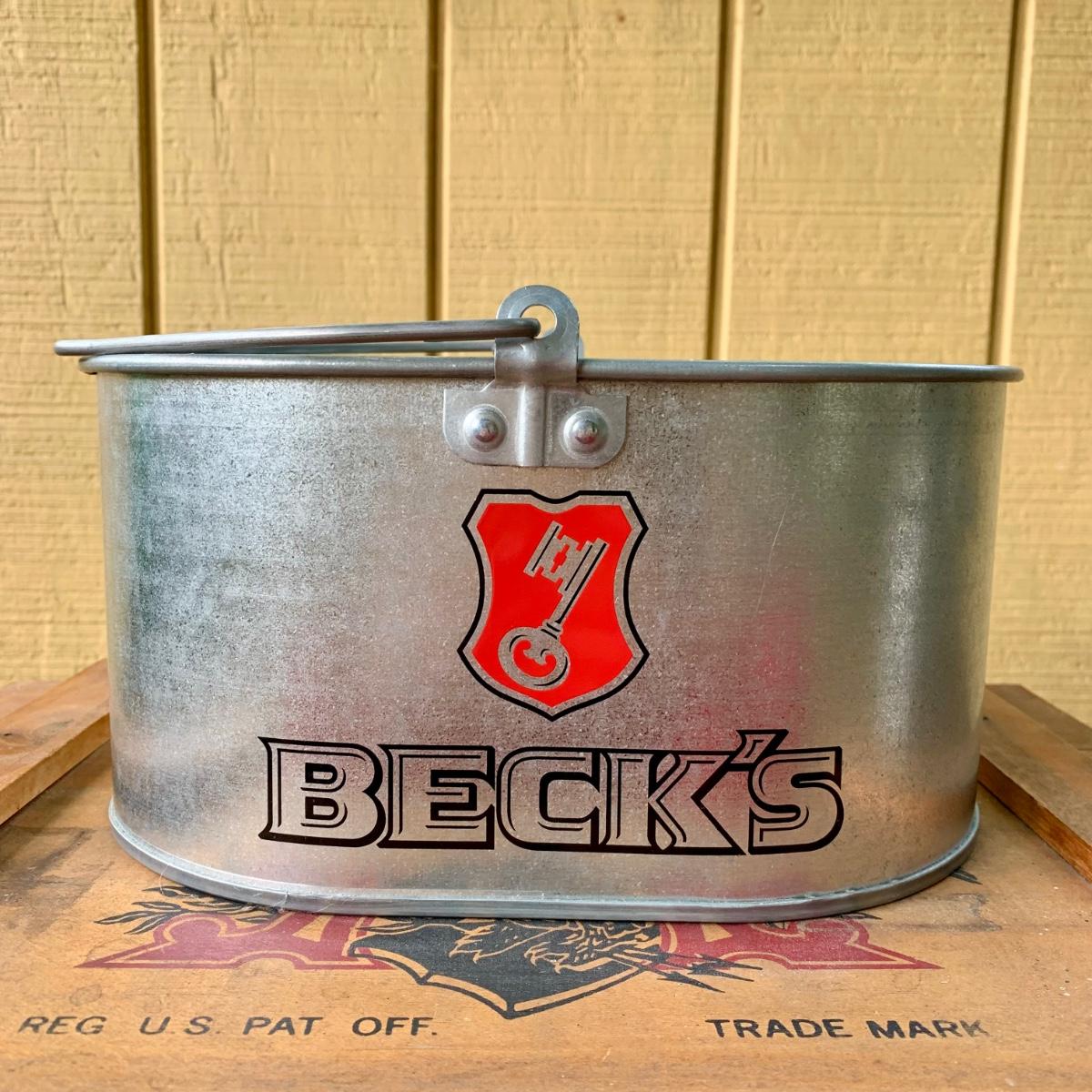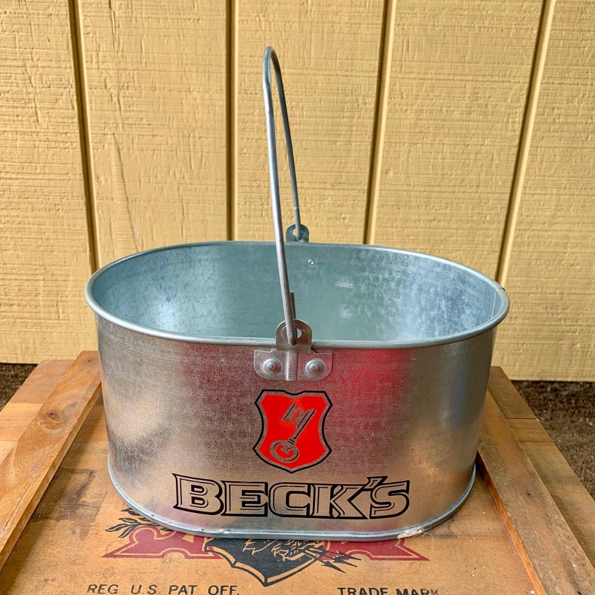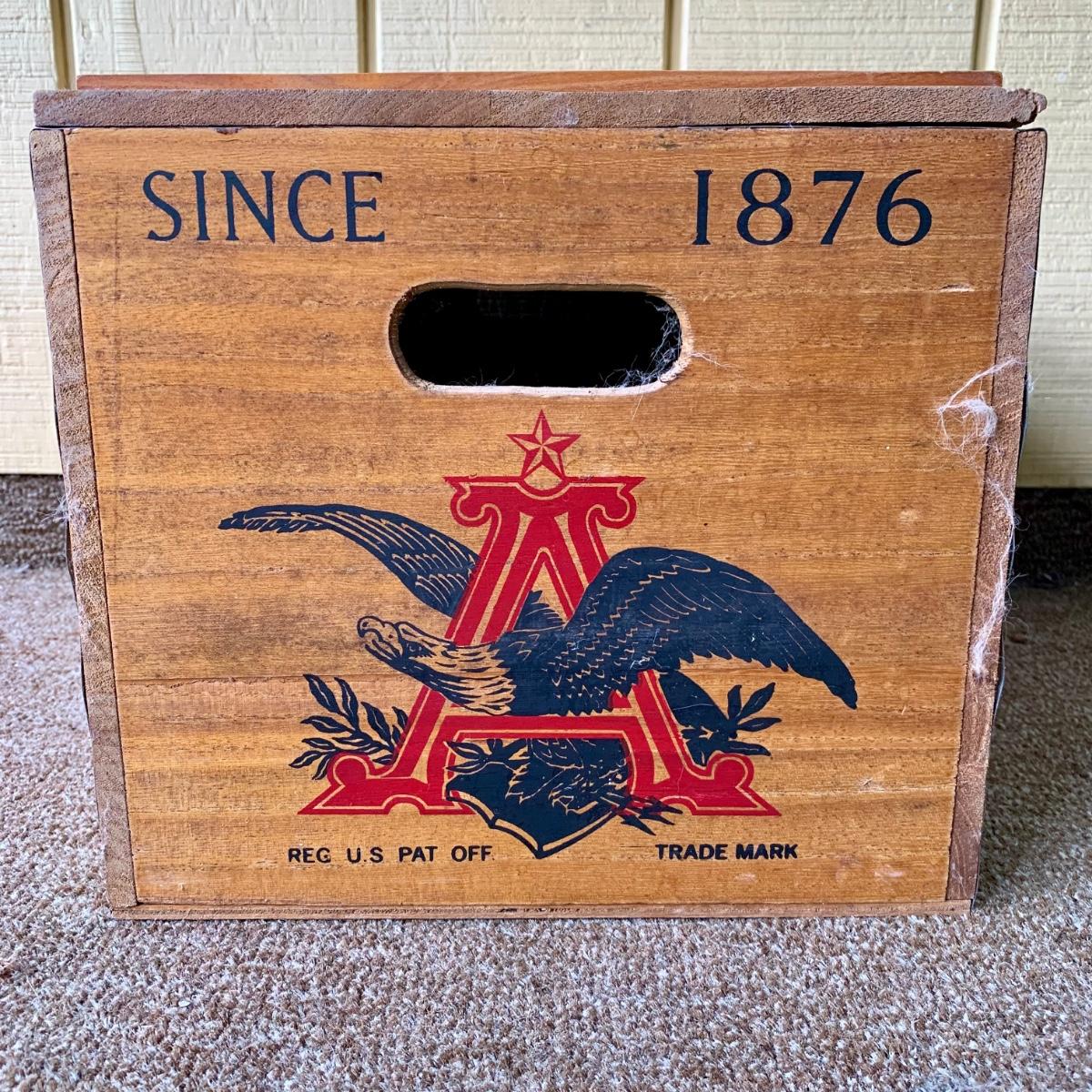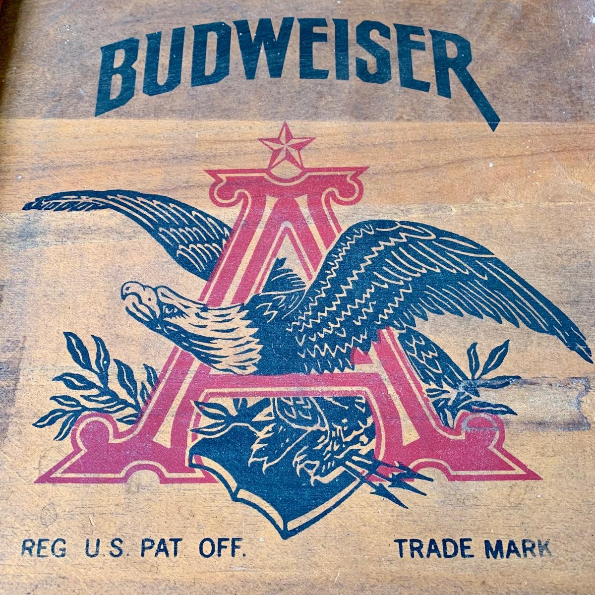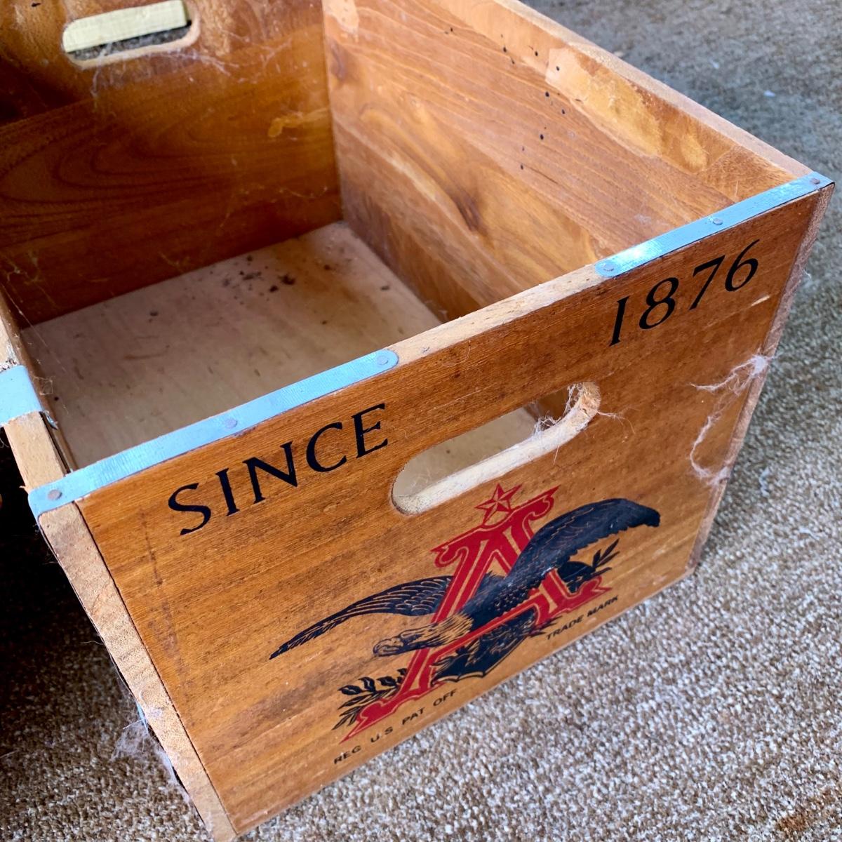 LOT 15 P: Vintage Anheuser Busch Budweiser Wooden Crate/Box W/Hinges & Beck's Beer Ice Bucket
