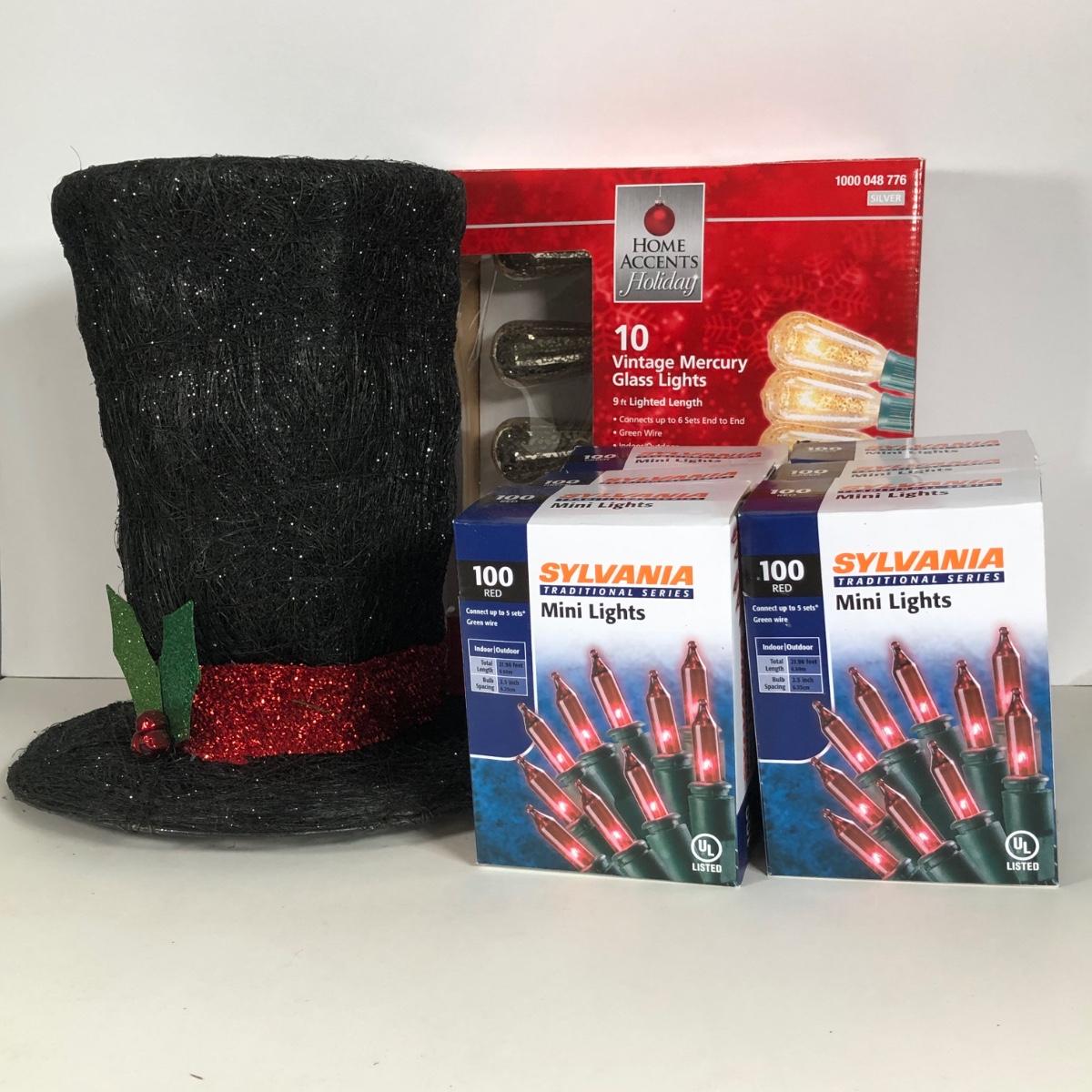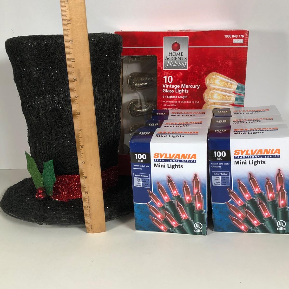 LOT 42B: Christmas Lights - Top Hat, Vintage Style Bulb String NIP & Mini Lights